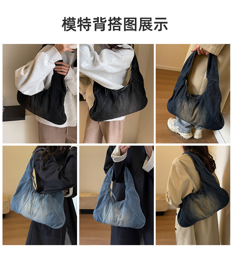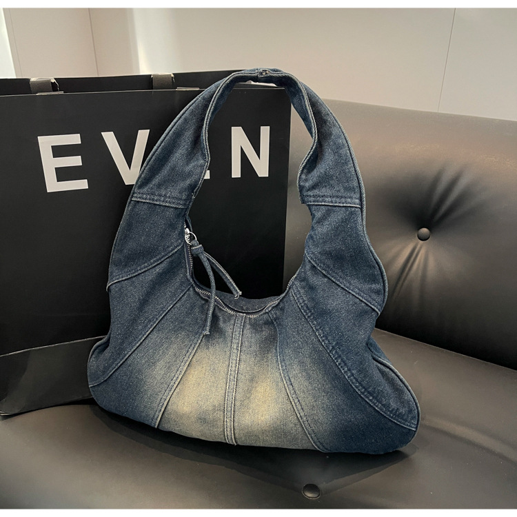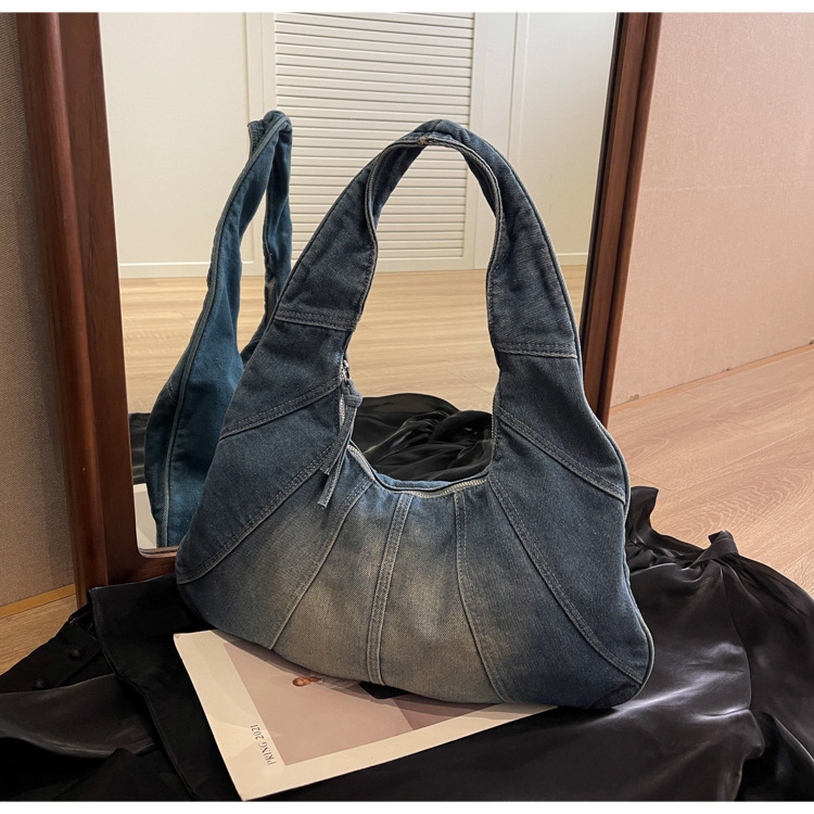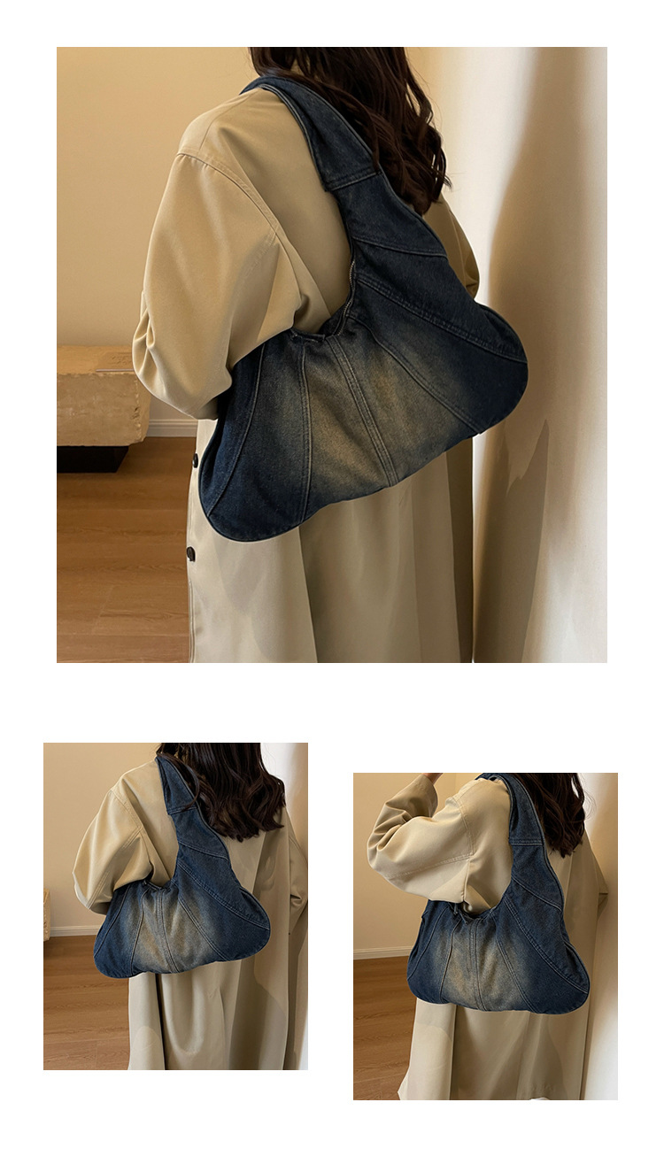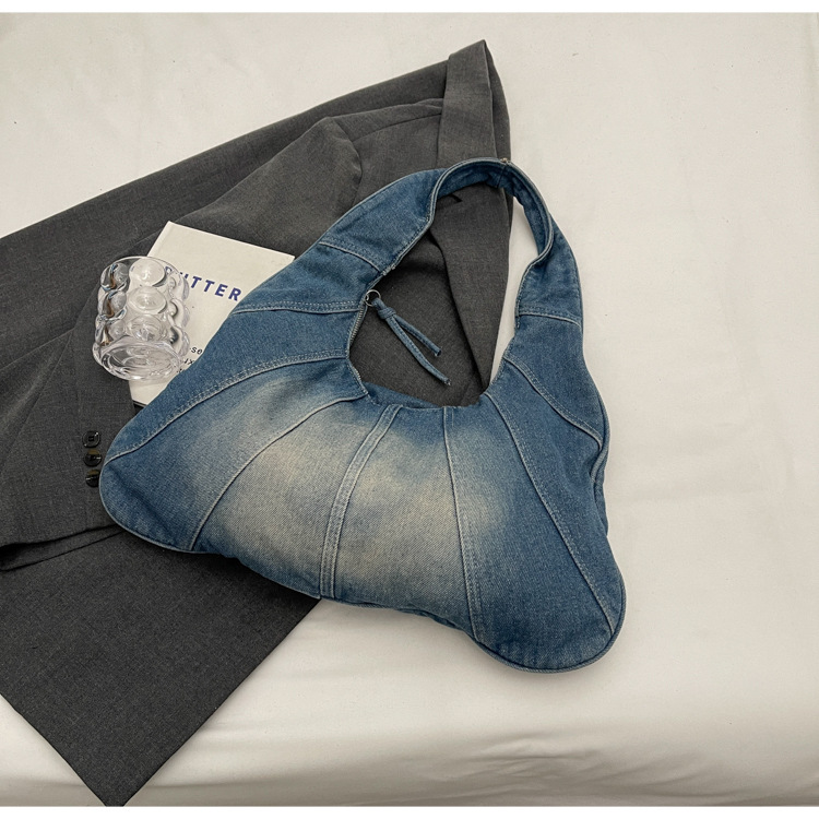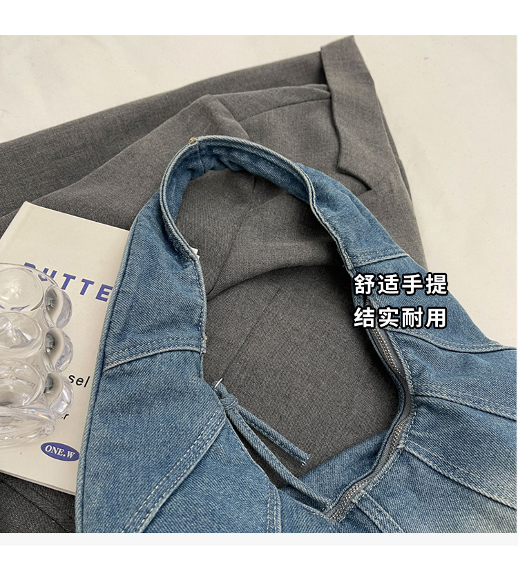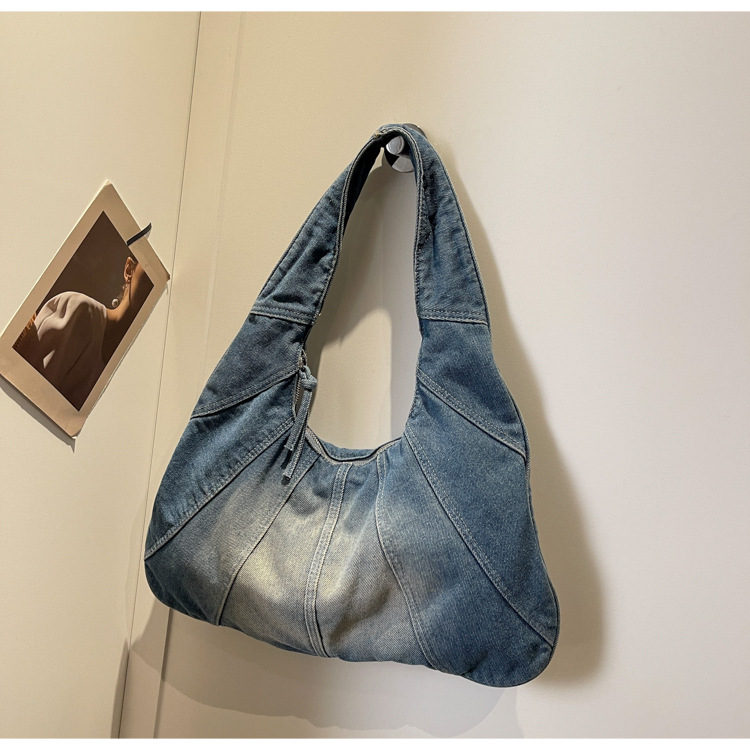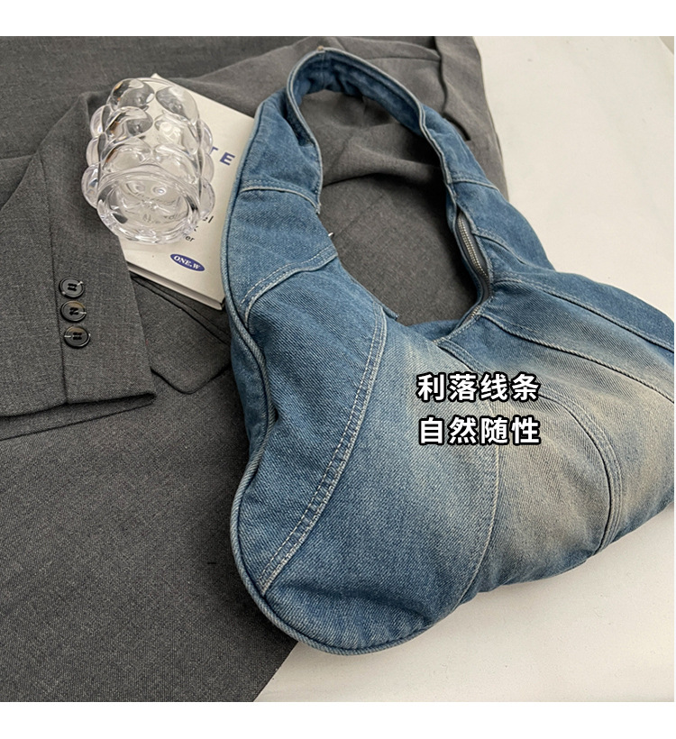 JM-1440 复古拼接牛仔布包包女洋气小方包时尚小众单肩腋下包手提包包
