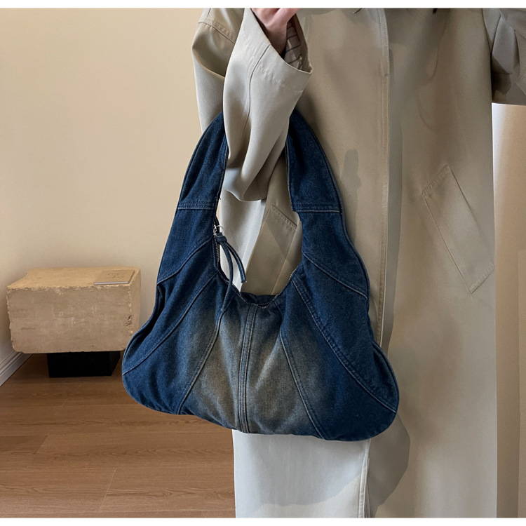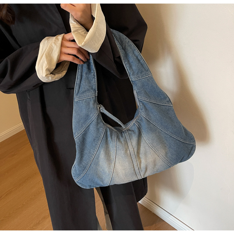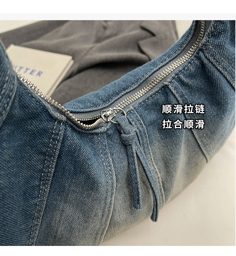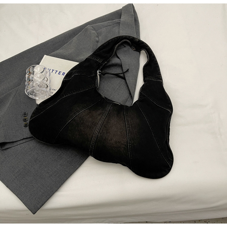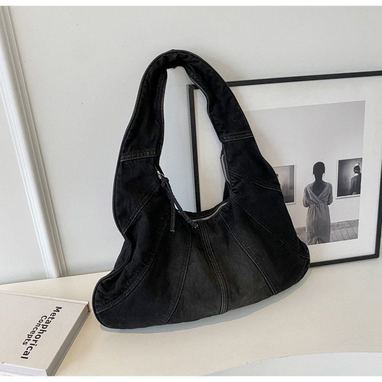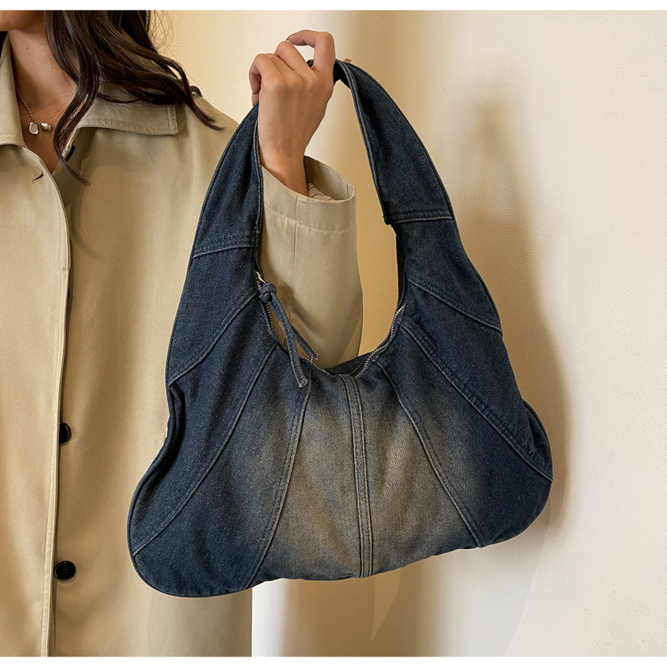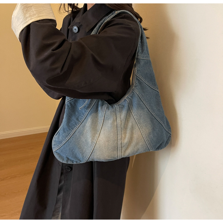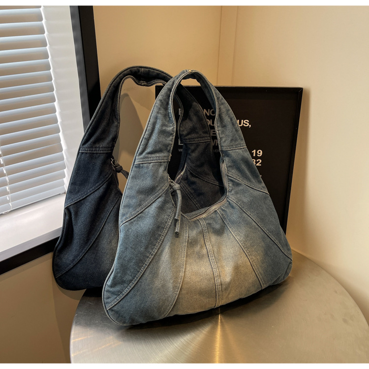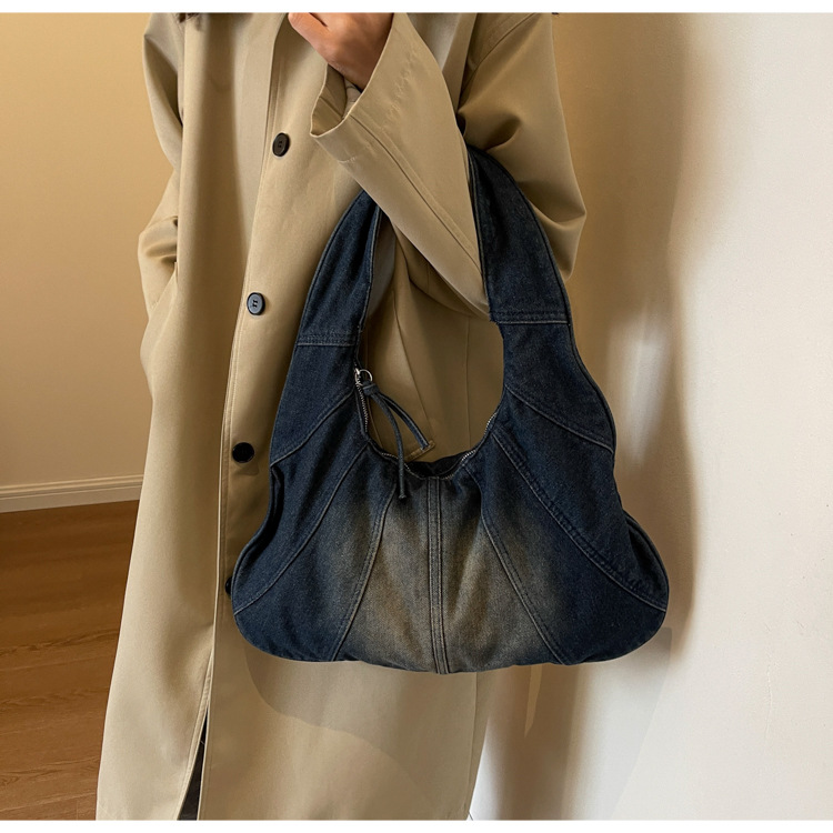 JM-1440 复古拼接牛仔布包包女洋气小方包时尚小众单肩腋下包手提包包