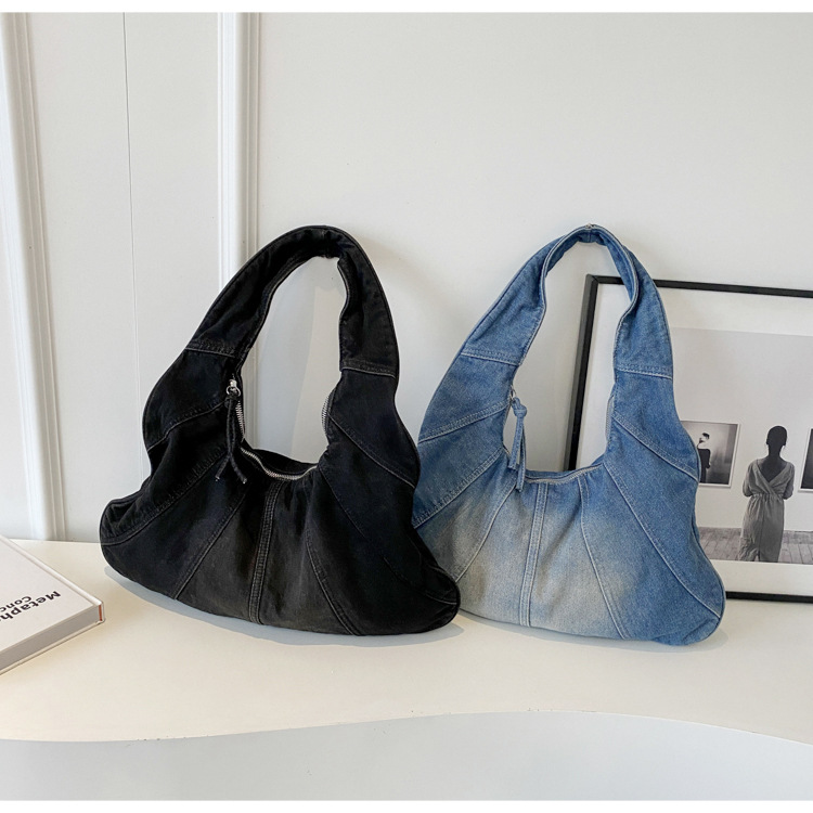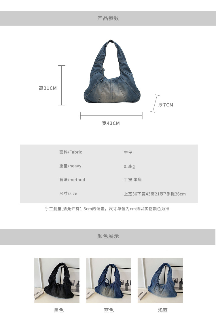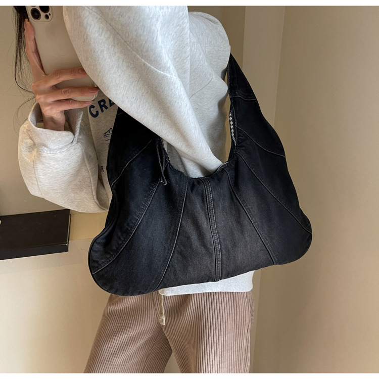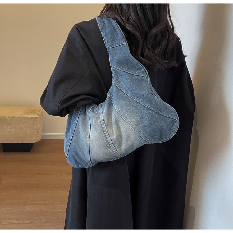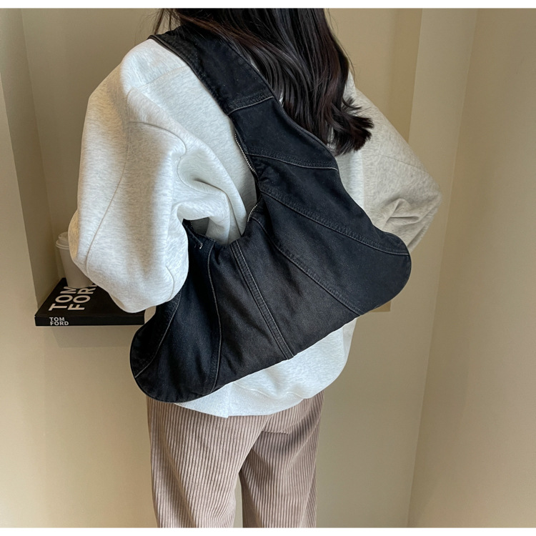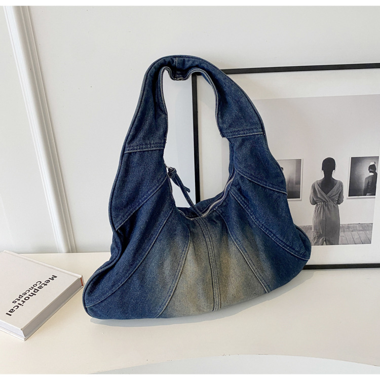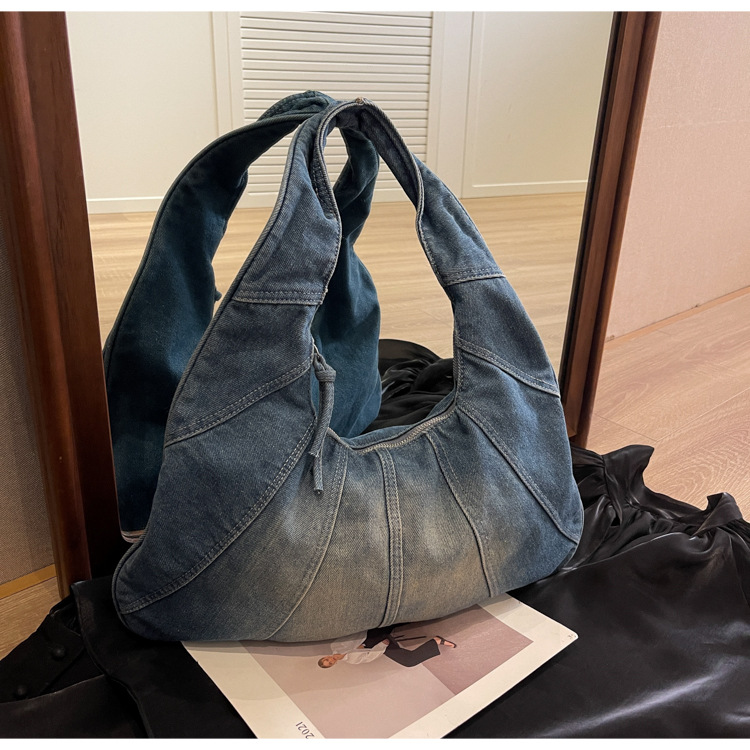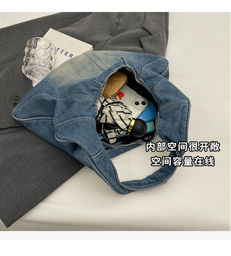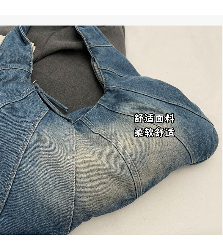 JM-1440 复古拼接牛仔布包包女洋气小方包时尚小众单肩腋下包手提包包