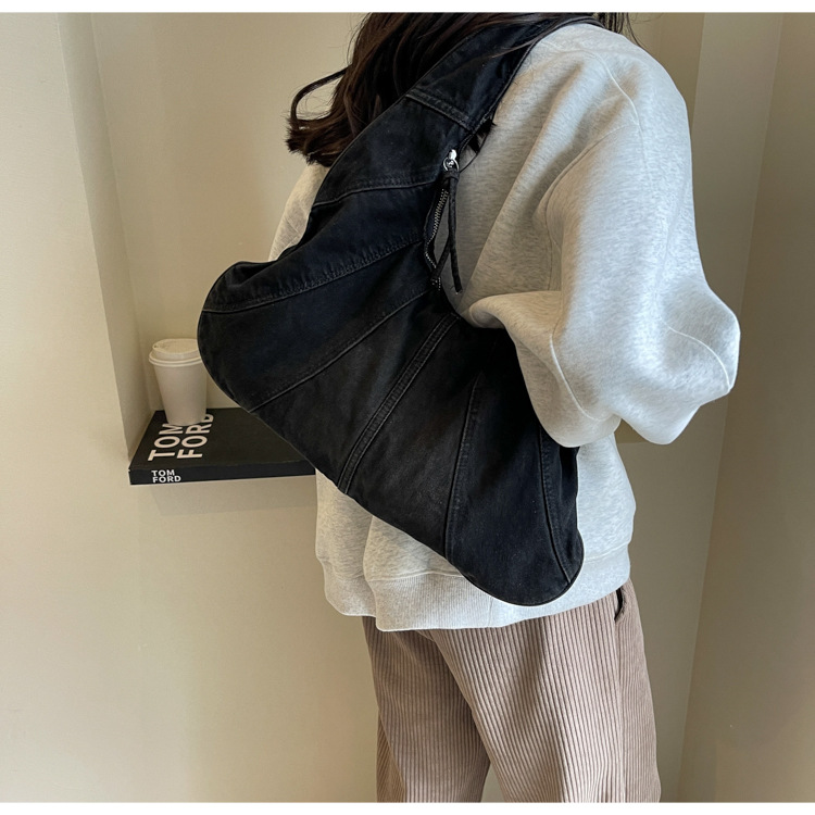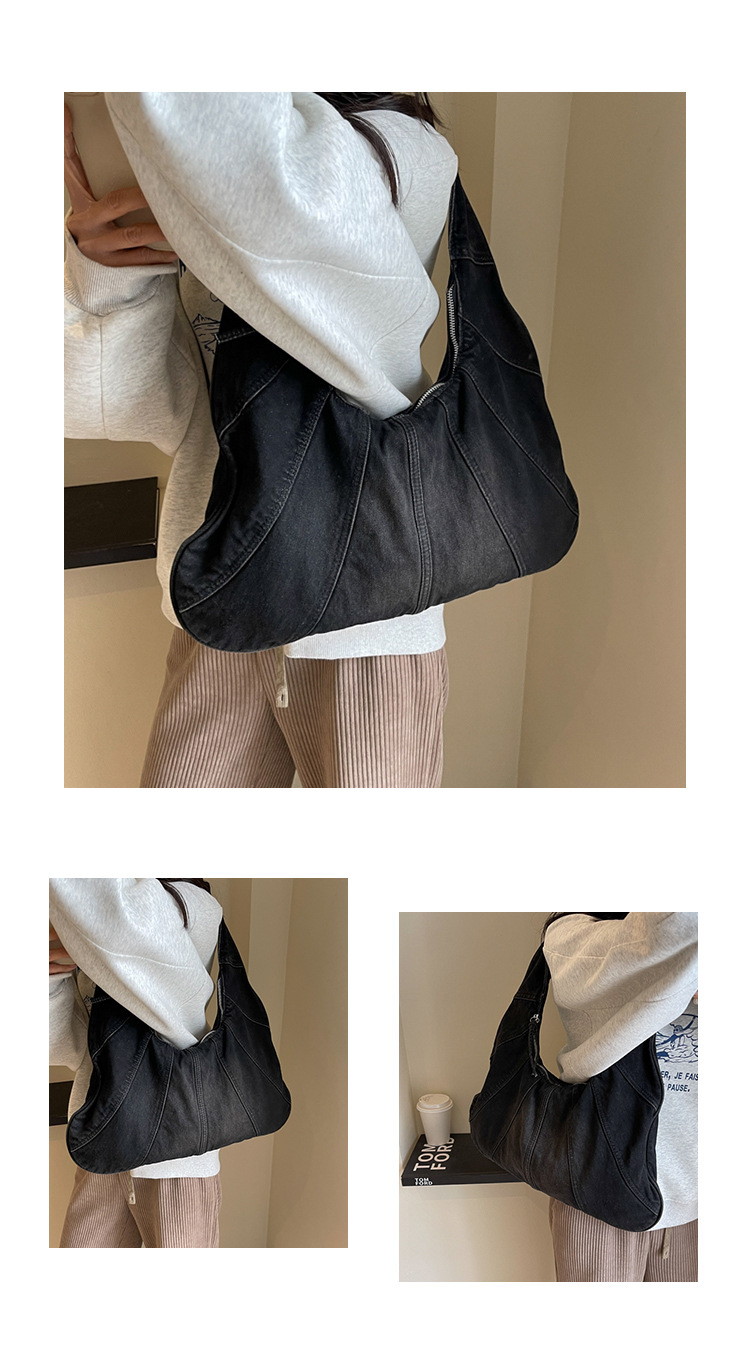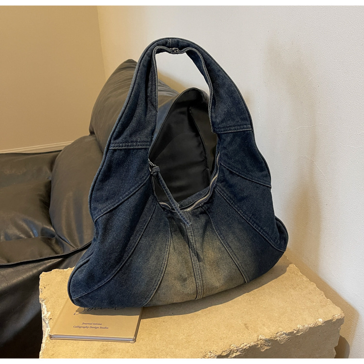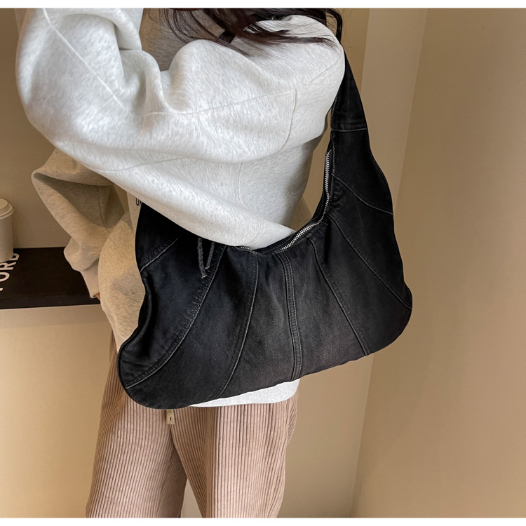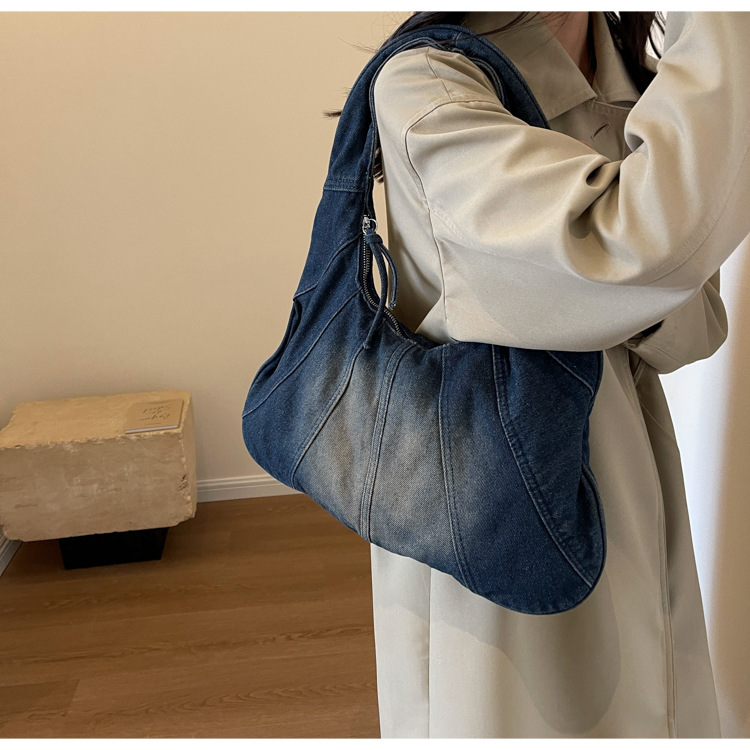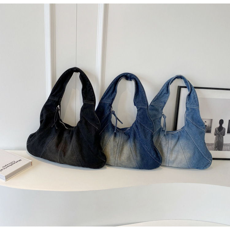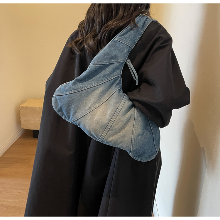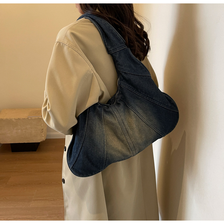 JM-1440 复古拼接牛仔布包包女洋气小方包时尚小众单肩腋下包手提包包