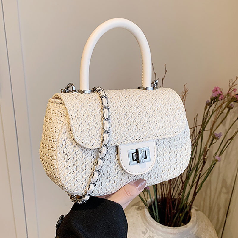 JM-1439 百搭ins斜挎包包女士新款潮时尚韩版链条草编包感马鞍包