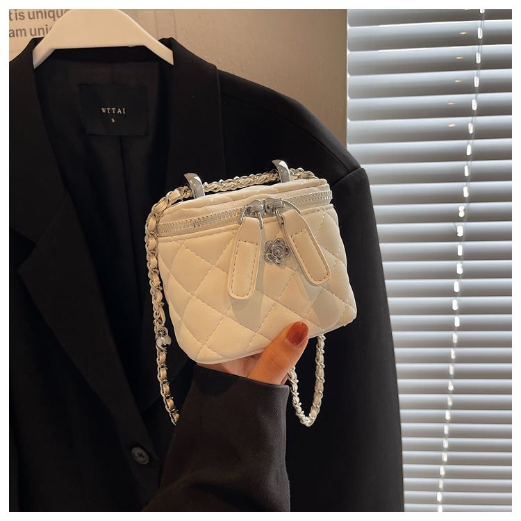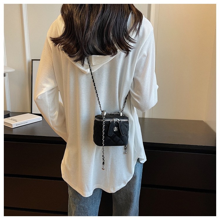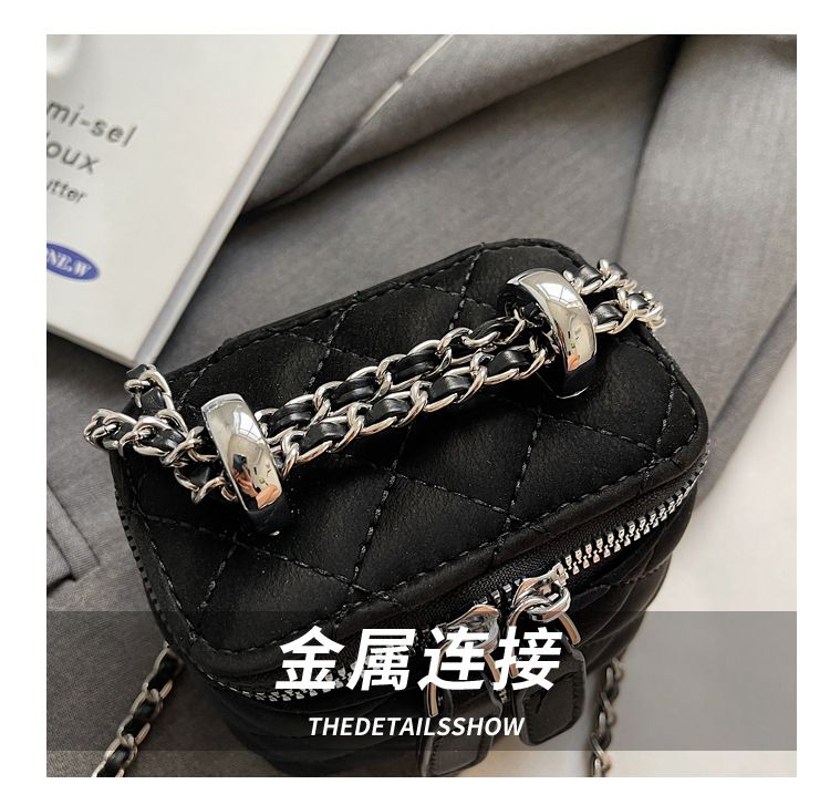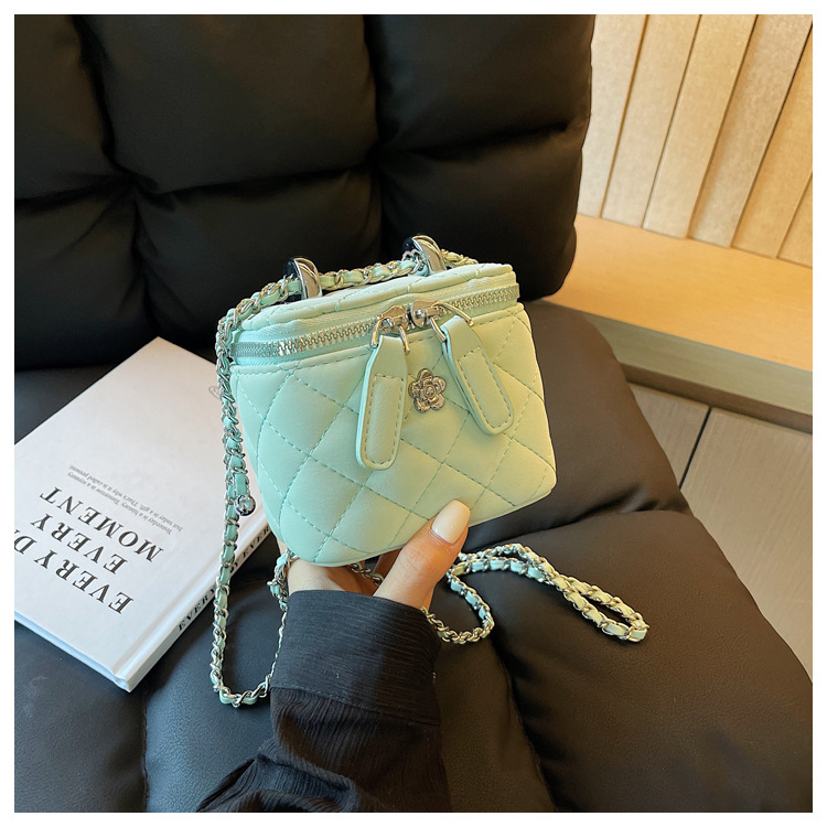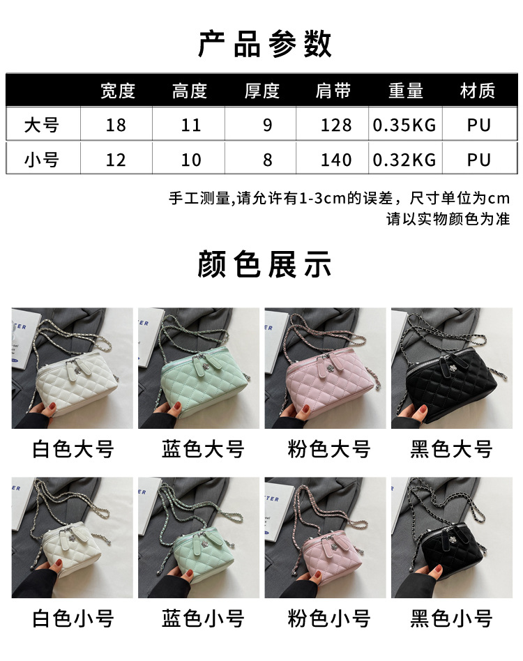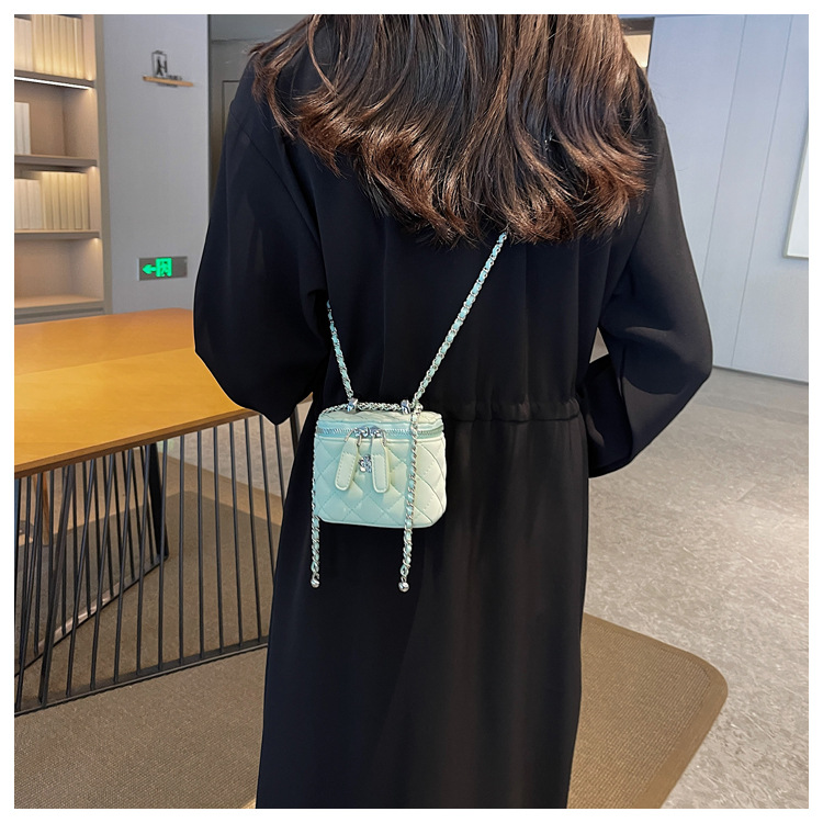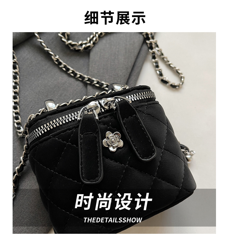 JM-1436 质感迷你包包女包百搭小众设计单肩斜挎包小众菱格链条水桶包