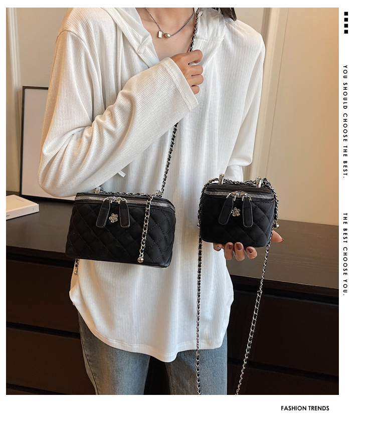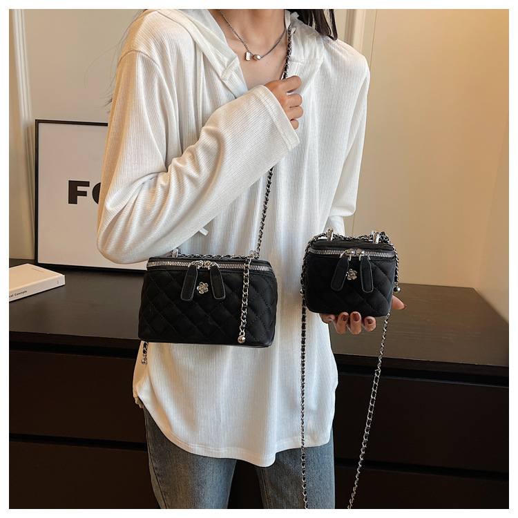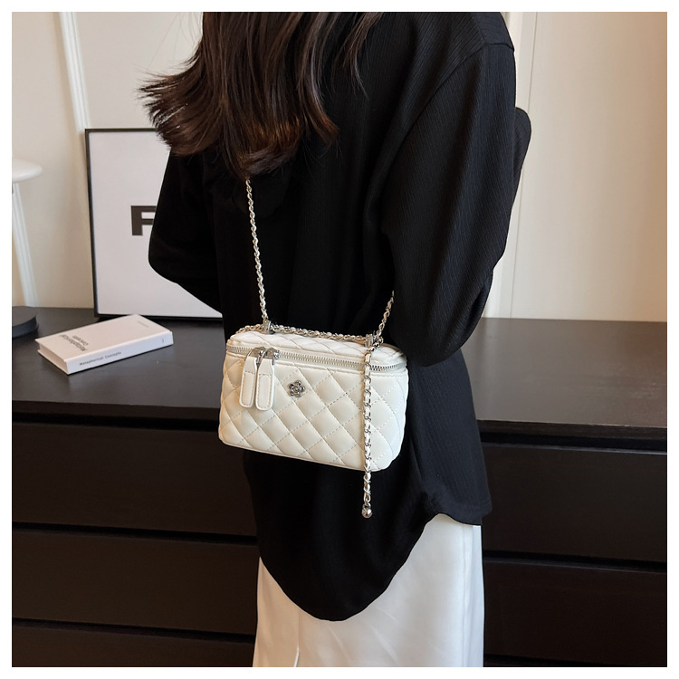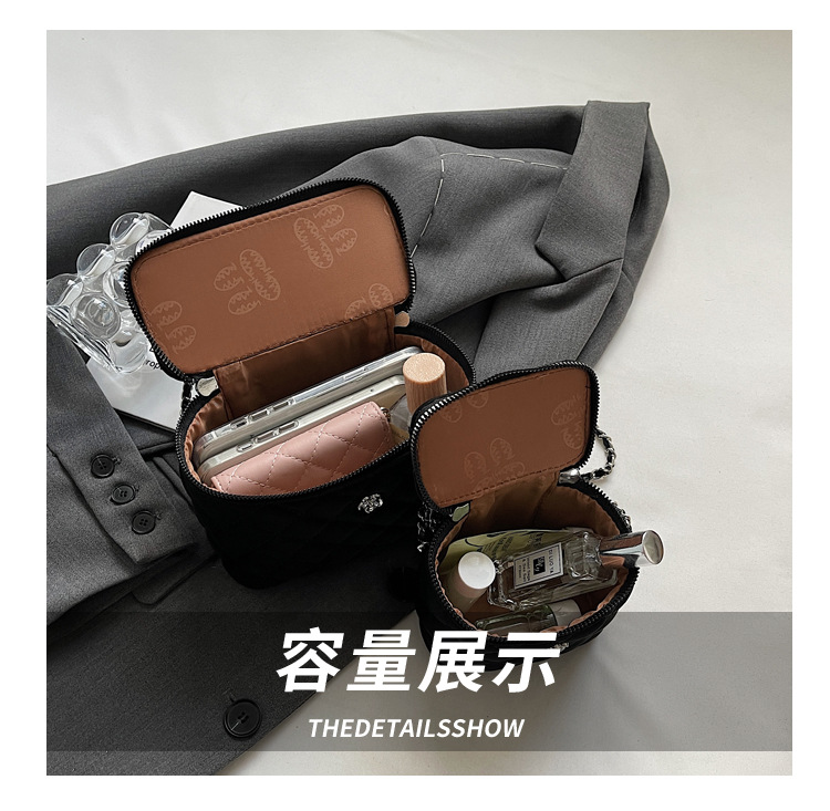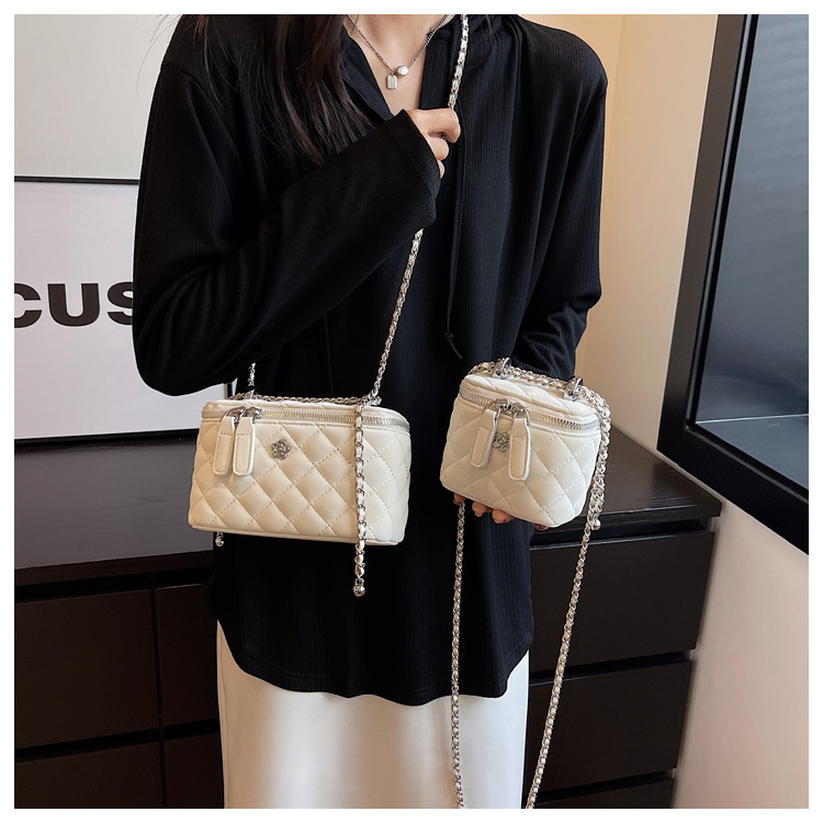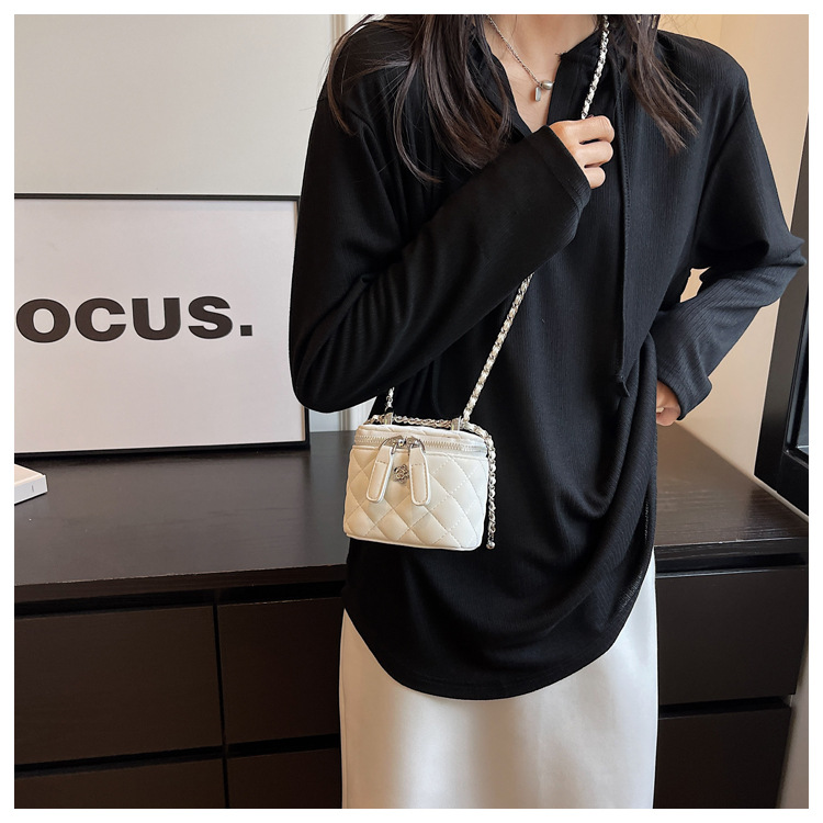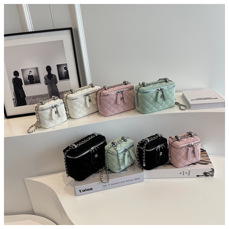 JM-1436 质感迷你包包女包百搭小众设计单肩斜挎包小众菱格链条水桶包