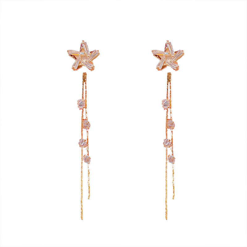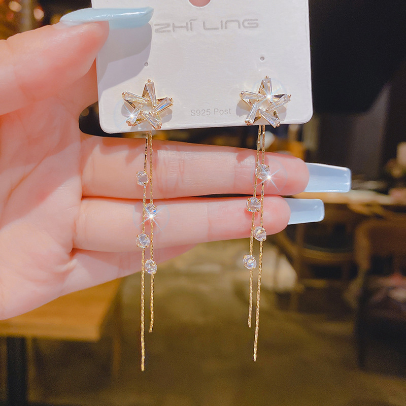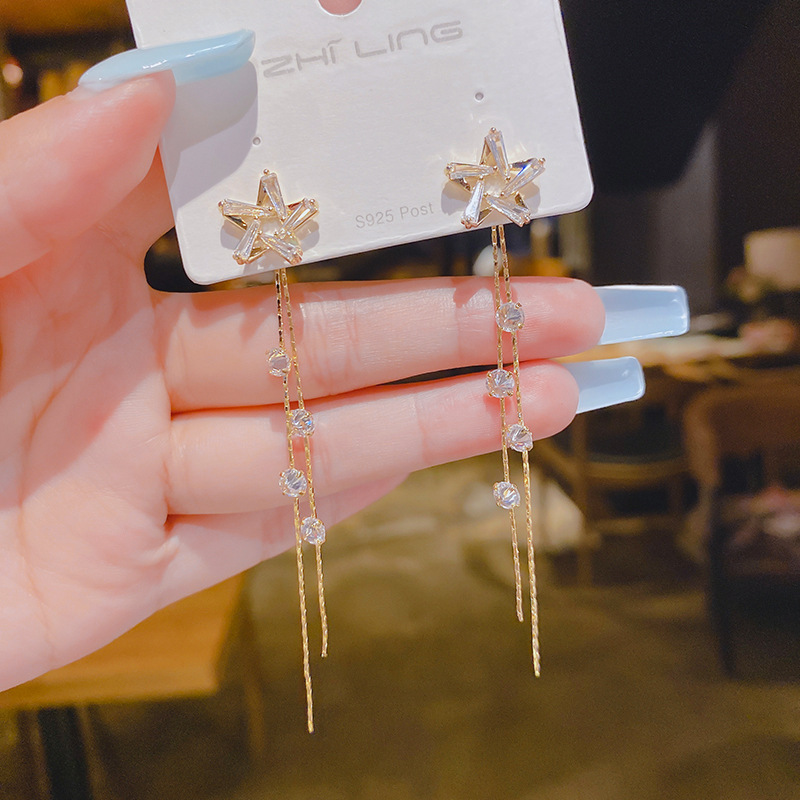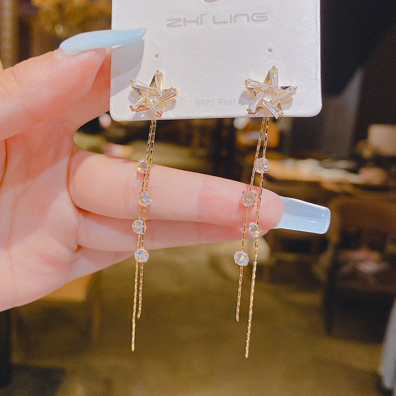 JM-1431 925银针五角星铜微镶锆石耳钉韩国东大门网红ins同款流苏耳环现货