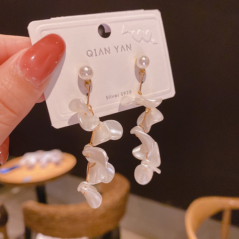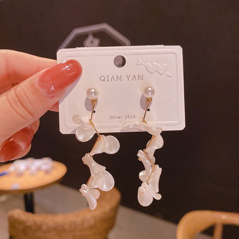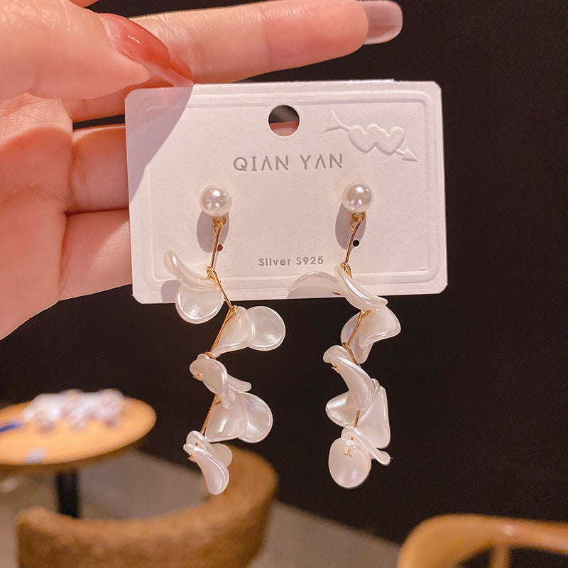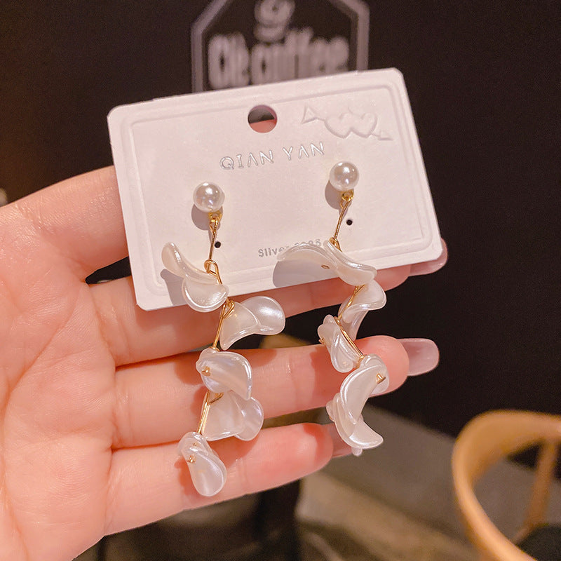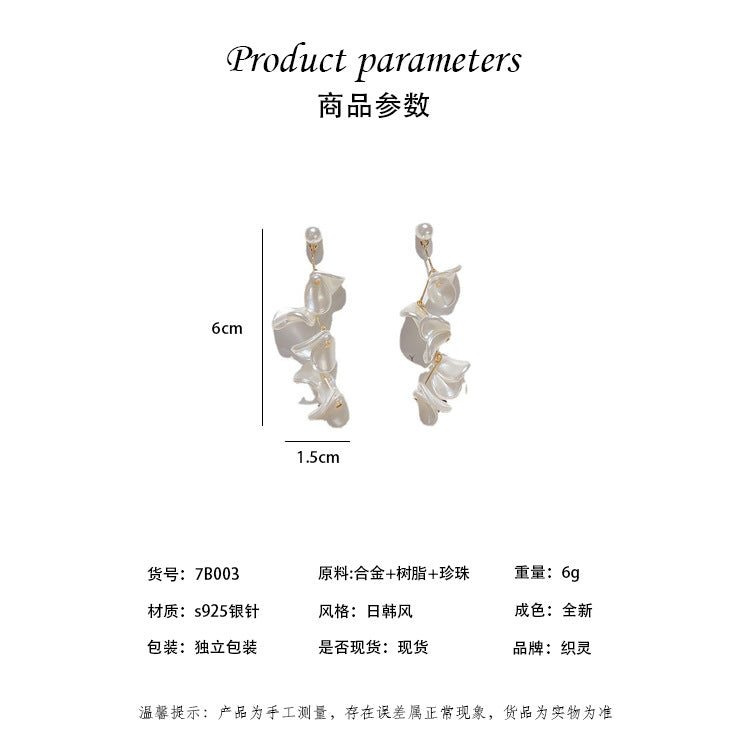 JM-1438 925银针白色花片耳环日韩网红ins夸张耳饰珍珠感耳坠女耳钉