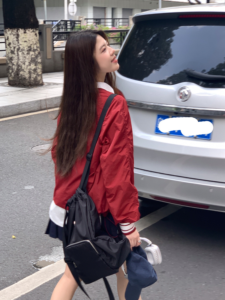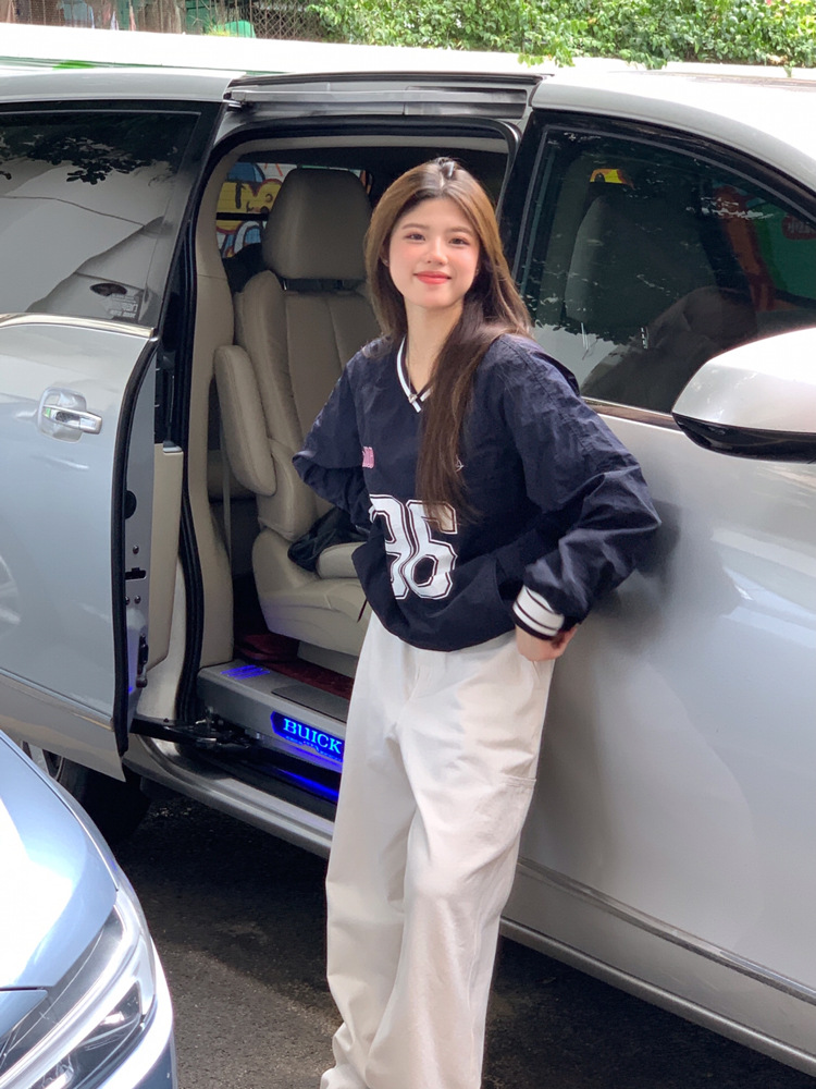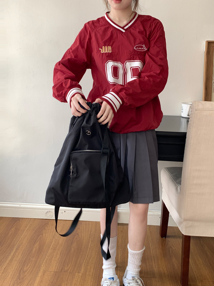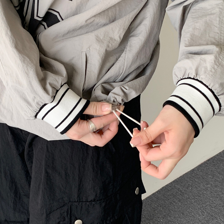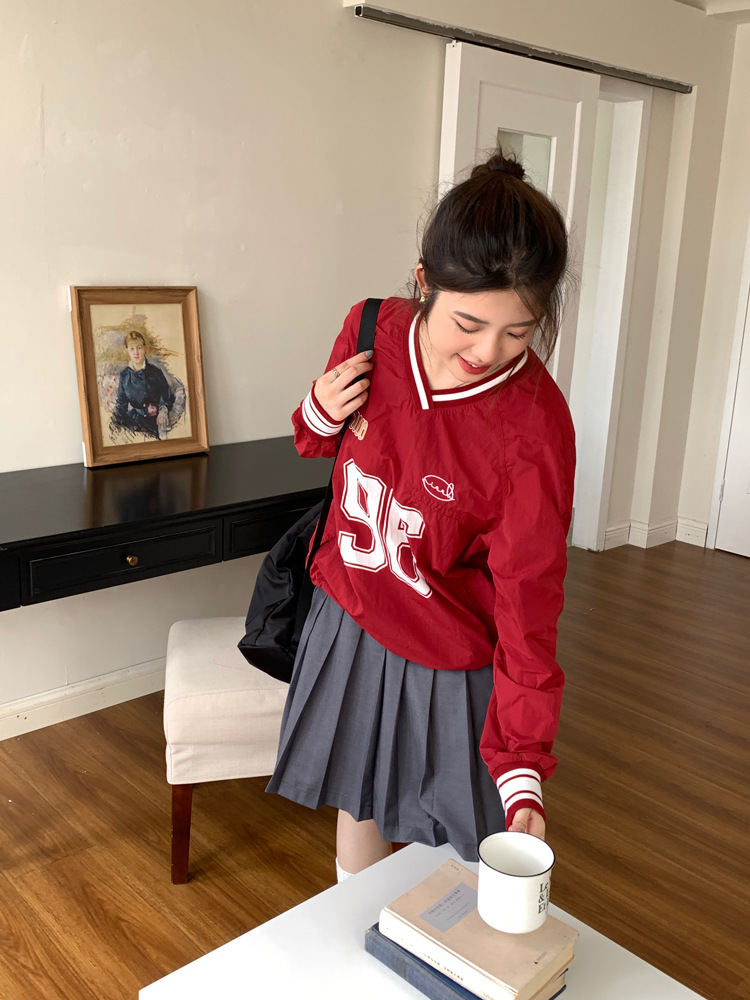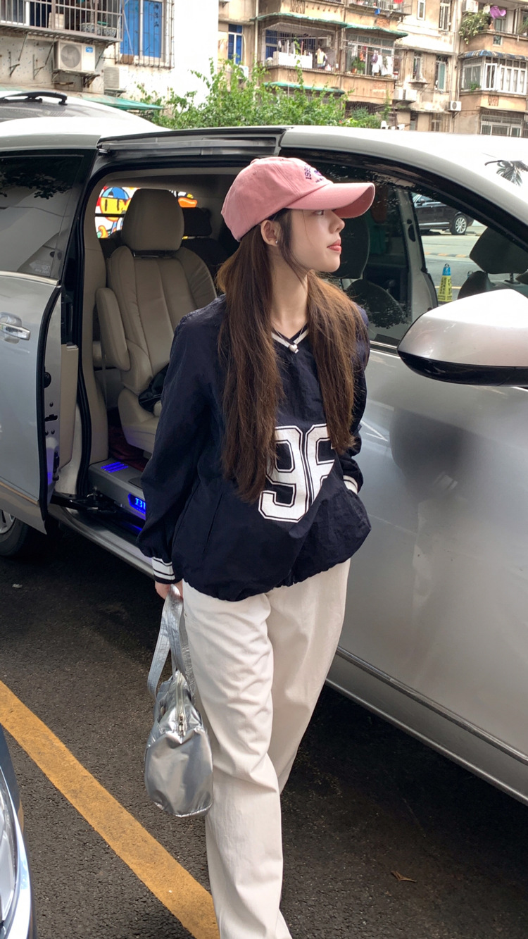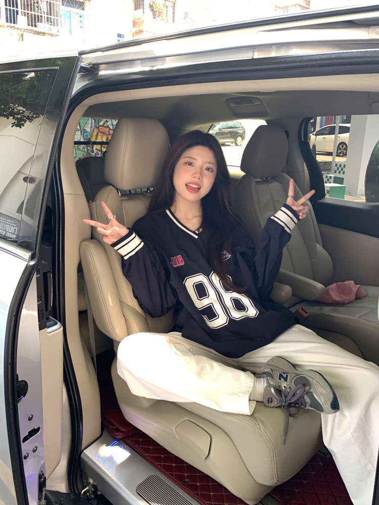 JMA-1031 实拍美式街头风v领撞色字母球衣上衣秋季新款韩版长袖薄款卫衣女