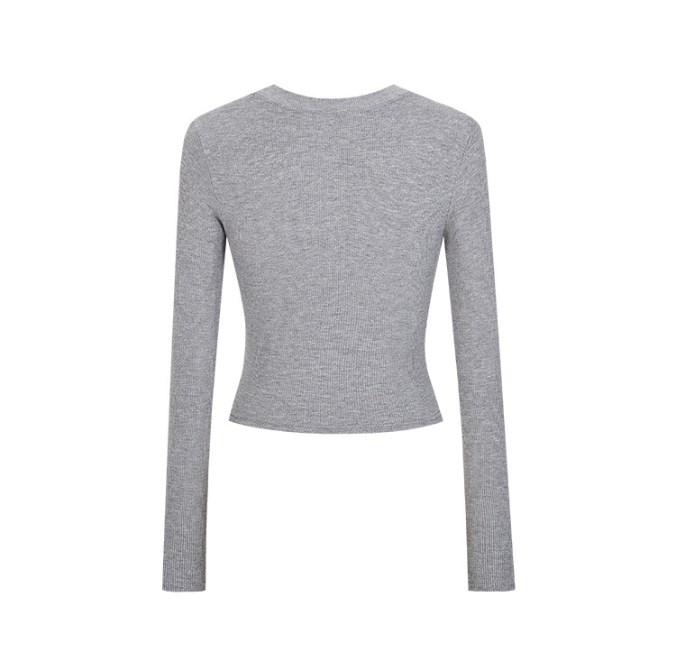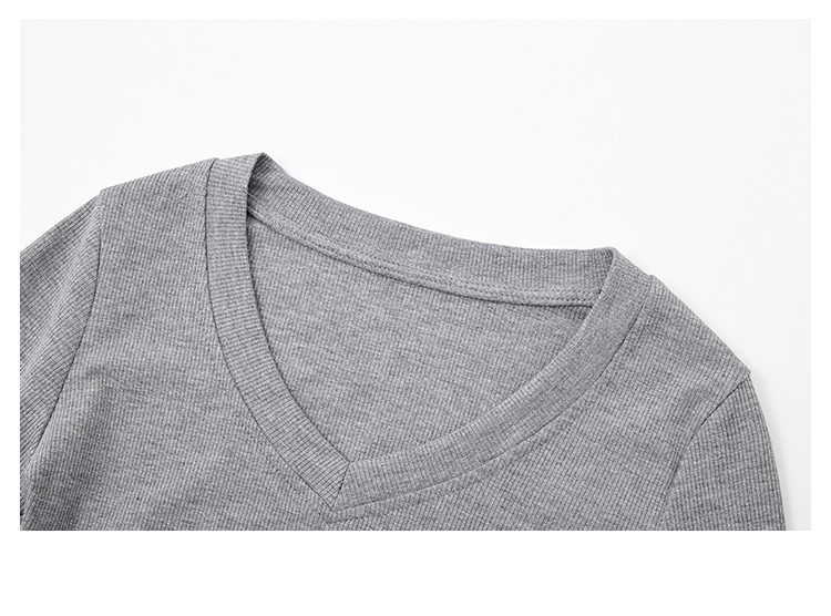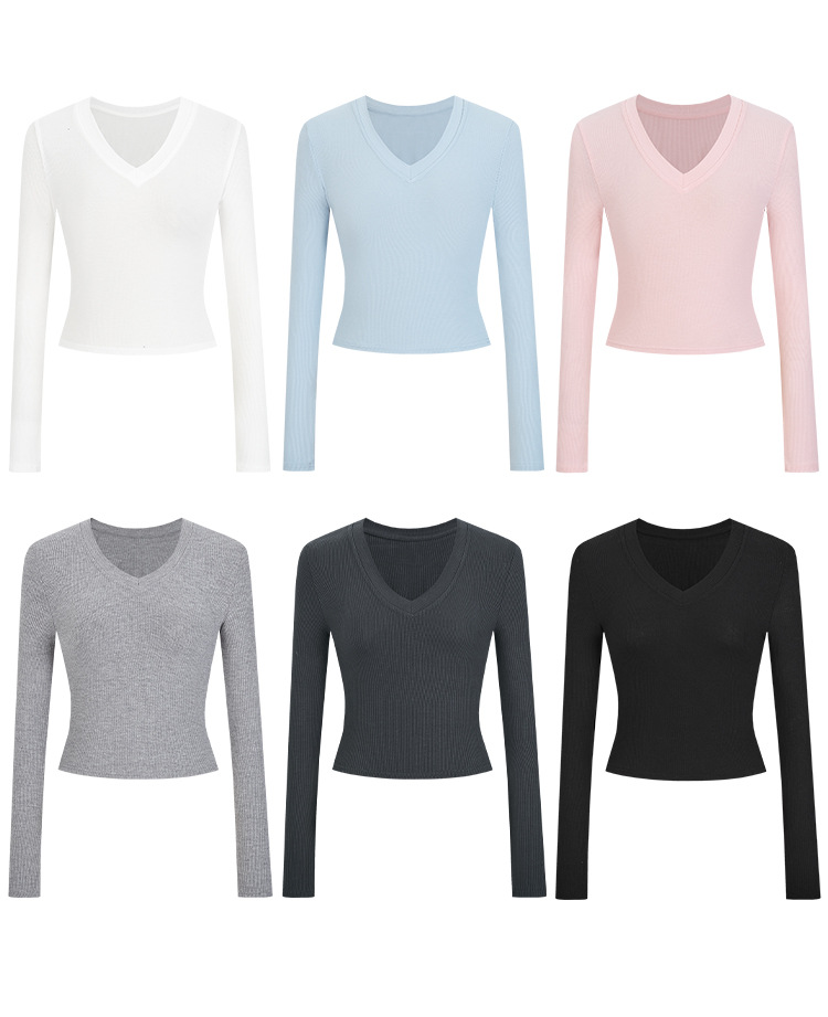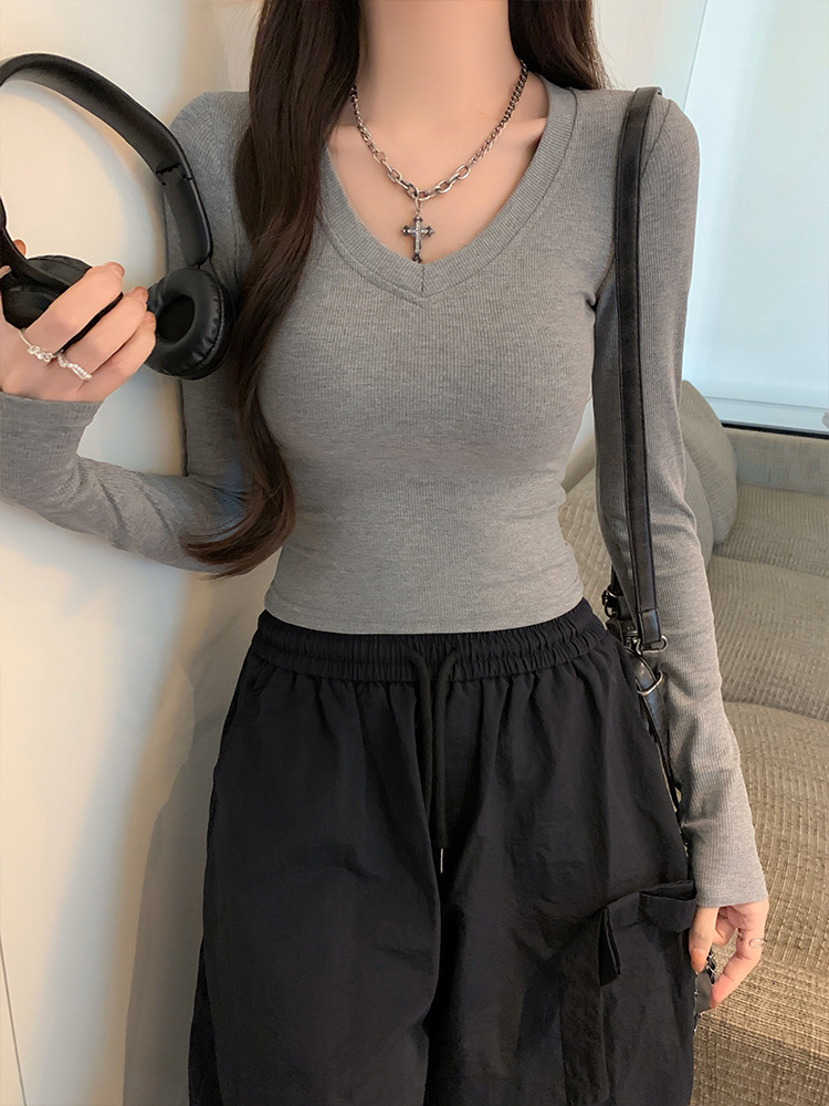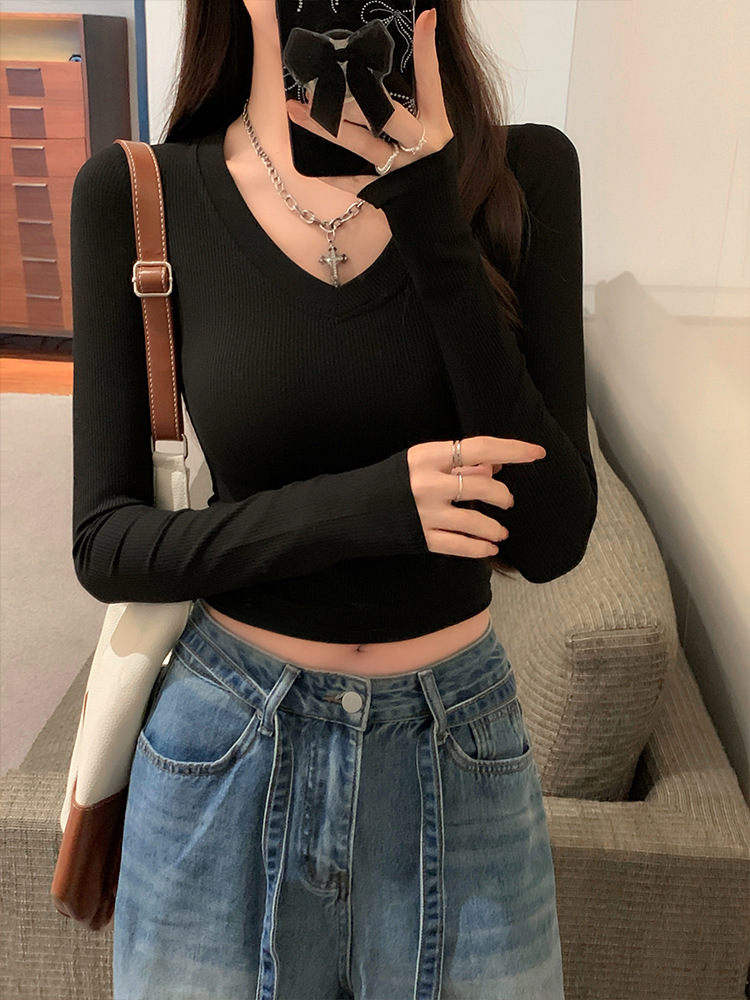 JMA-1037 实拍 春季新款韩版V领短款长袖T恤ins风辣妹韩版修身打底上衣