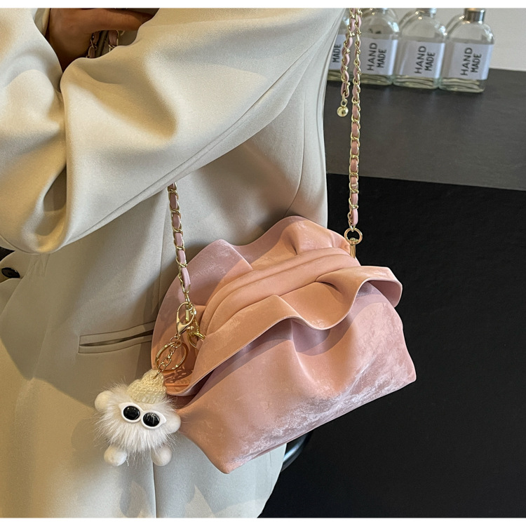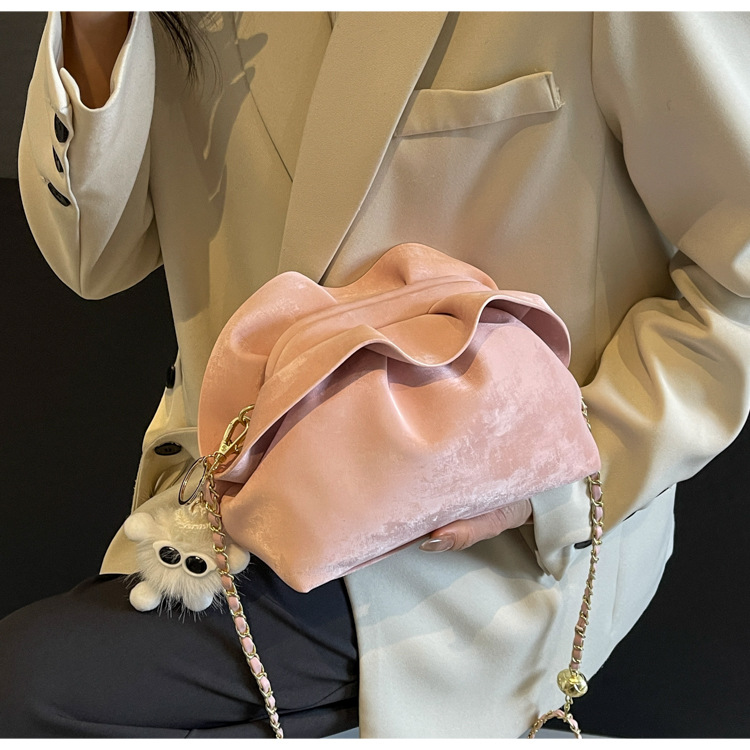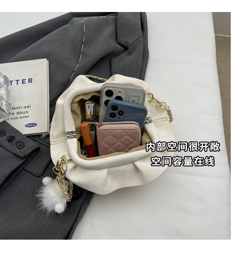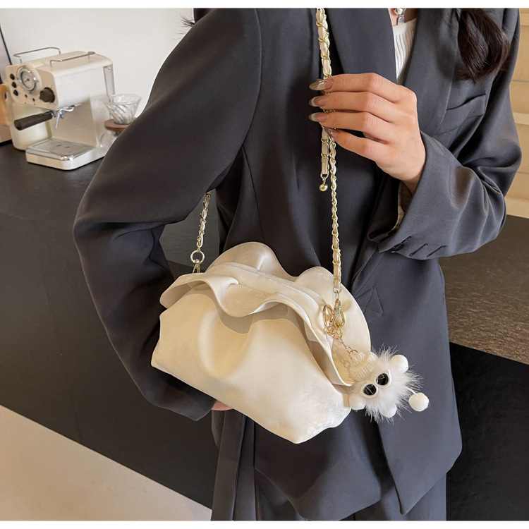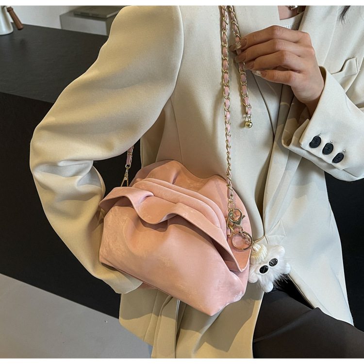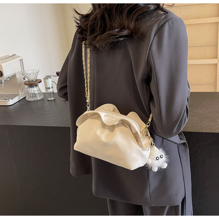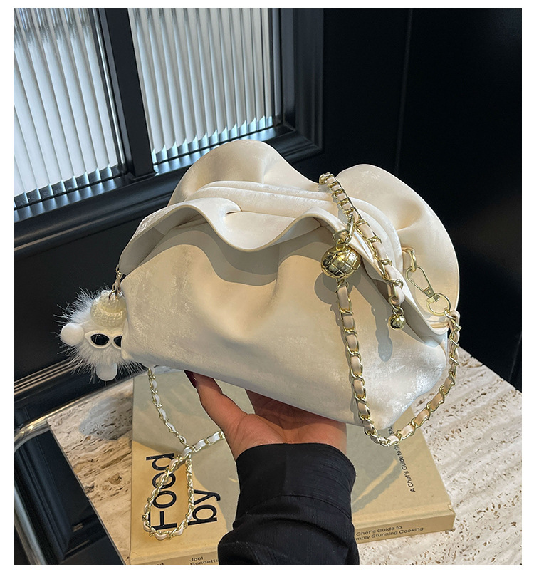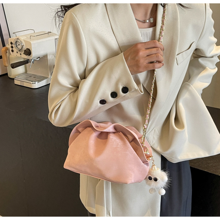 JM-1447 云朵包 新款洋气包小众褶皱链条包夹口单肩斜挎包腋下女包