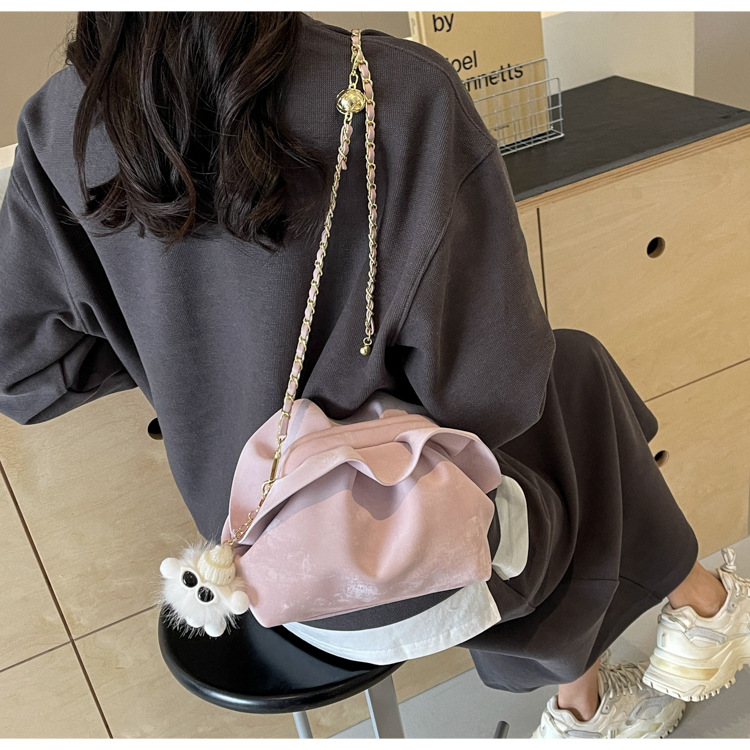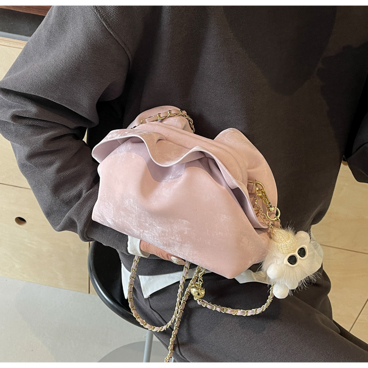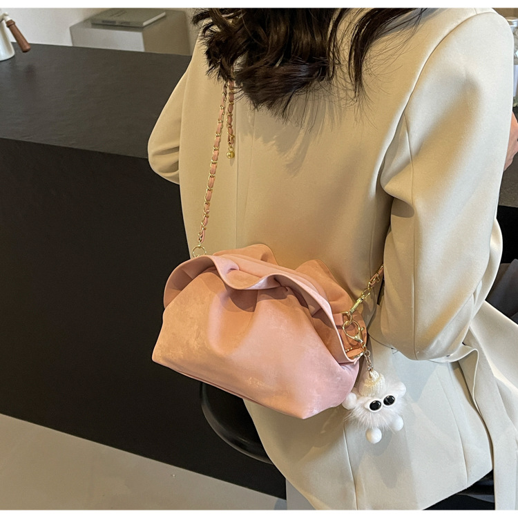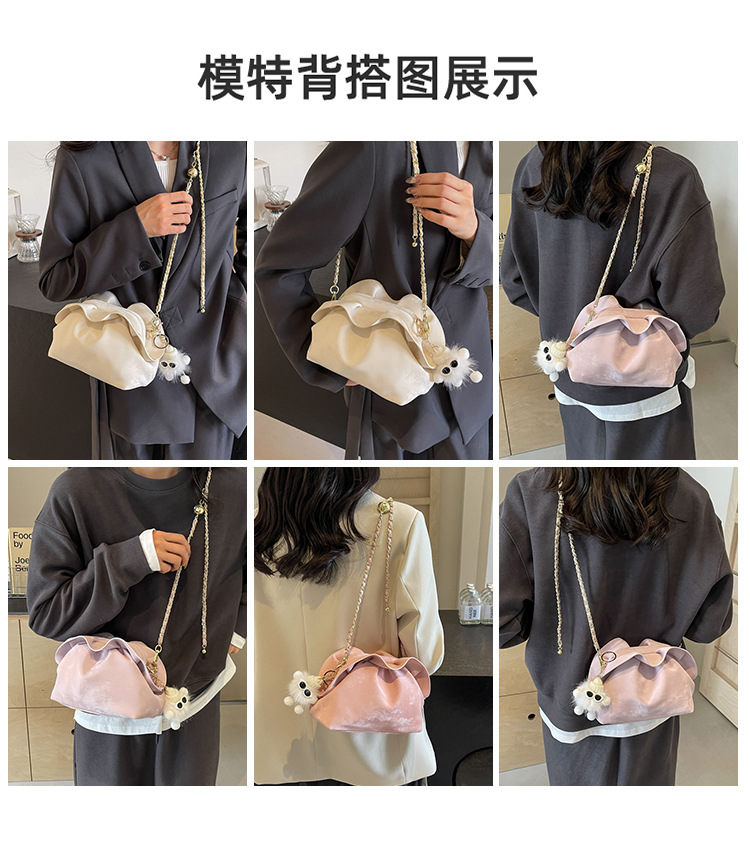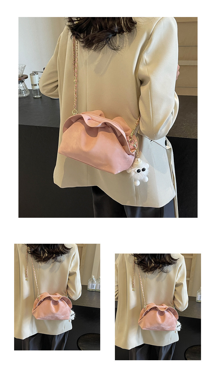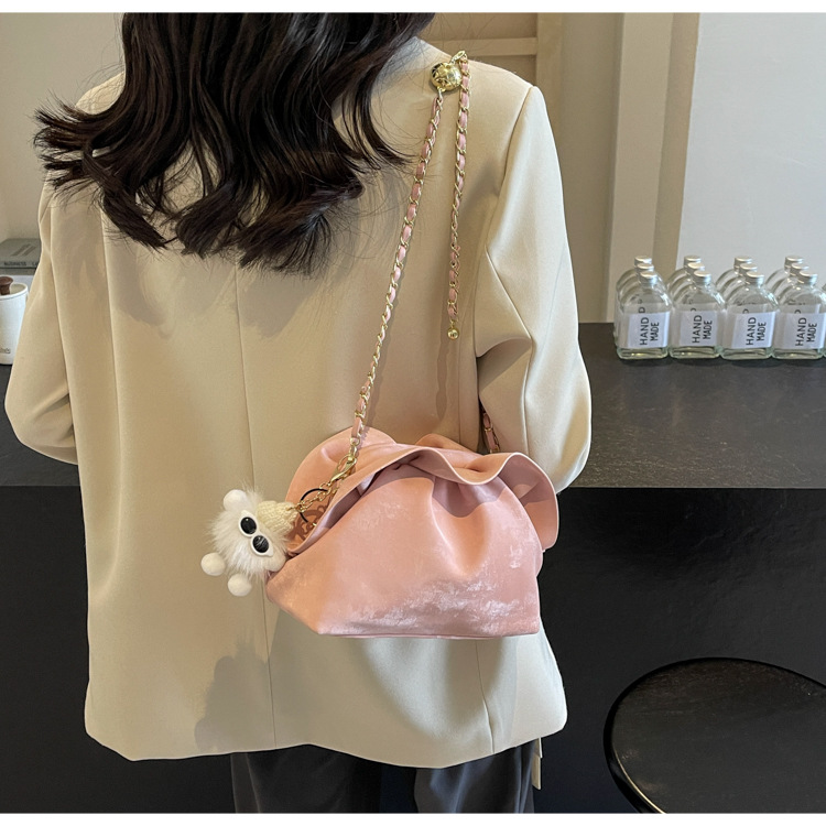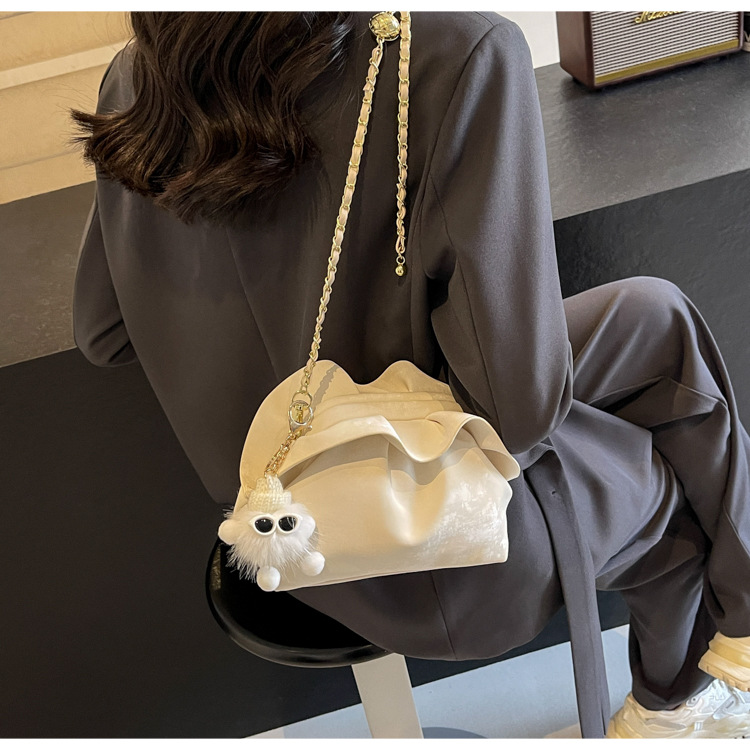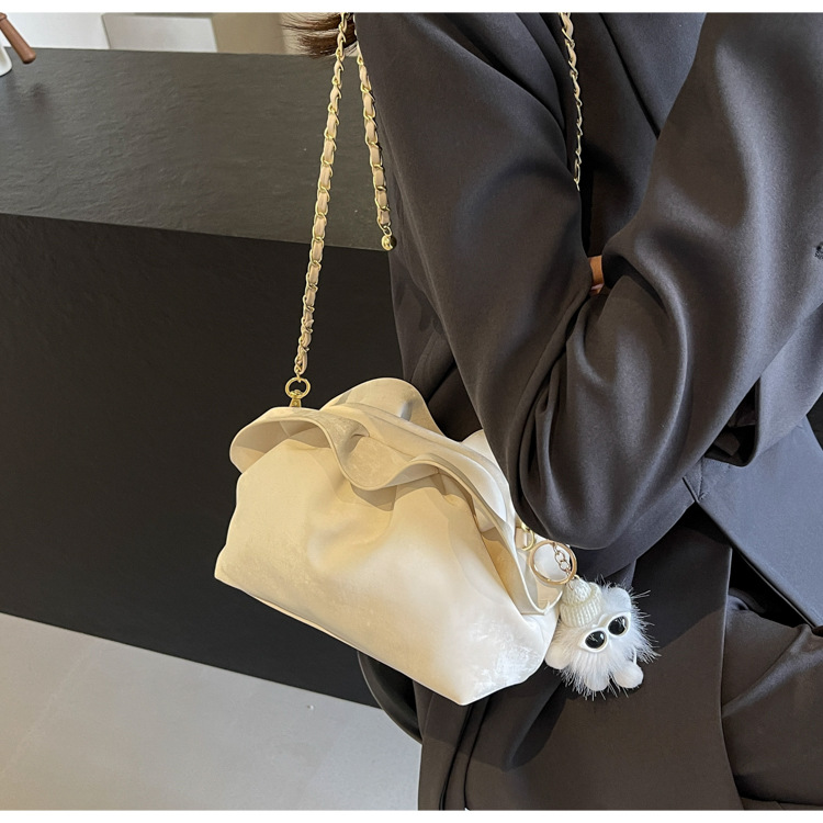 JM-1447 云朵包 新款洋气包小众褶皱链条包夹口单肩斜挎包腋下女包
