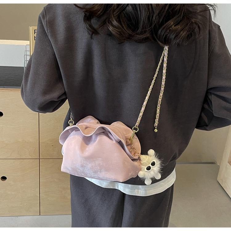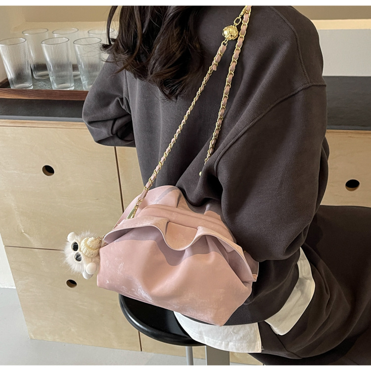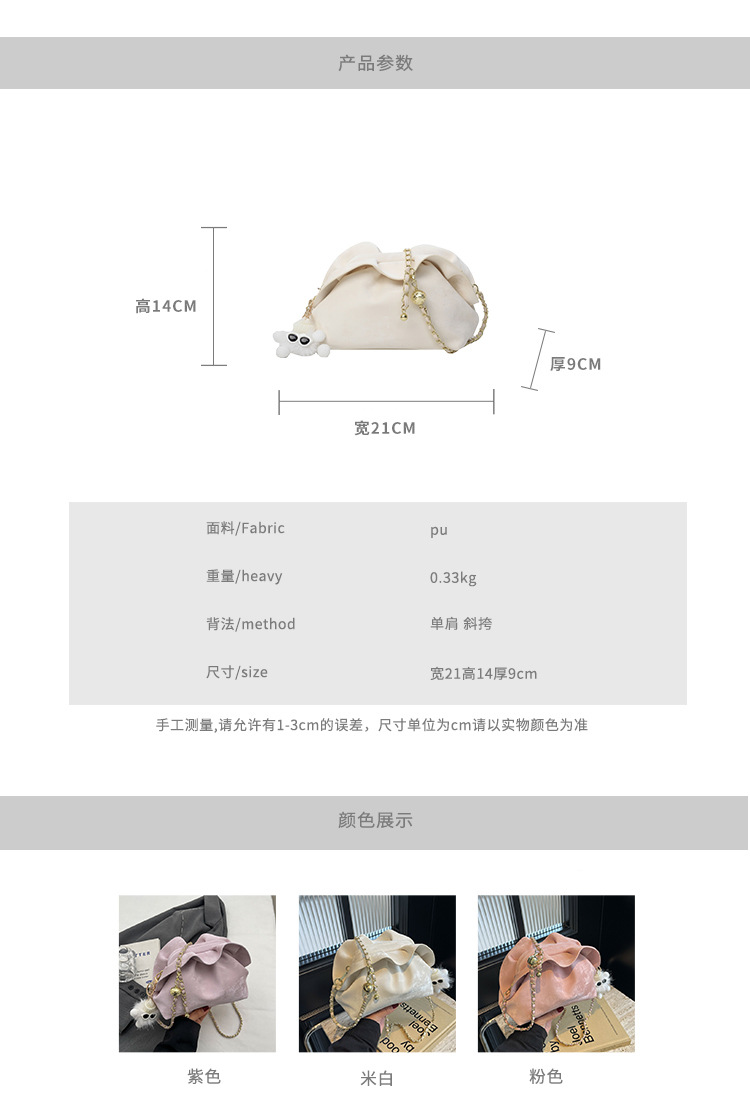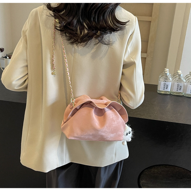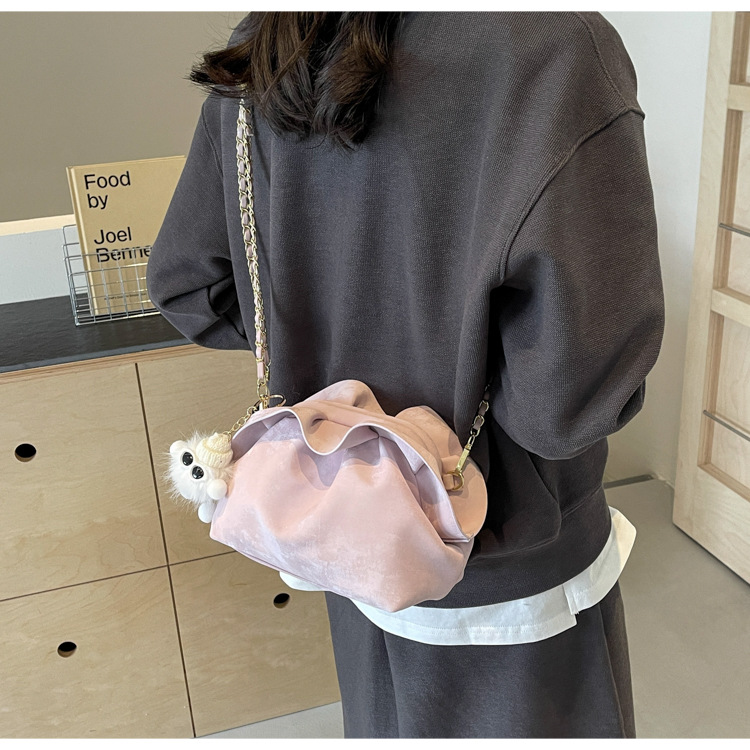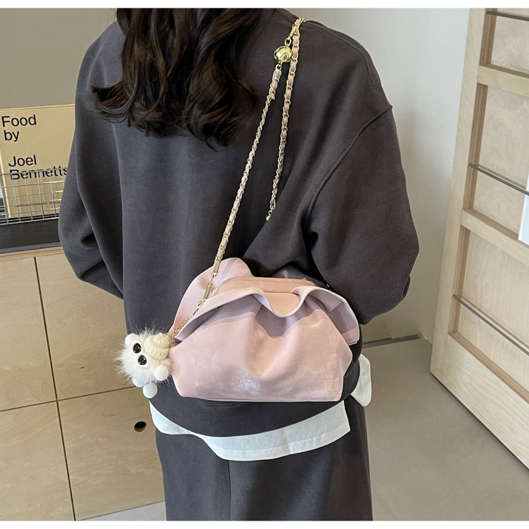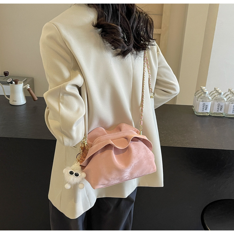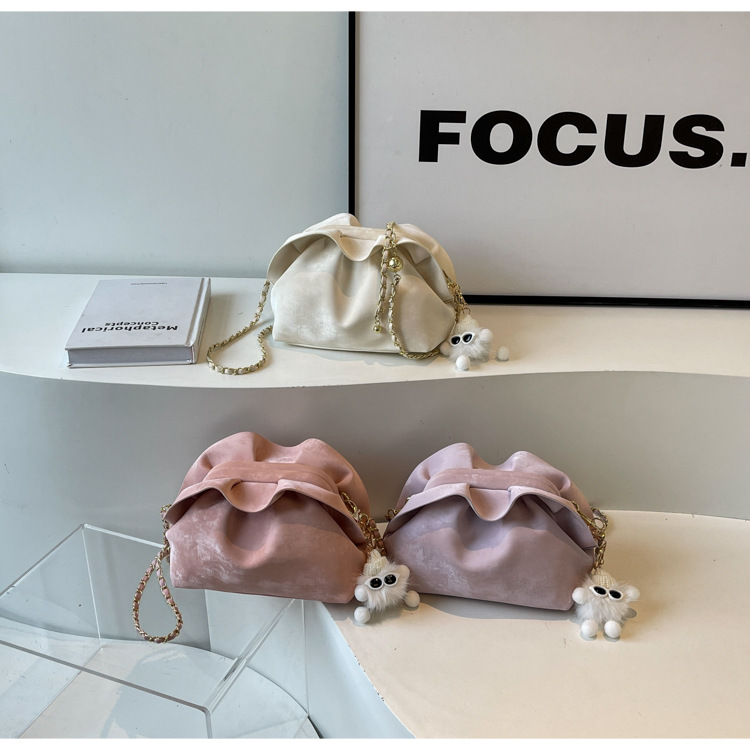 JM-1447 云朵包 新款洋气包小众褶皱链条包夹口单肩斜挎包腋下女包