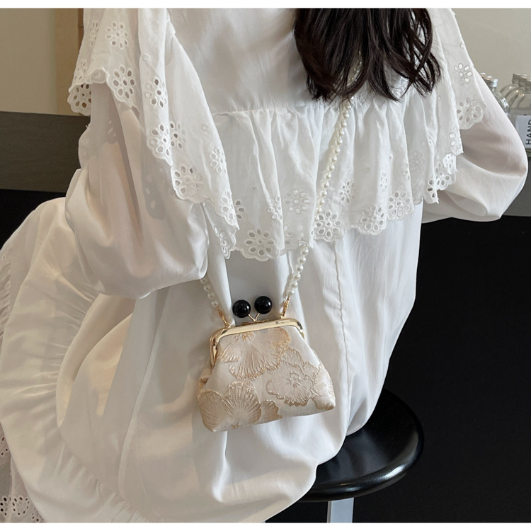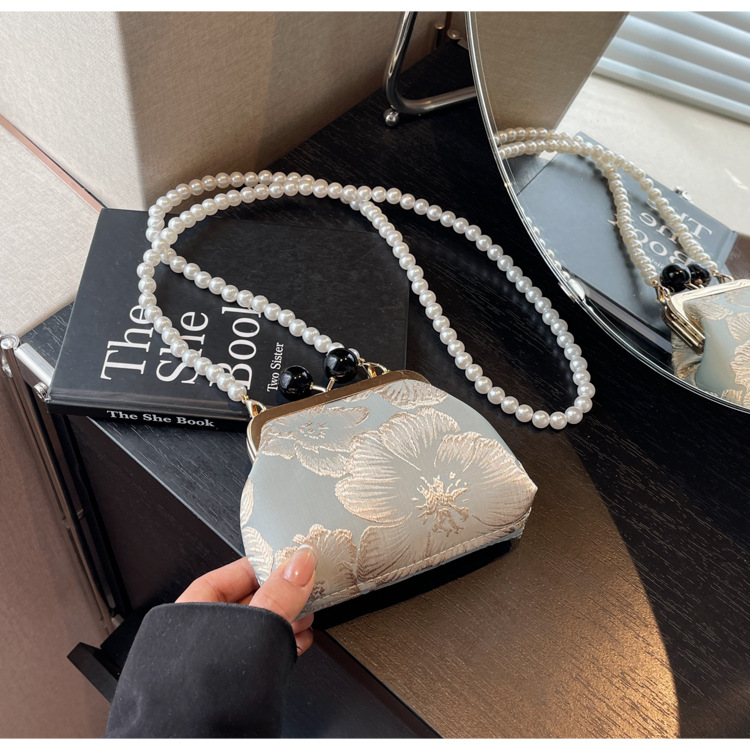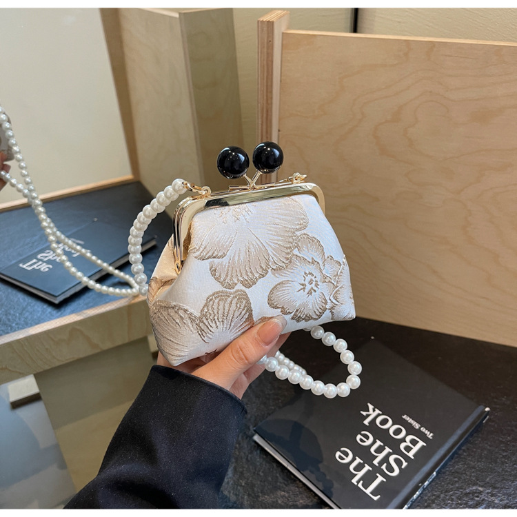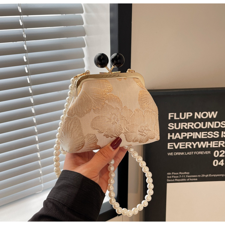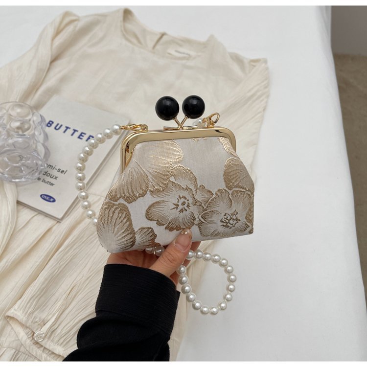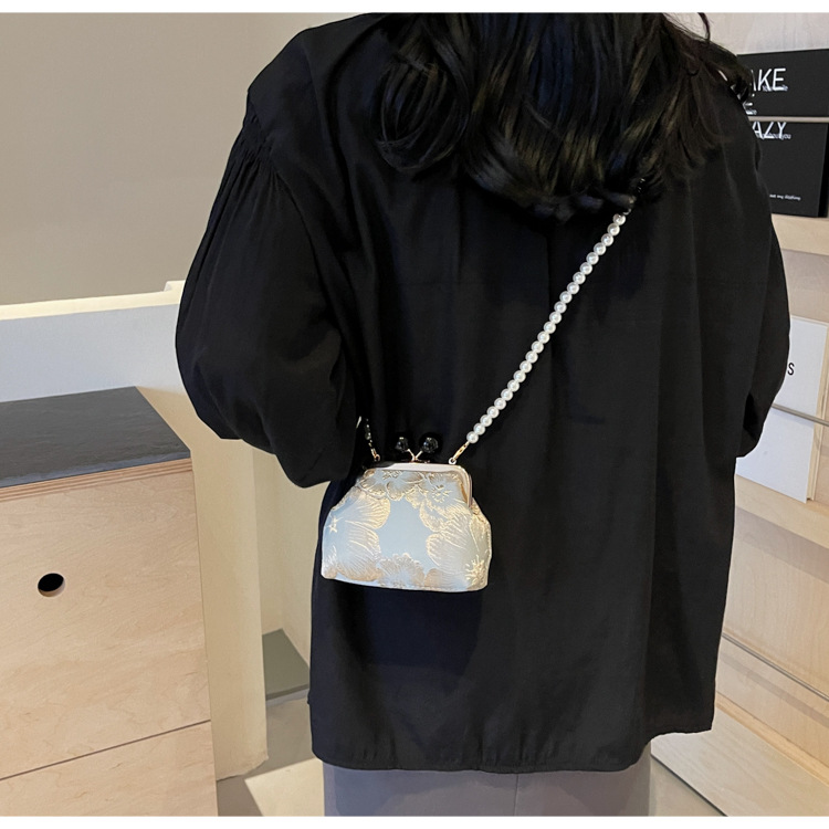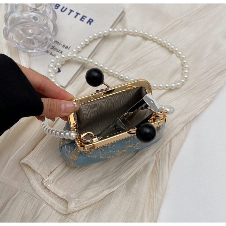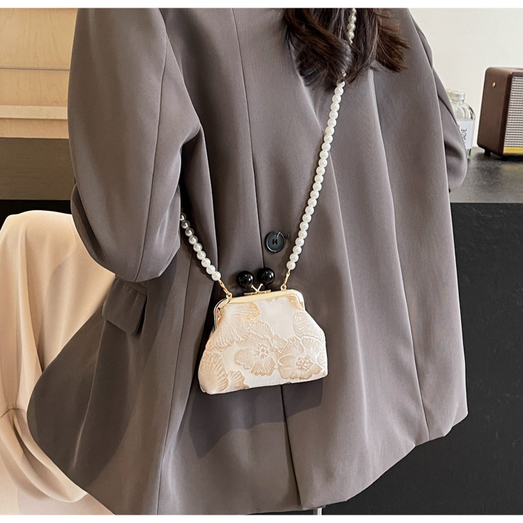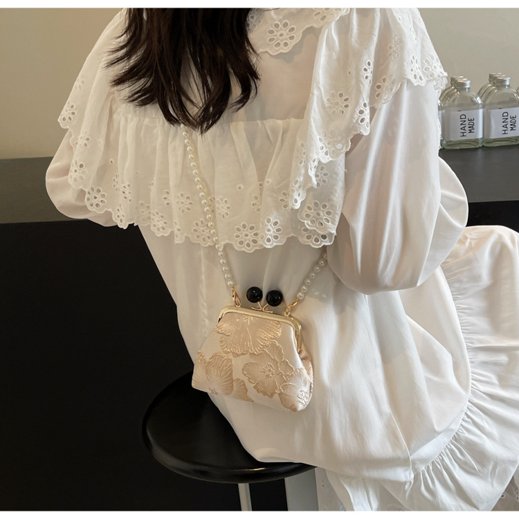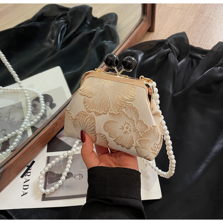 JM-1448 时尚百搭新中式包包女新款百搭珍珠链条单肩包斜挎包迷你包口金包