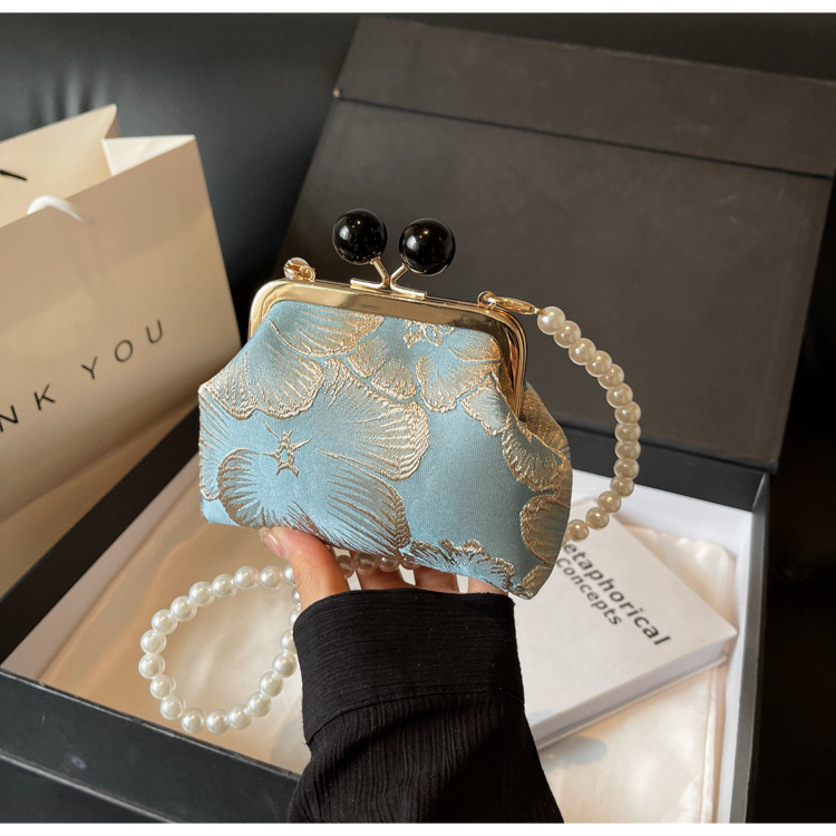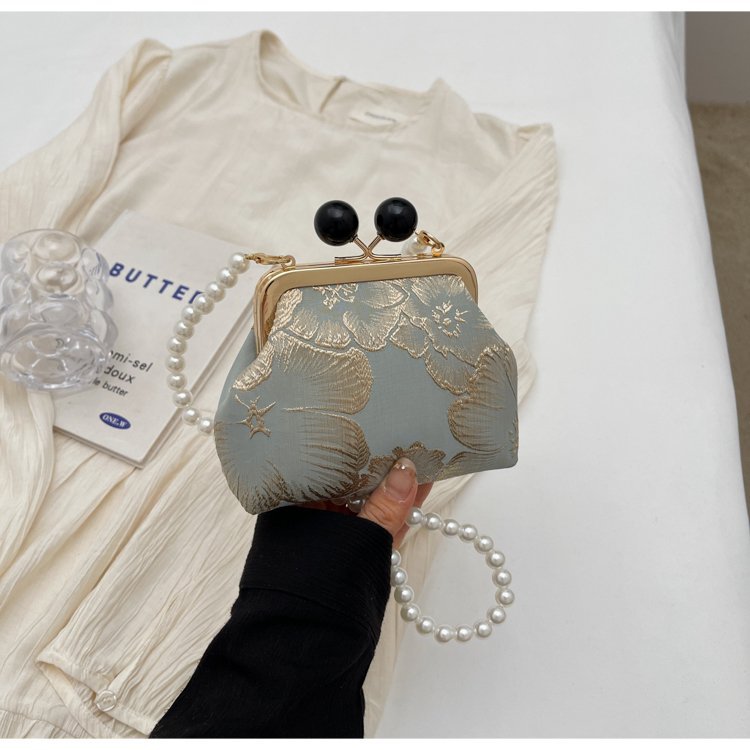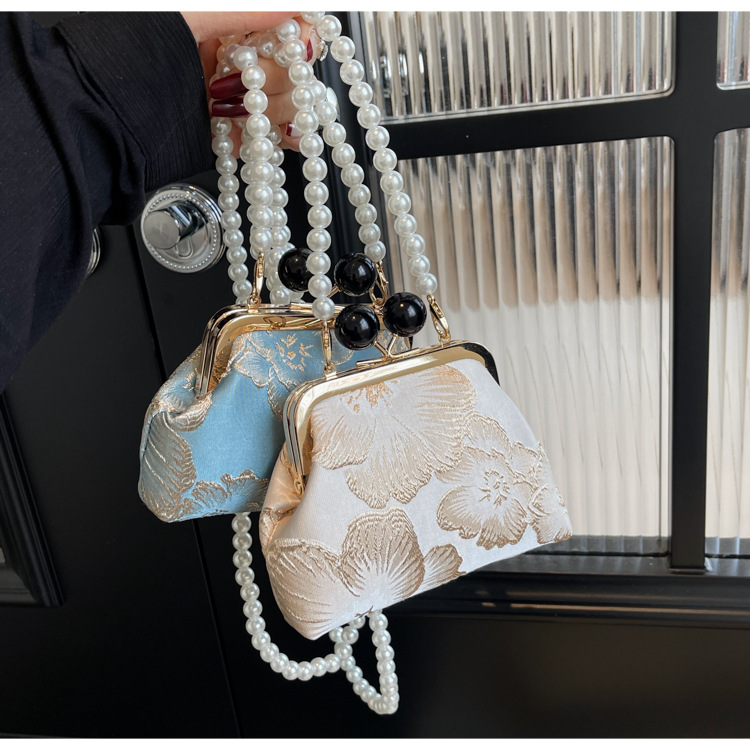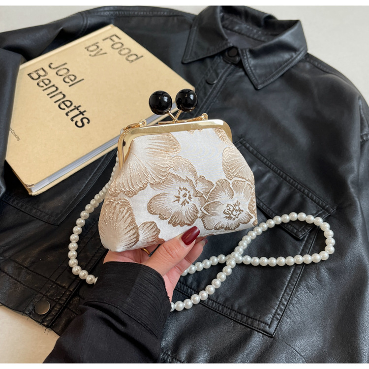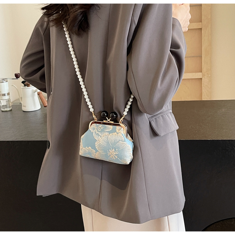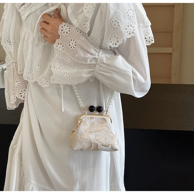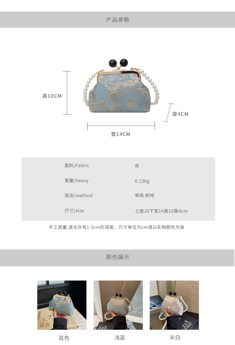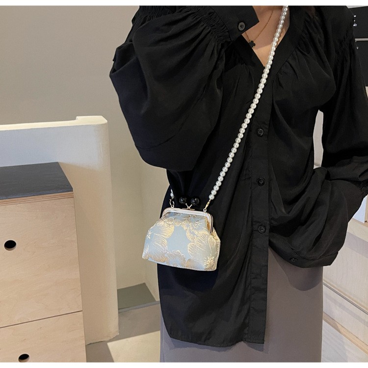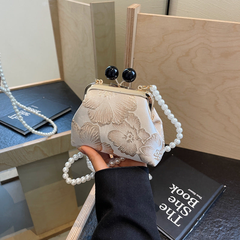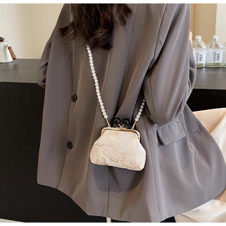 JM-1448 时尚百搭新中式包包女新款百搭珍珠链条单肩包斜挎包迷你包口金包