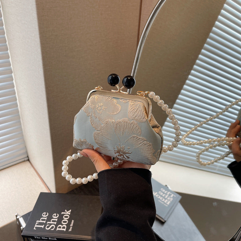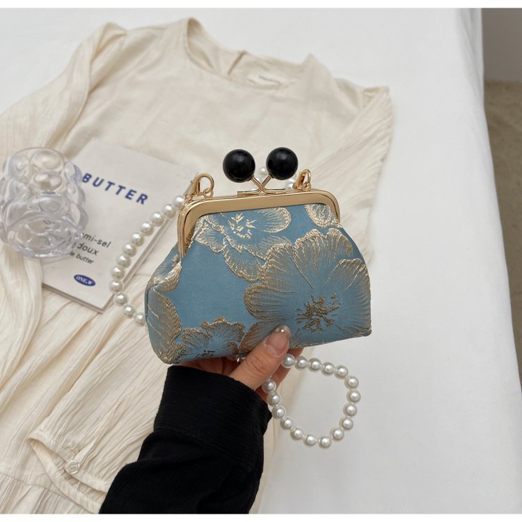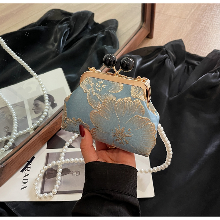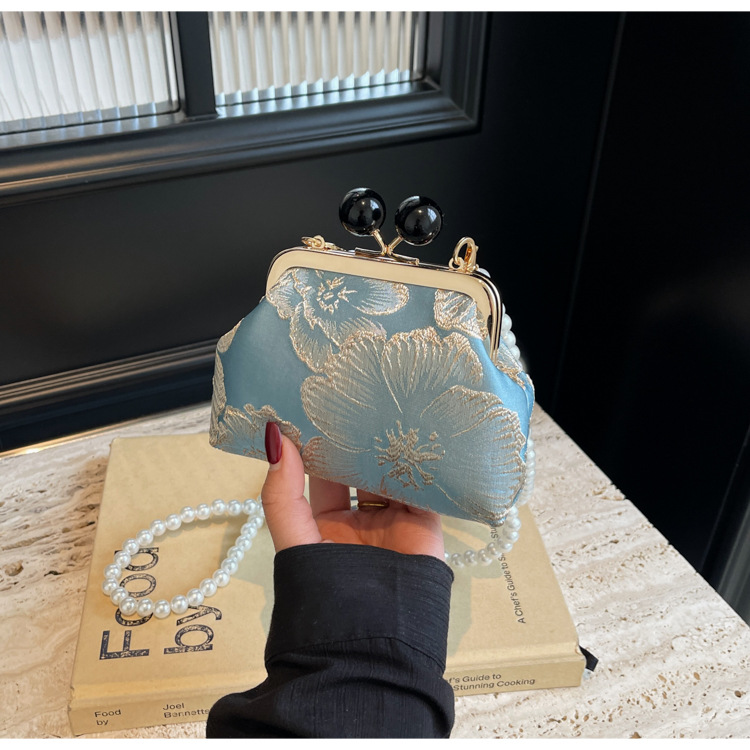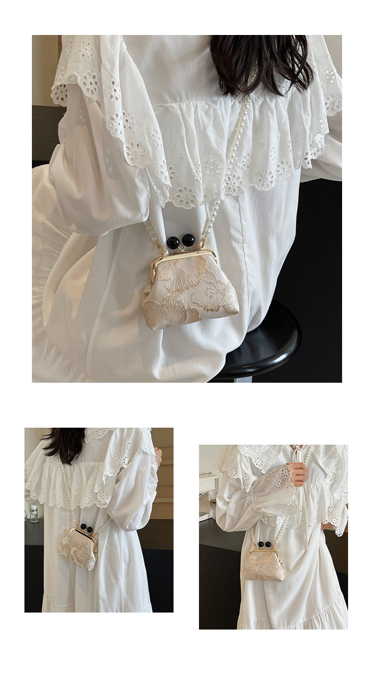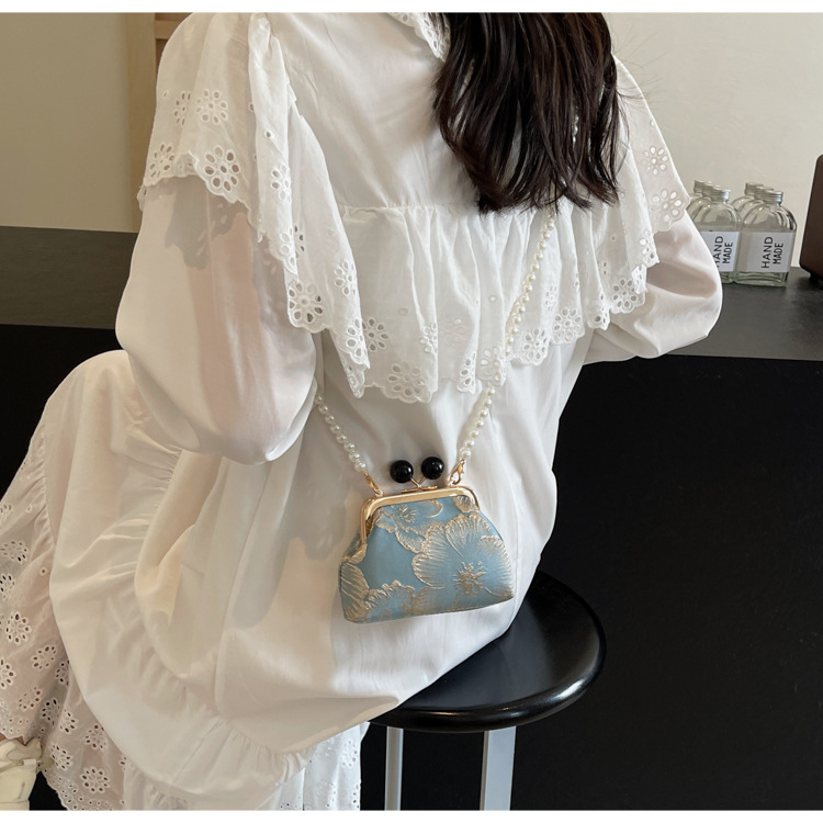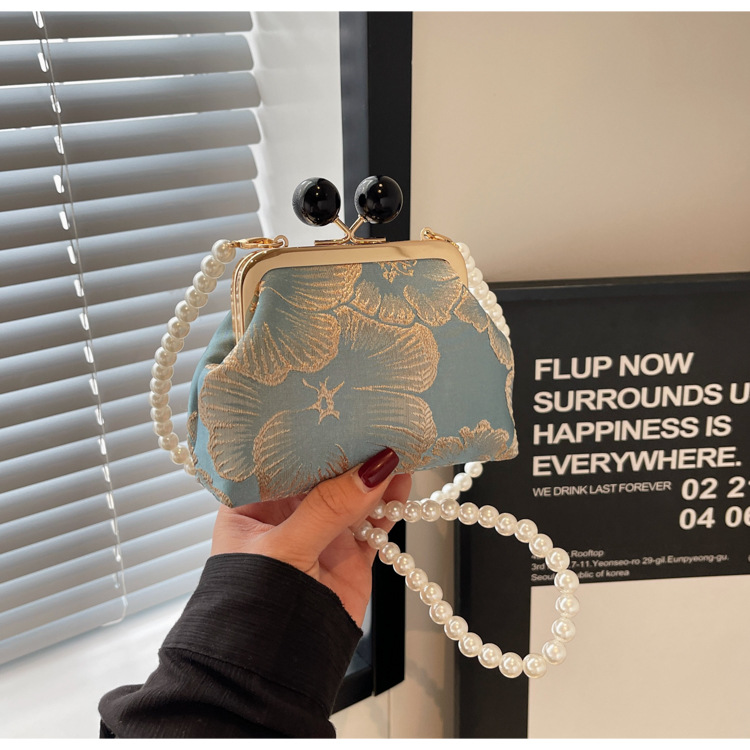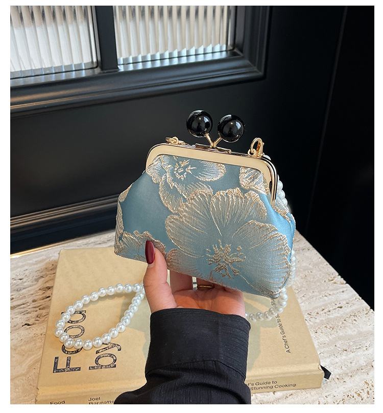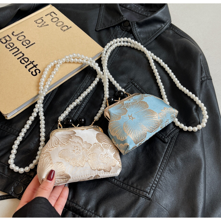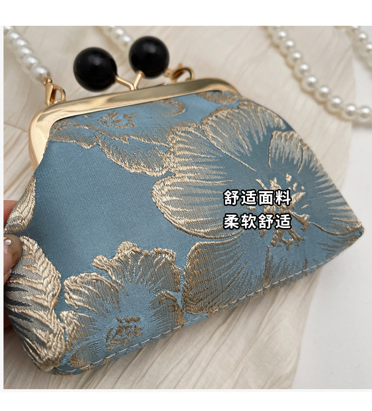 JM-1448 时尚百搭新中式包包女新款百搭珍珠链条单肩包斜挎包迷你包口金包