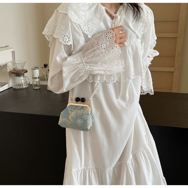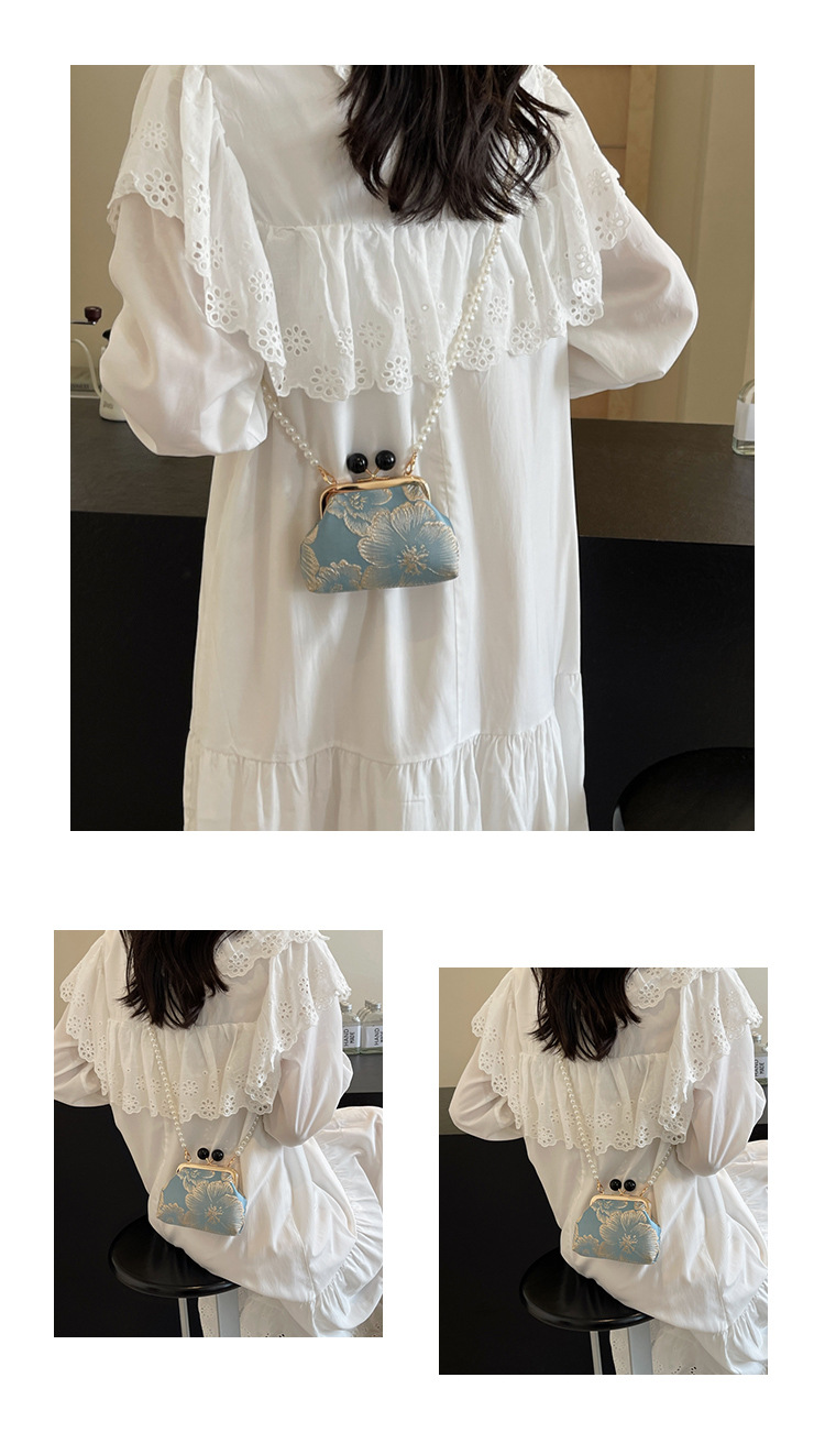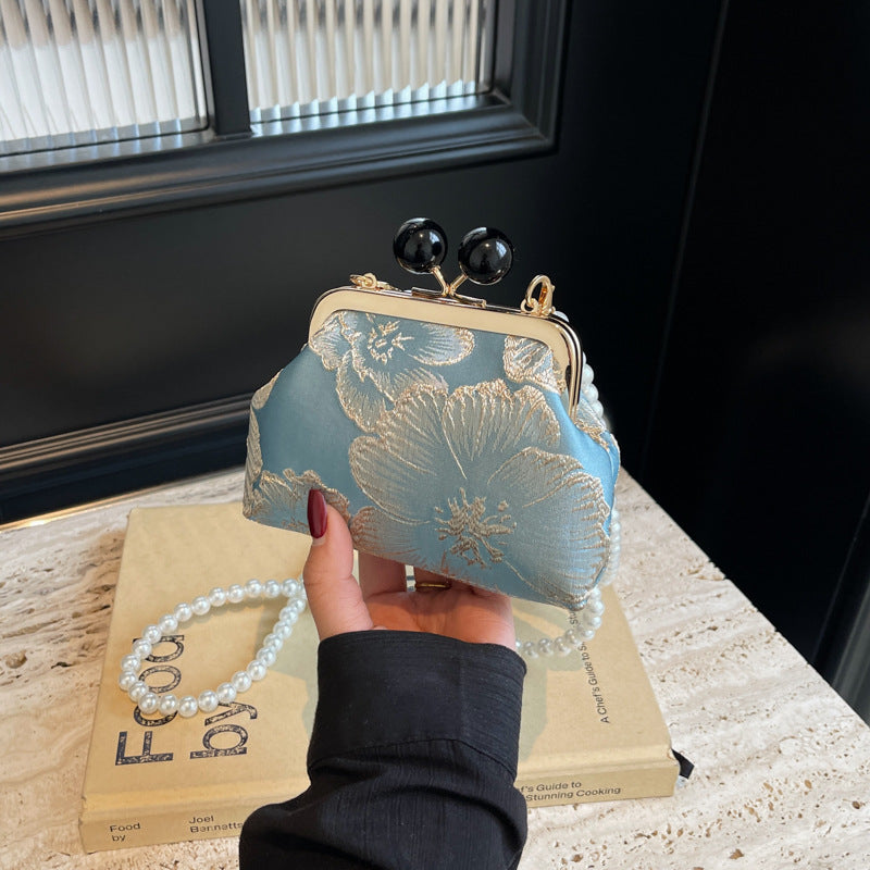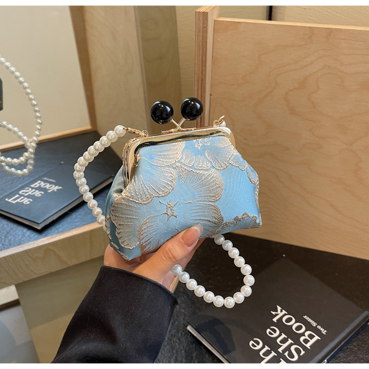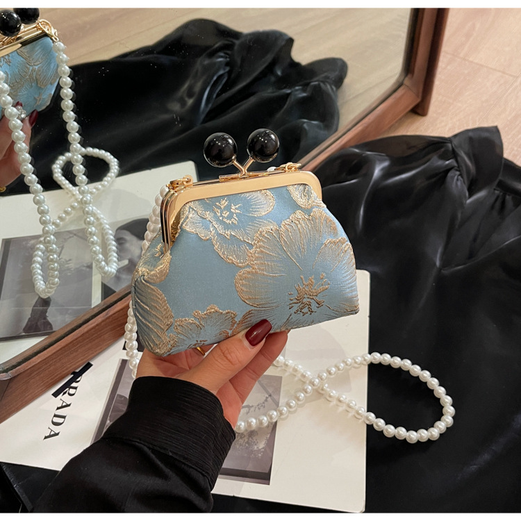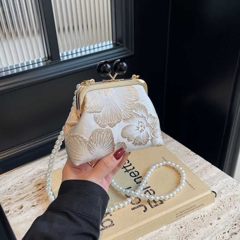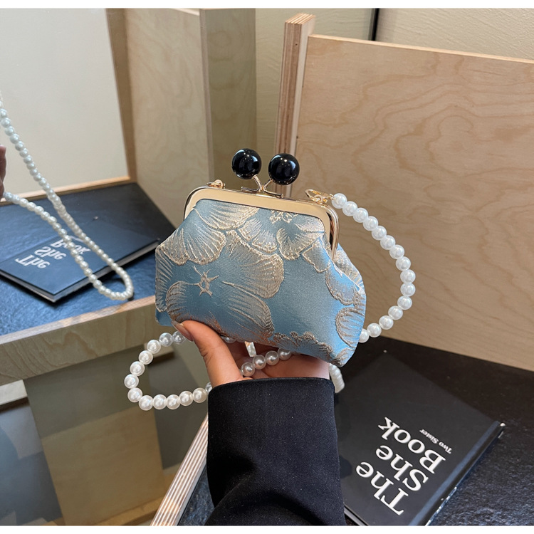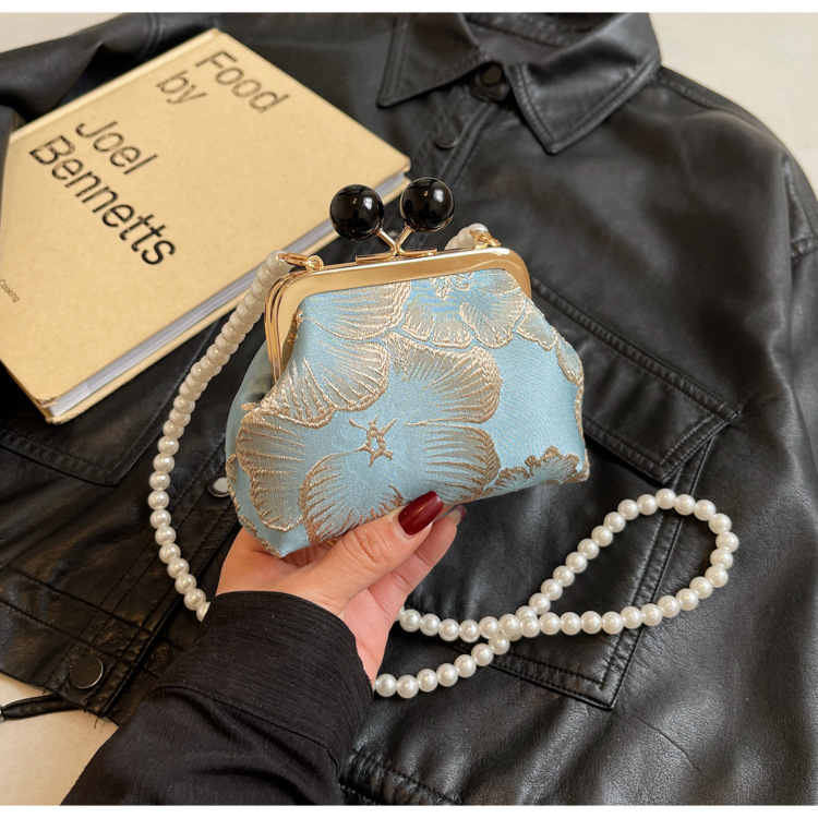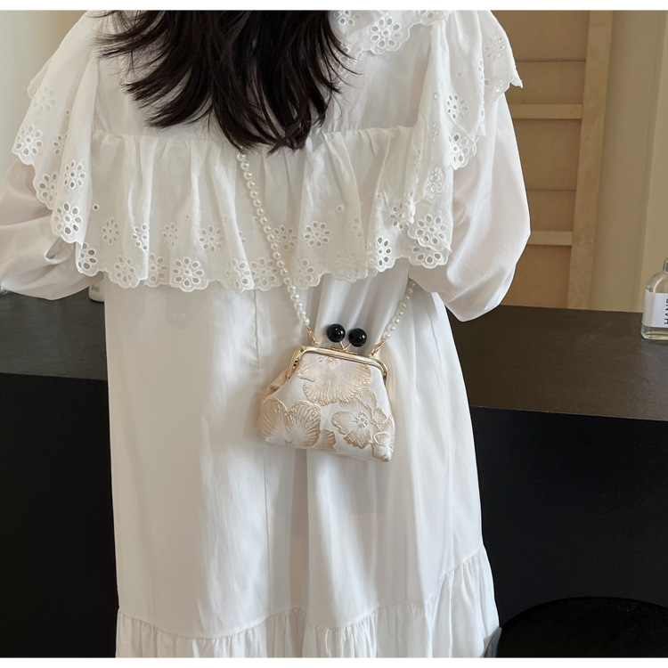 JM-1448 时尚百搭新中式包包女新款百搭珍珠链条单肩包斜挎包迷你包口金包
