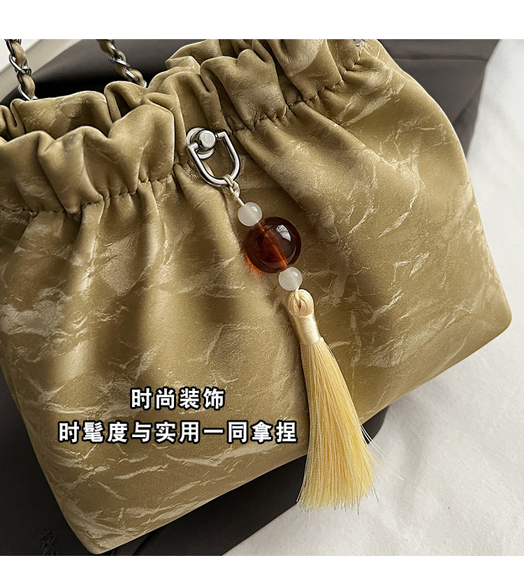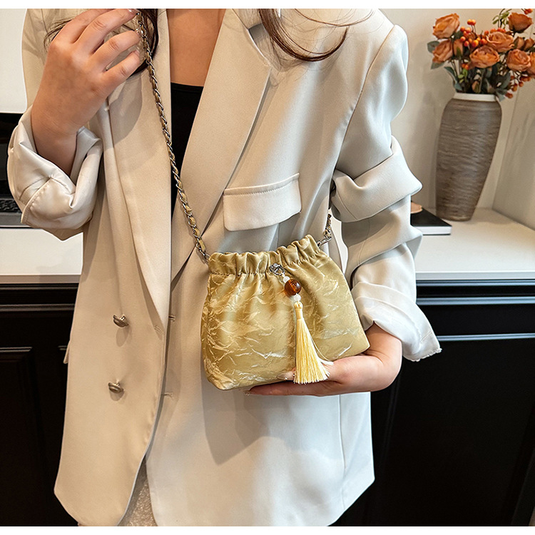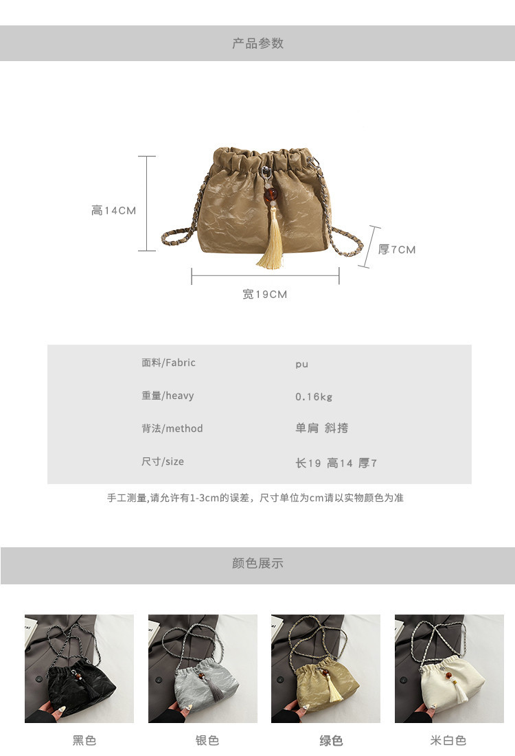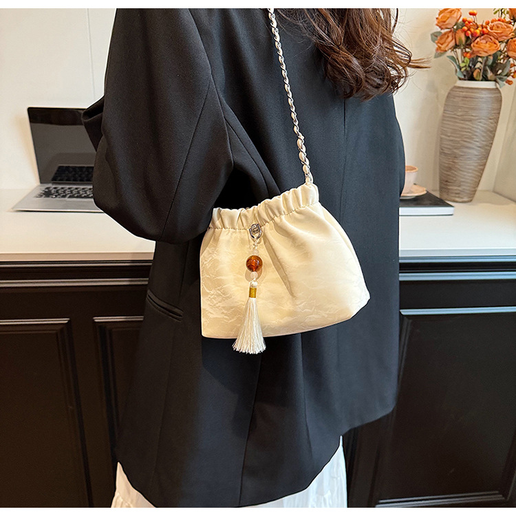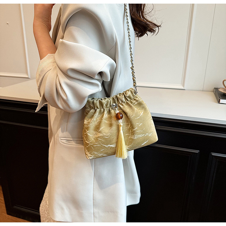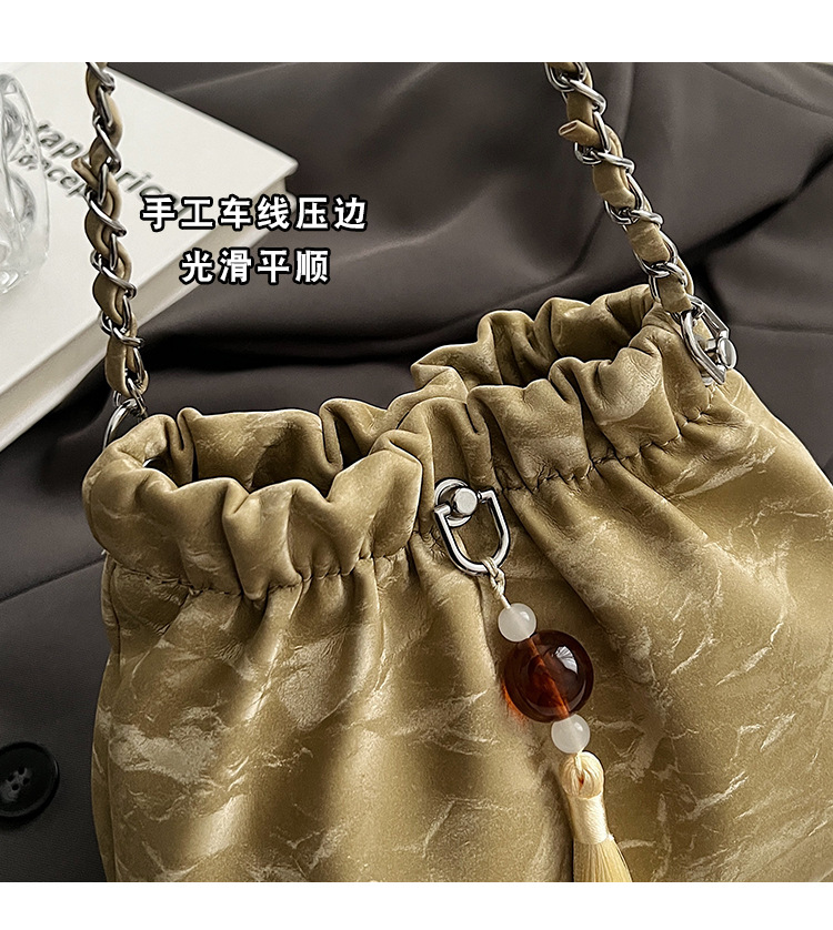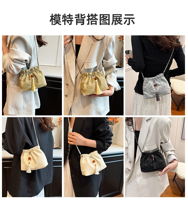 JM-1450 新中式国风复古包包女 新款褶皱束口水桶包百搭单肩斜挎包