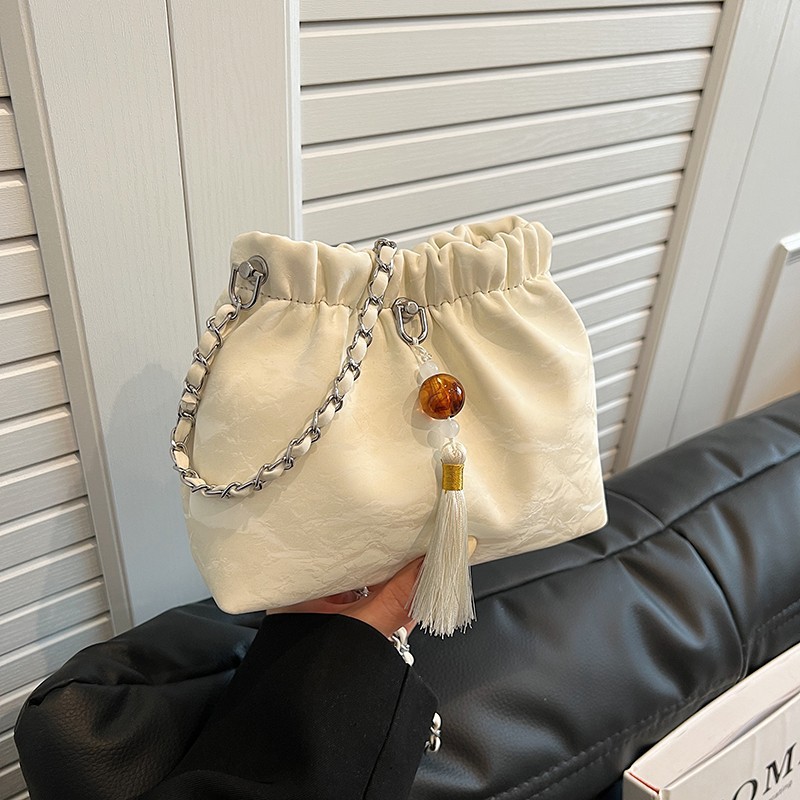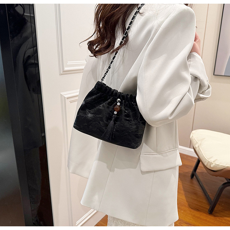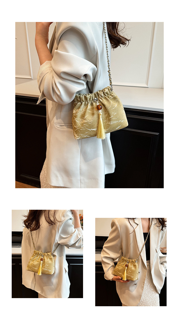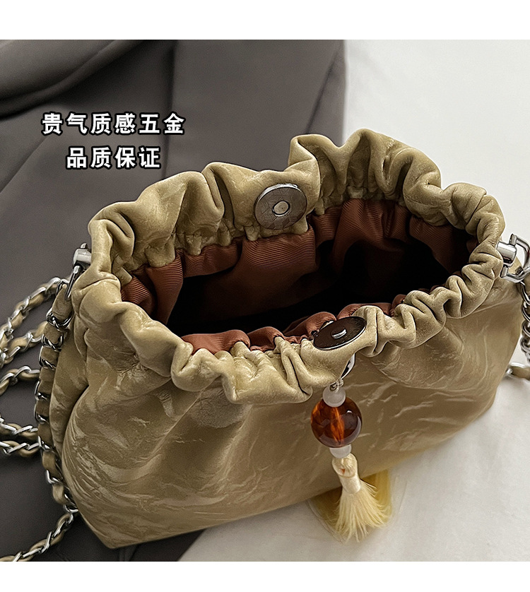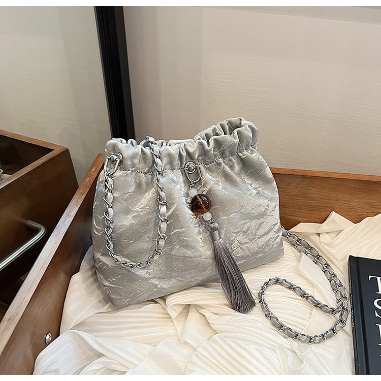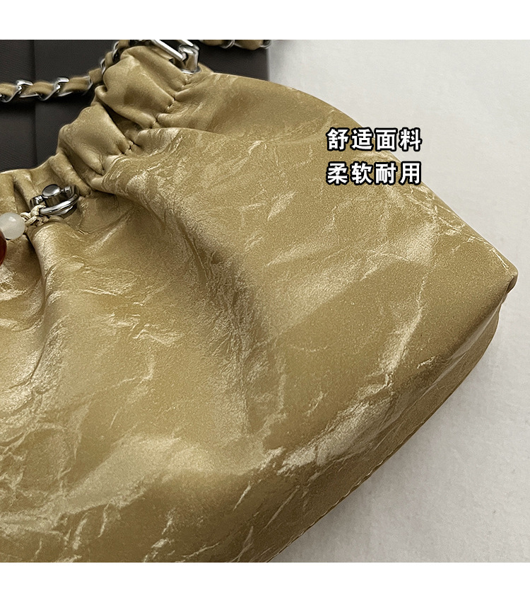 JM-1450 新中式国风复古包包女 新款褶皱束口水桶包百搭单肩斜挎包