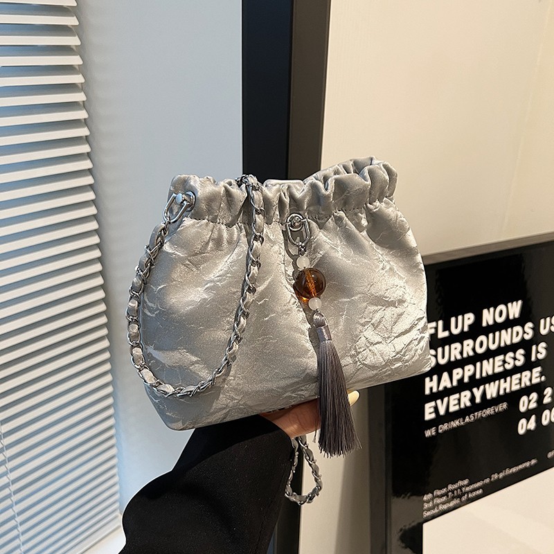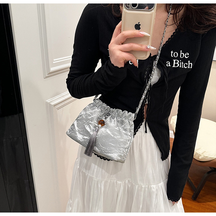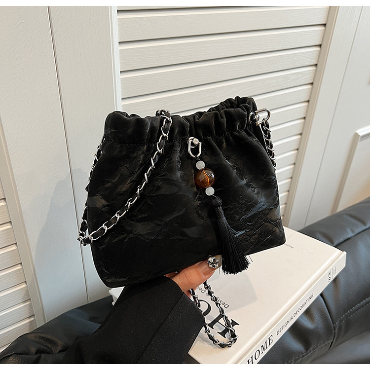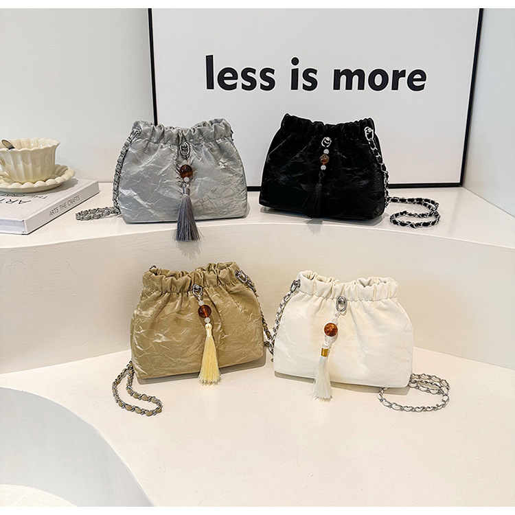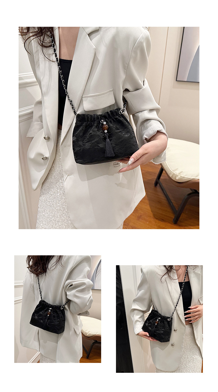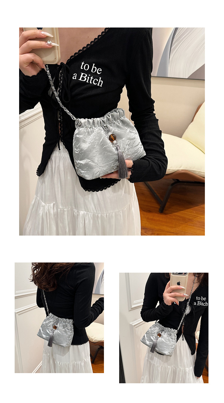 JM-1450 新中式国风复古包包女 新款褶皱束口水桶包百搭单肩斜挎包