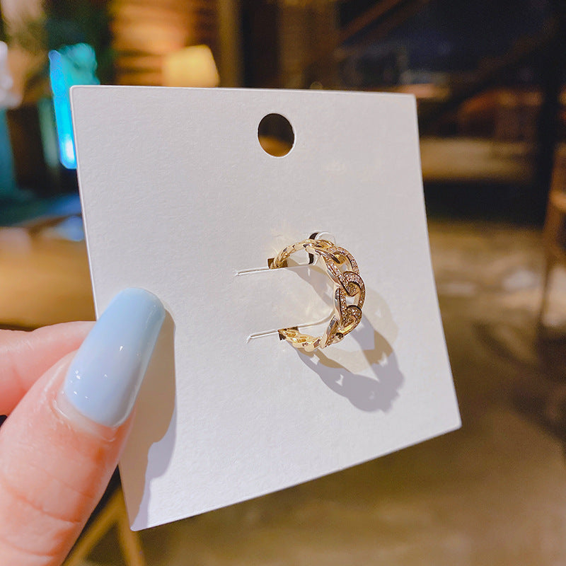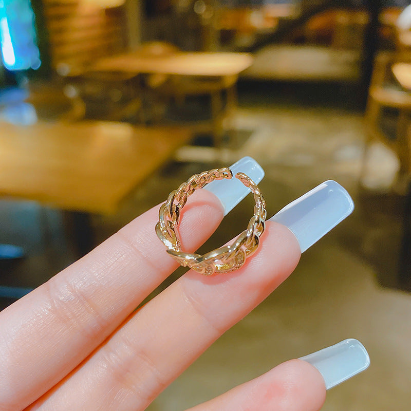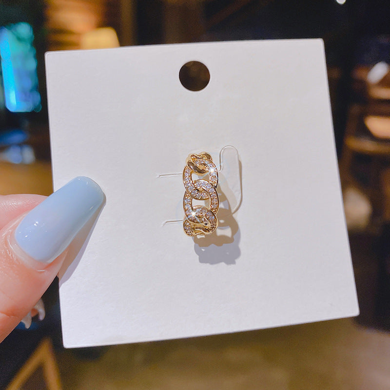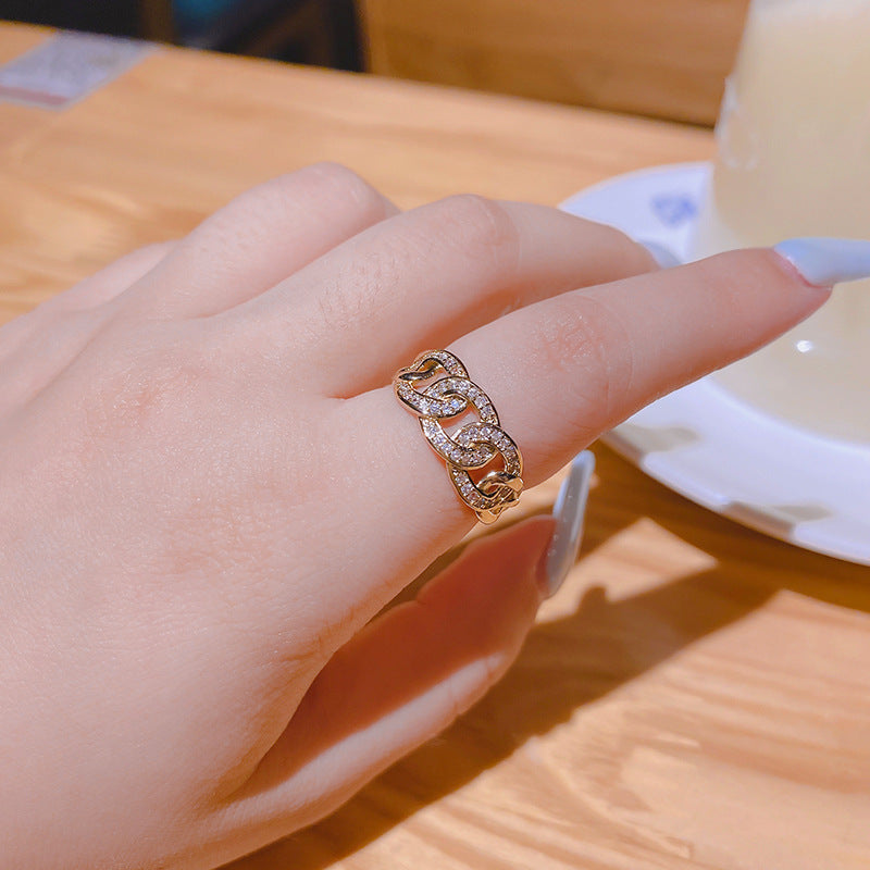 JME-1035 真金电镀铜镶锆石网红韩国小众设计几何链条戒指复古指环食指指环