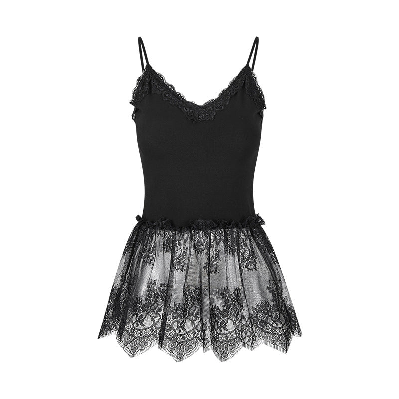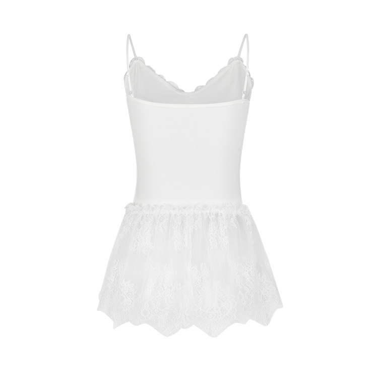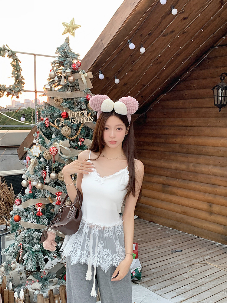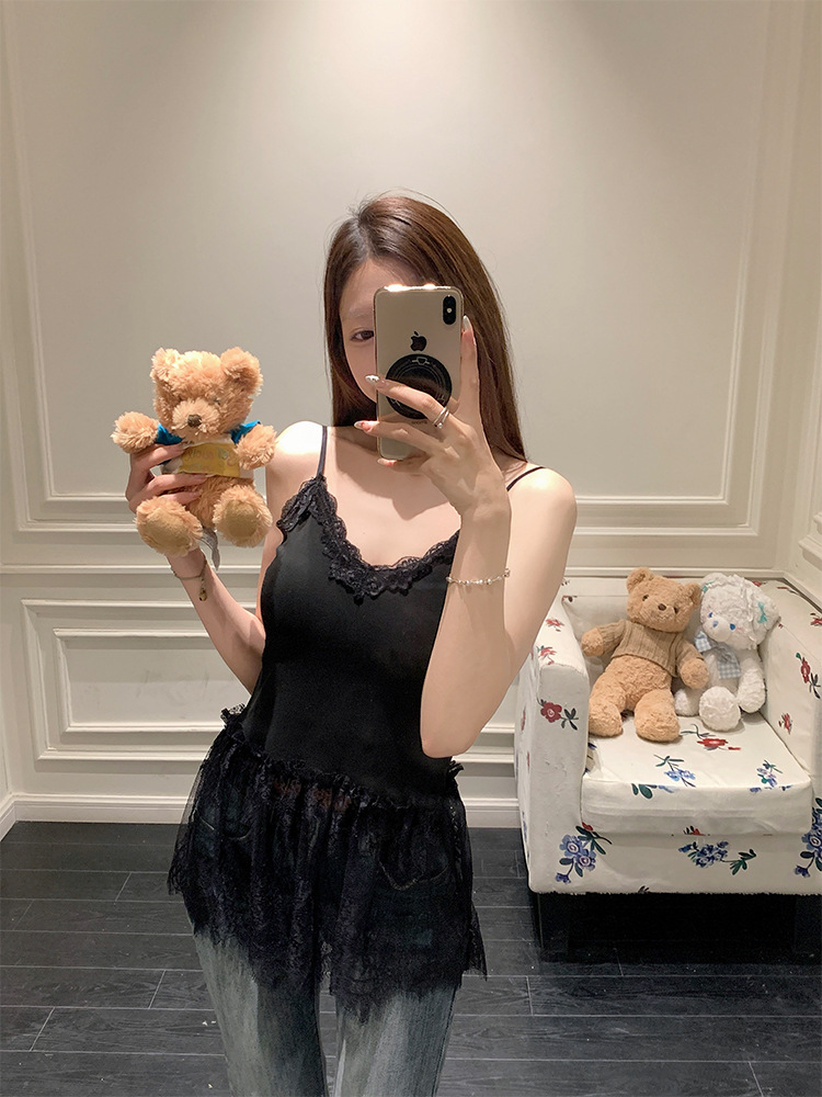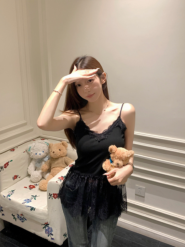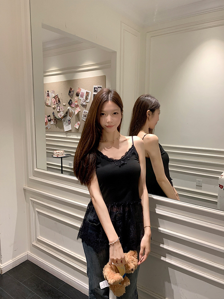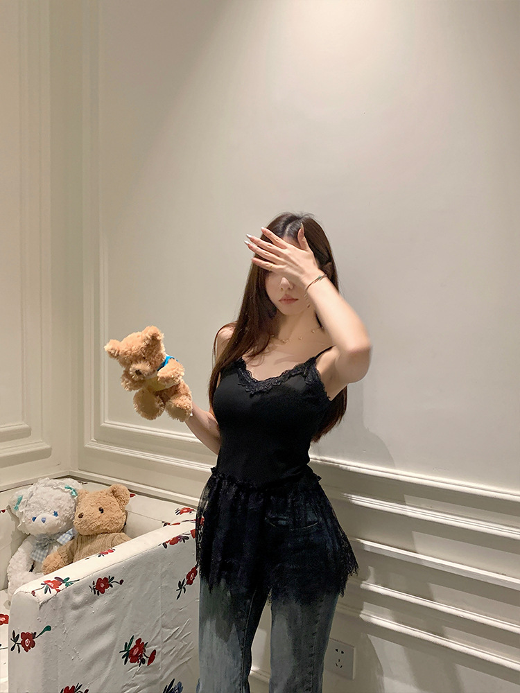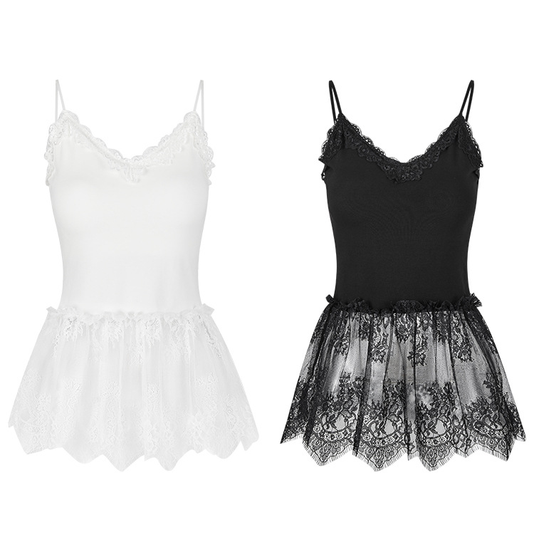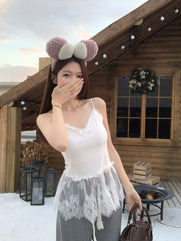 JMA-1041 实拍 春夏韩系叠穿白色V领蕾丝吊带背心女荷叶边屁帘无袖上衣