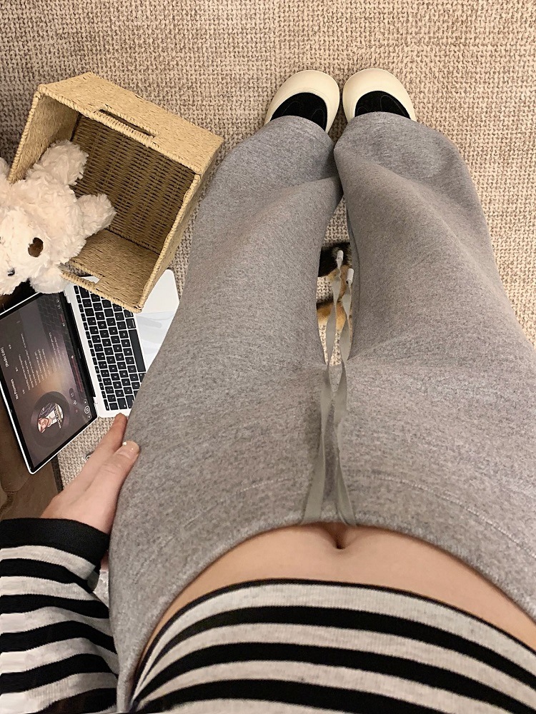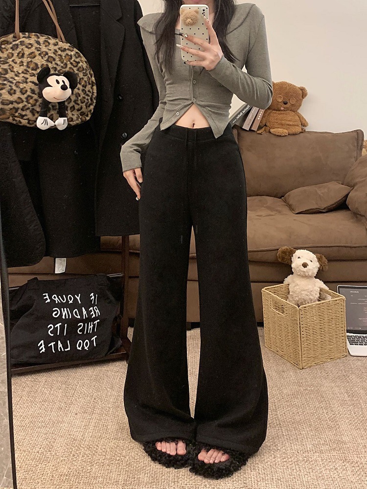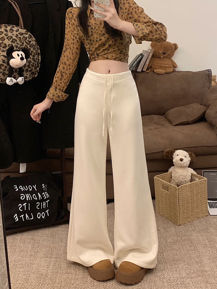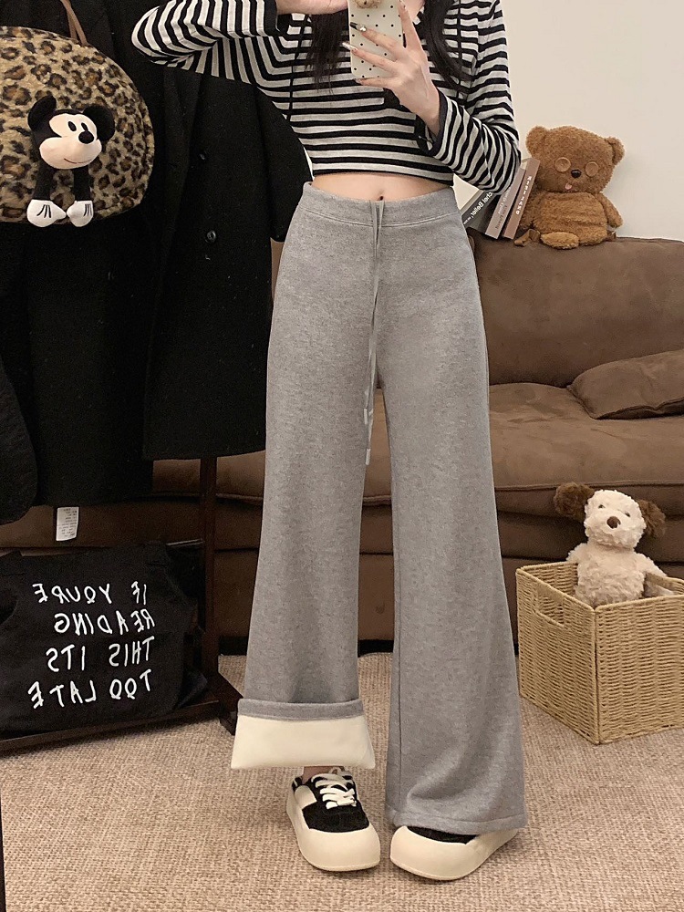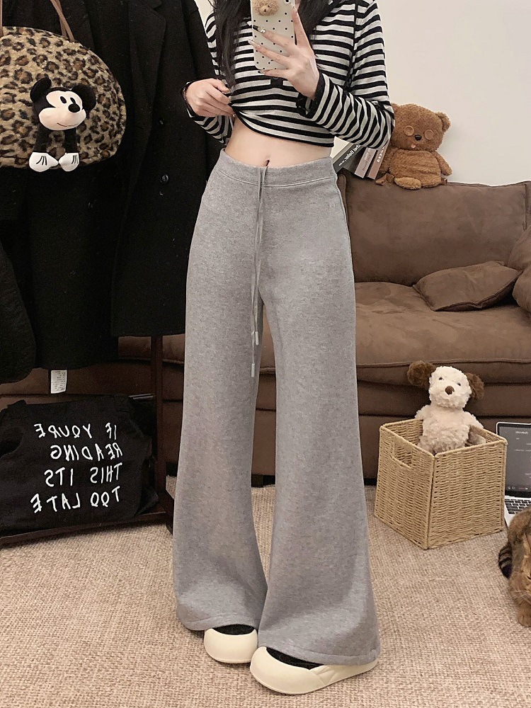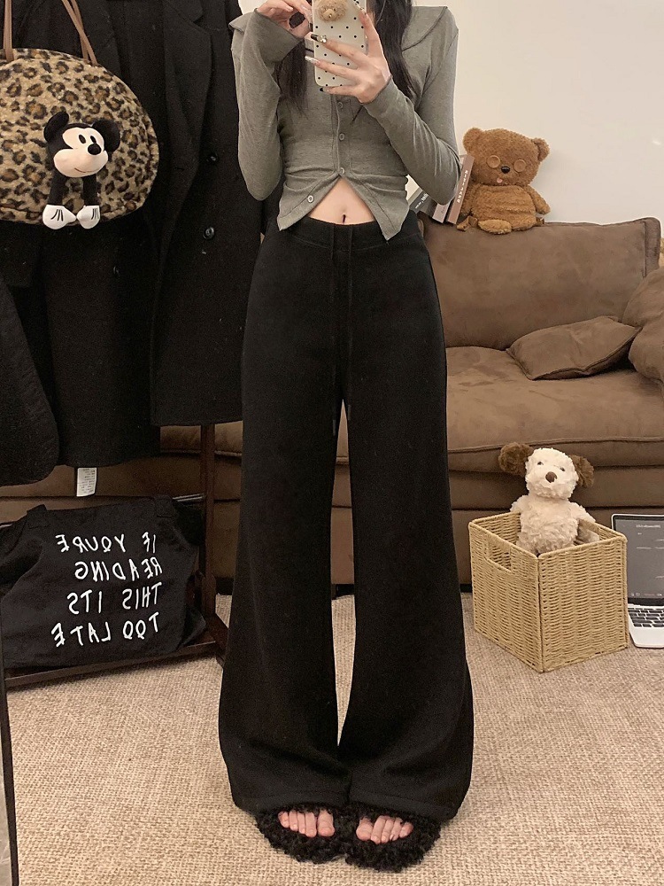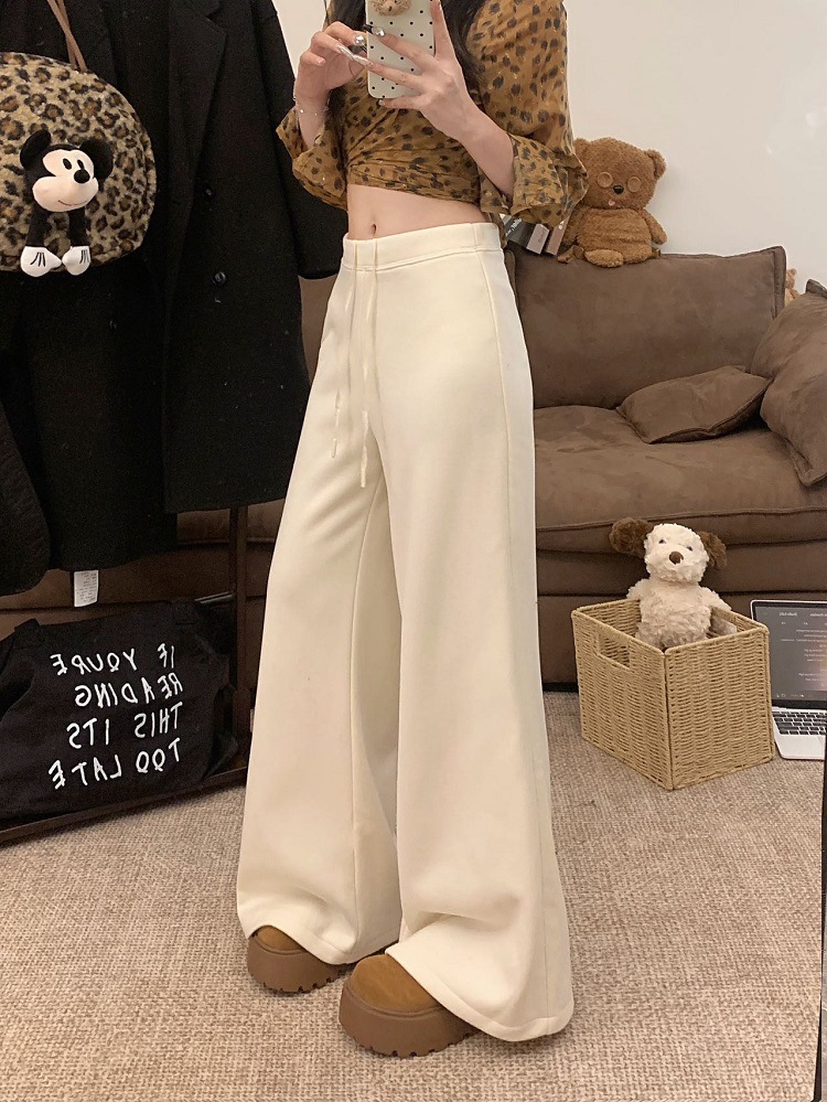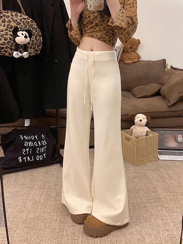 JMA-1042 实拍 慵懒风纯色羊绒显高微喇裤冬季松紧腰显瘦休闲阔腿裤拖地裤