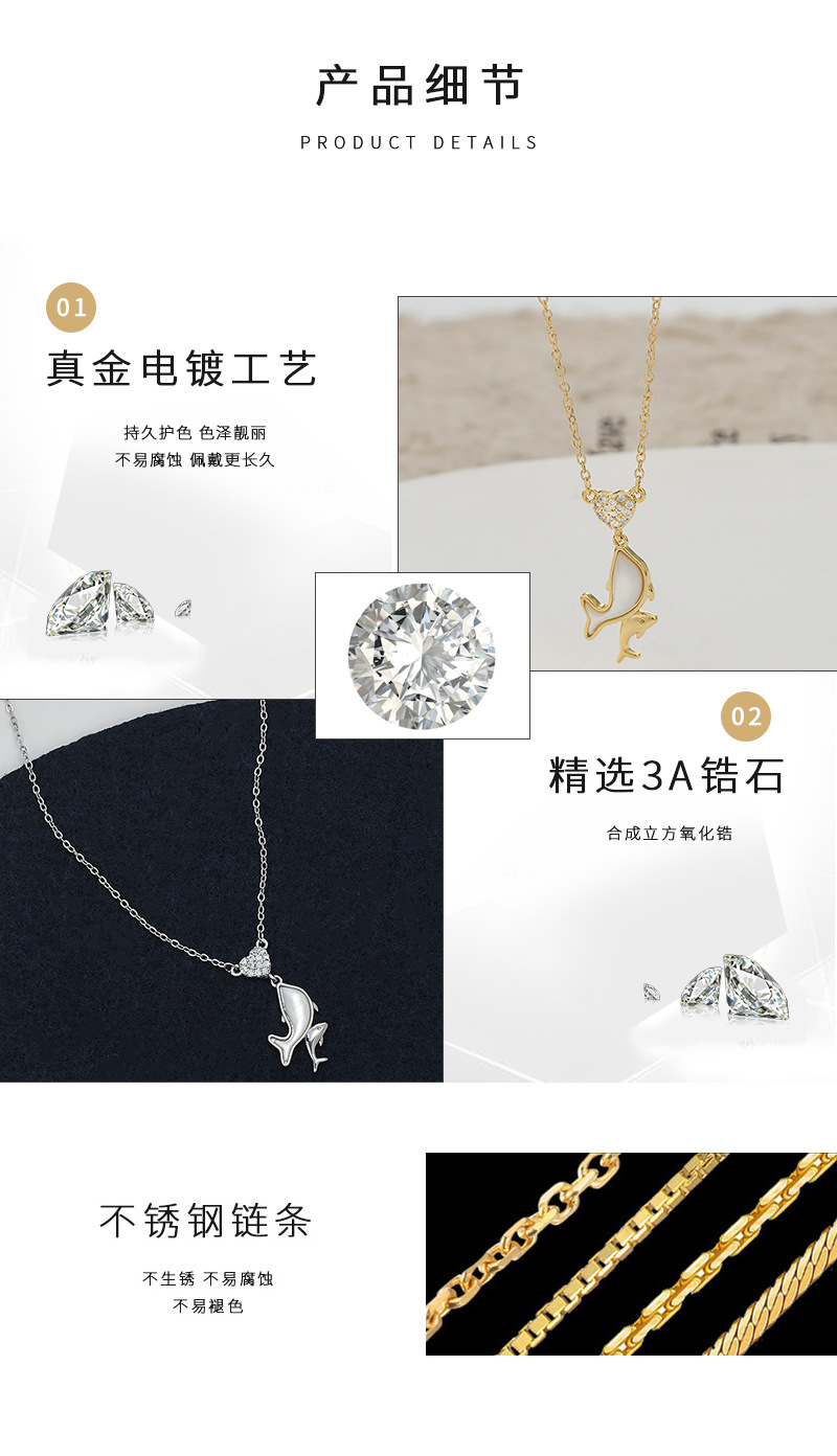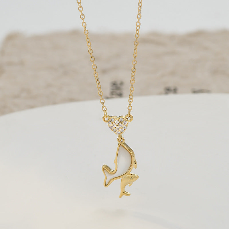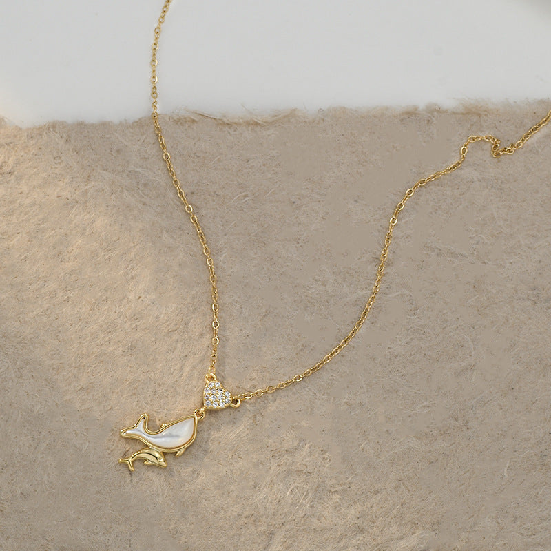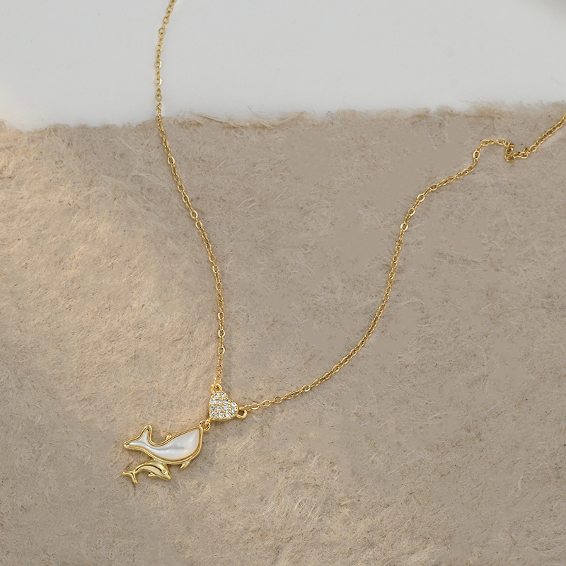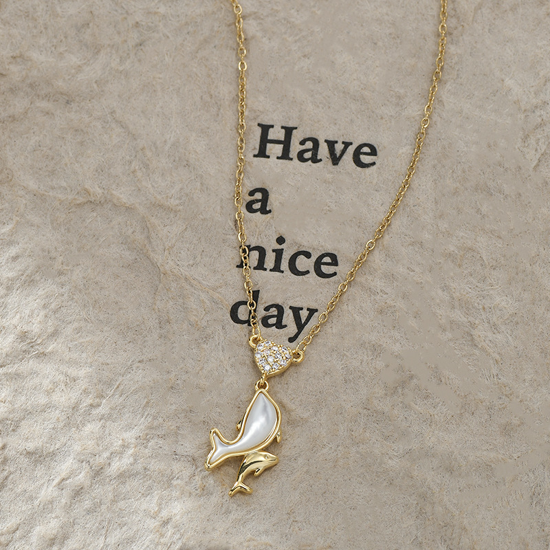 JME-1049 真金电镀镶锆石气质锁骨链女小众设计感天然贝母海豚吊坠项链批发