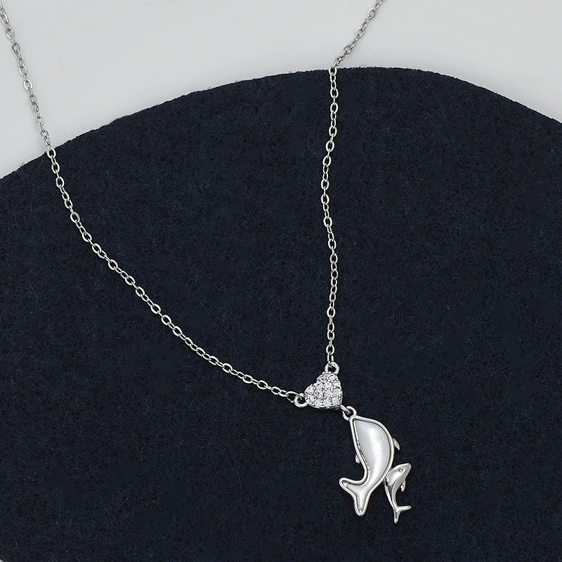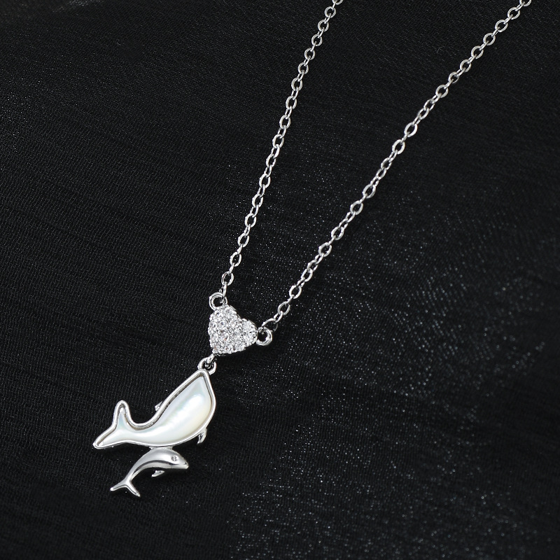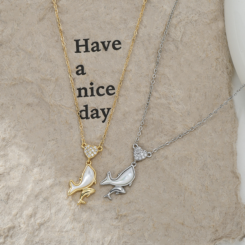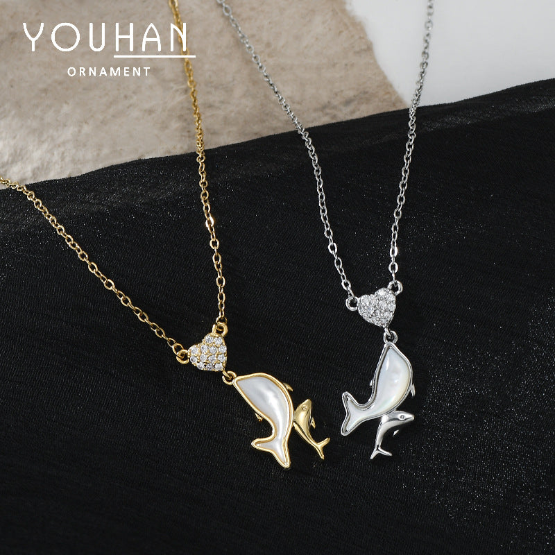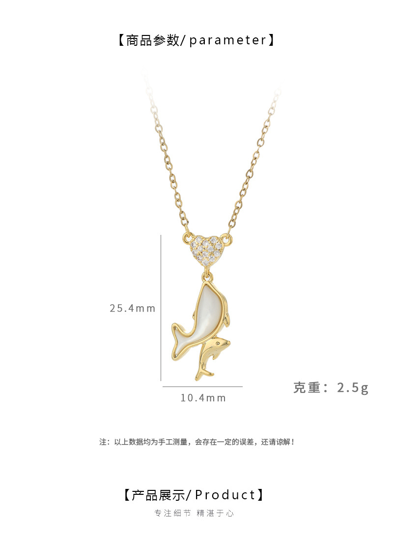 JME-1049 真金电镀镶锆石气质锁骨链女小众设计感天然贝母海豚吊坠项链批发