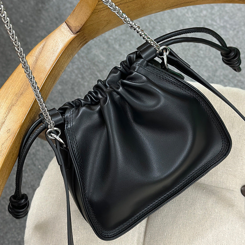 JM-1461 韩系时尚百搭链条包包女秋冬新款褶皱云朵水桶包质感斜挎包