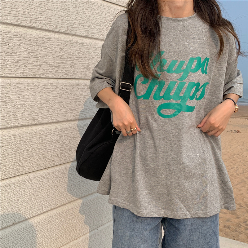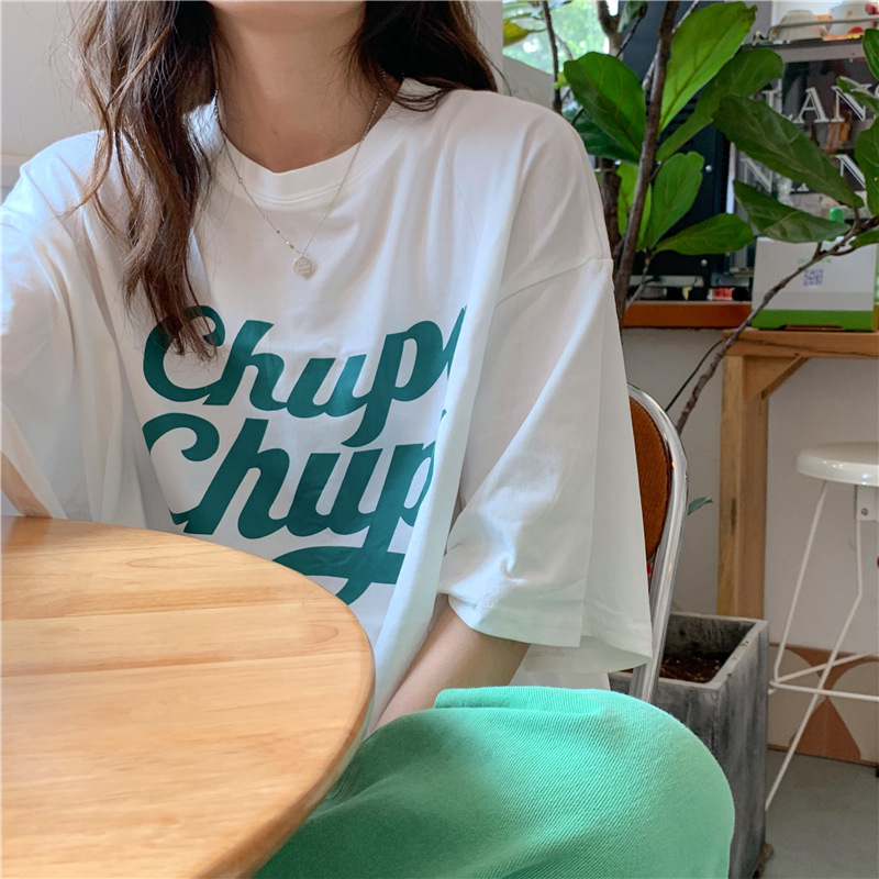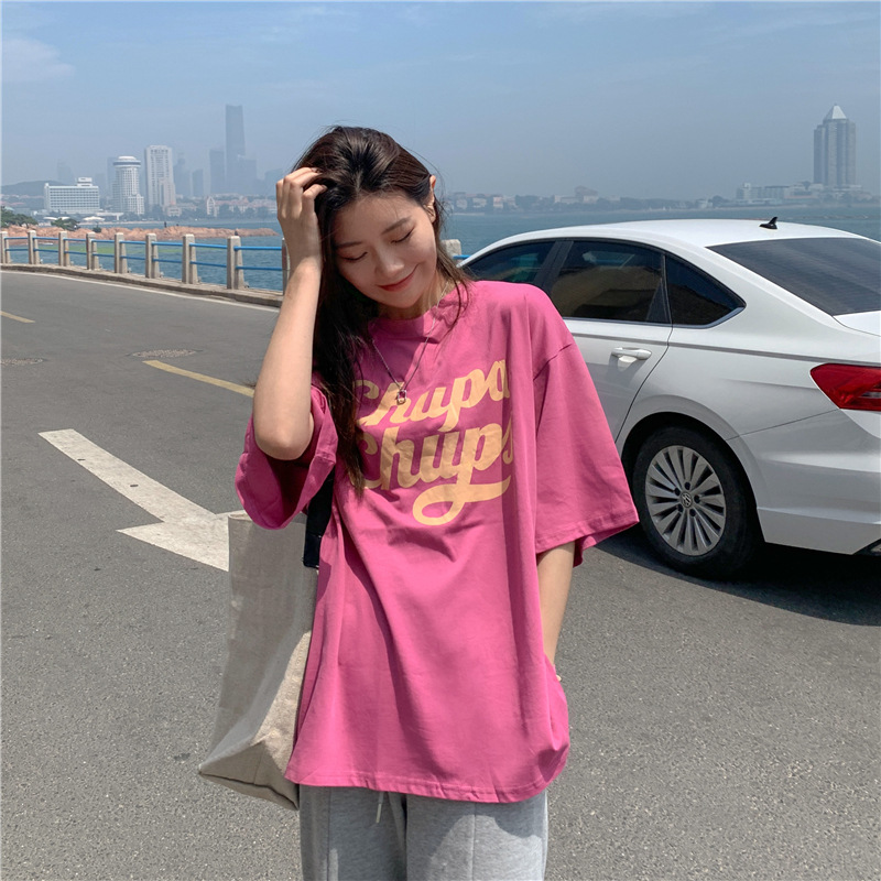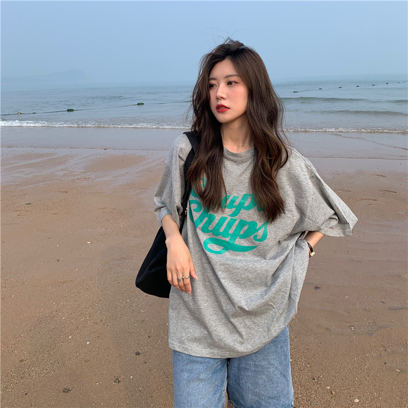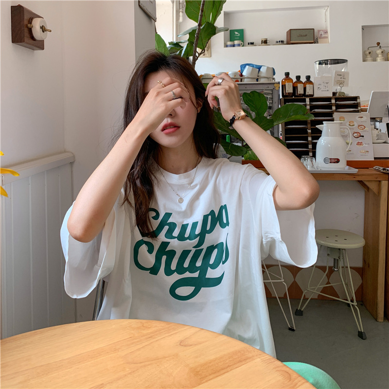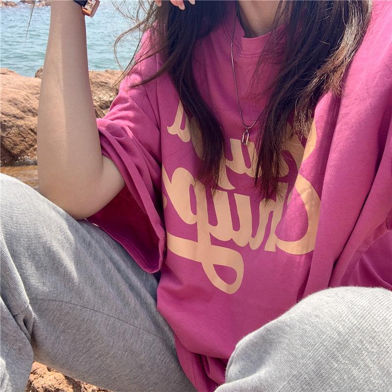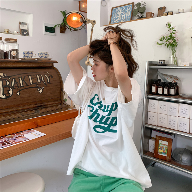 • 將圖片載入圖庫檢視器 CL-848 美式字母印花夏季寬鬆短袖T卹女學生大碼 上衣