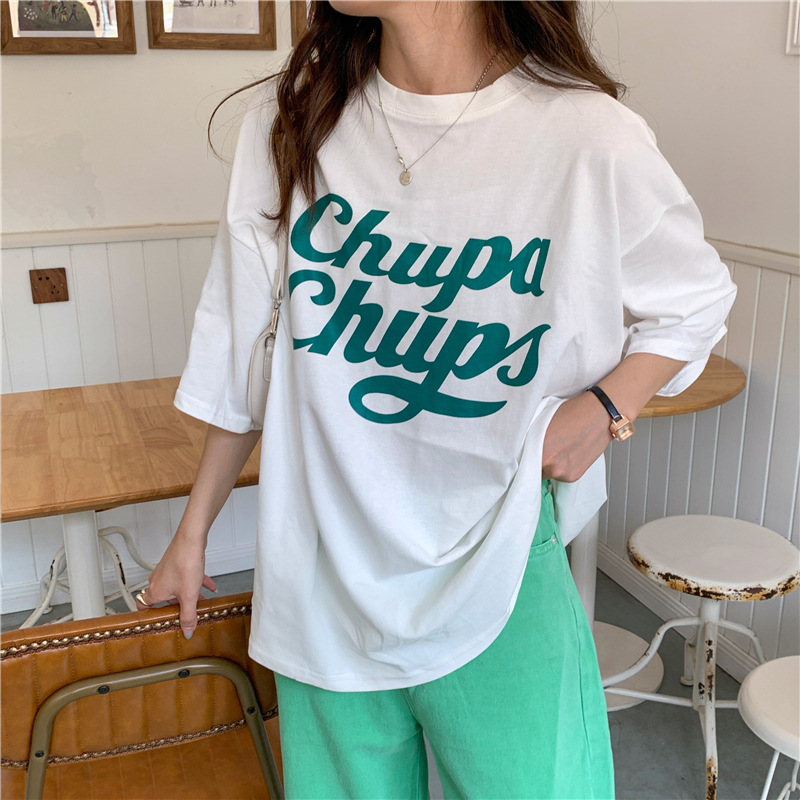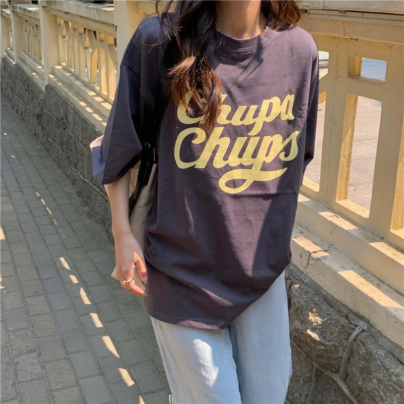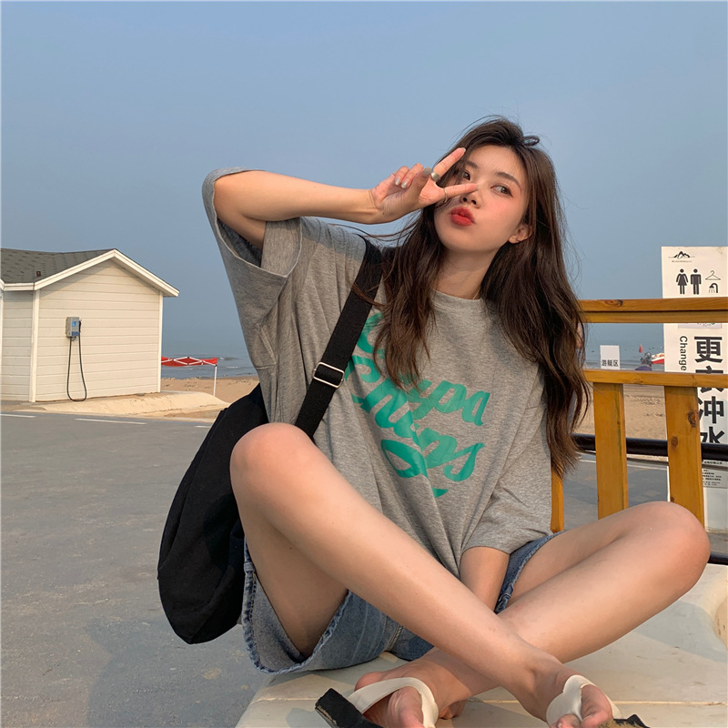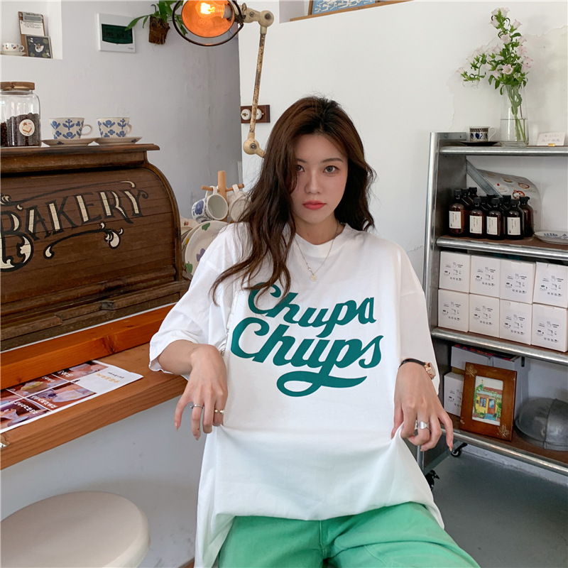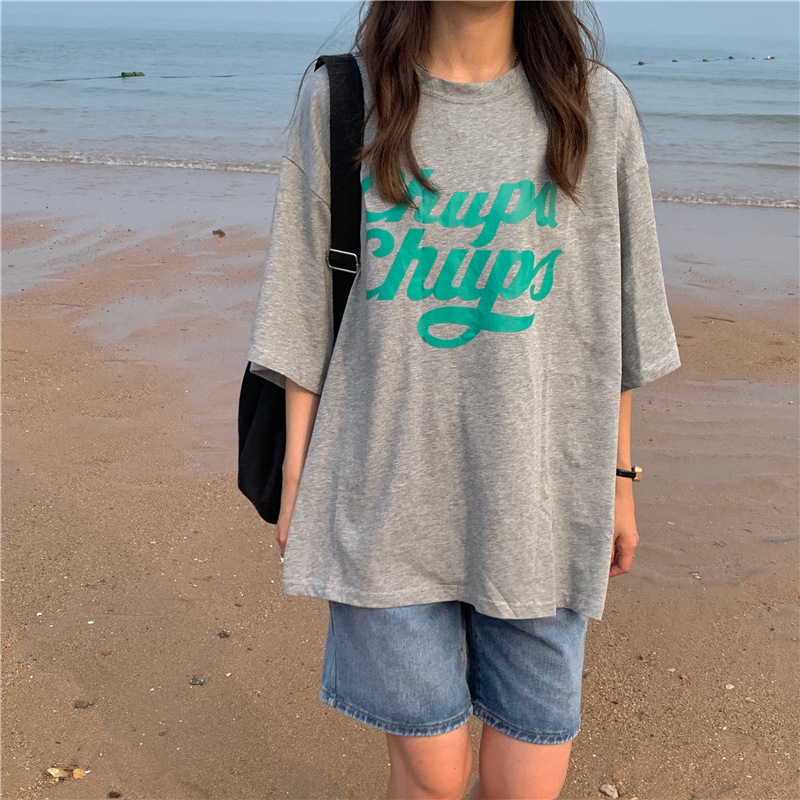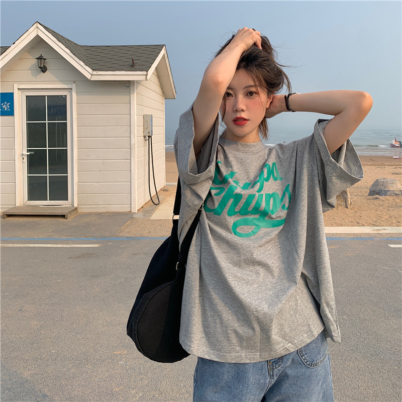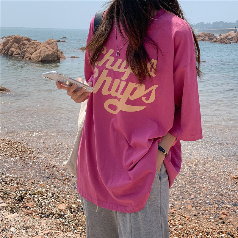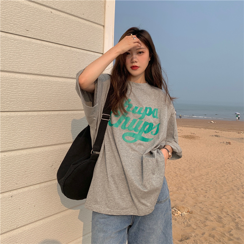 • 將圖片載入圖庫檢視器 CL-848 美式字母印花夏季寬鬆短袖T卹女學生大碼 上衣