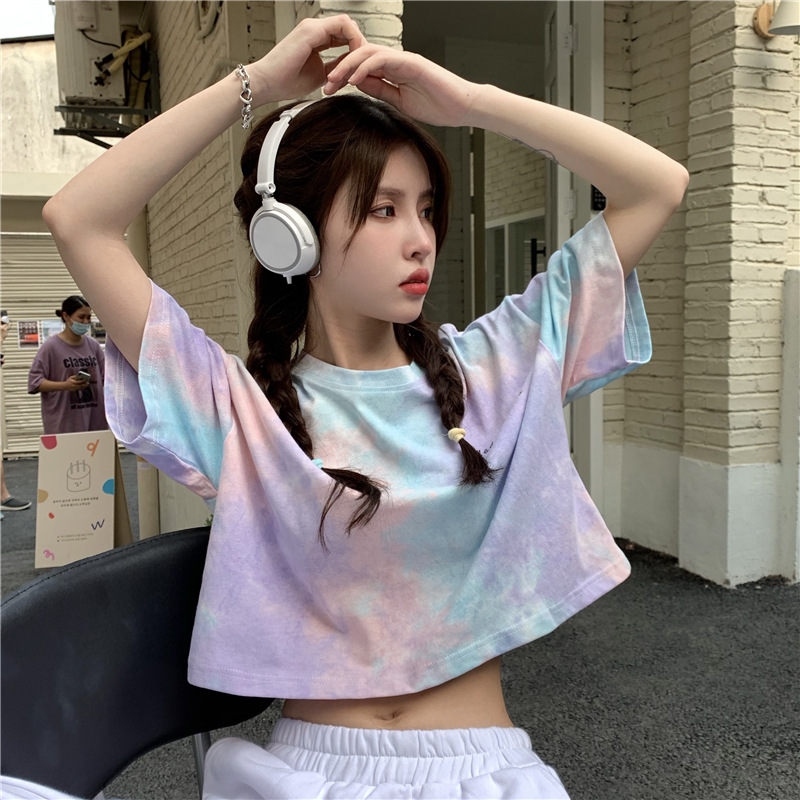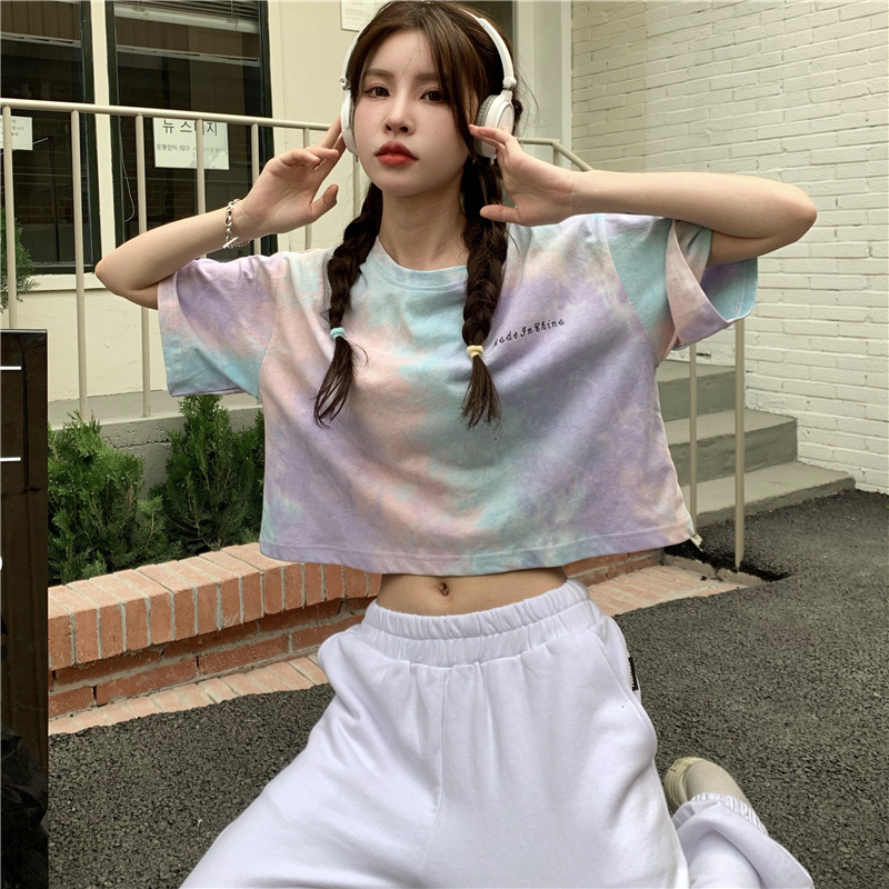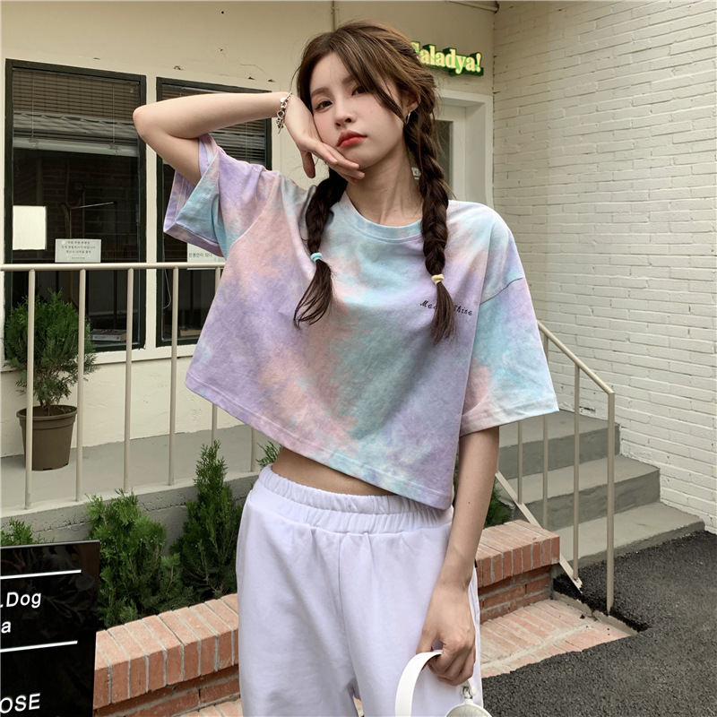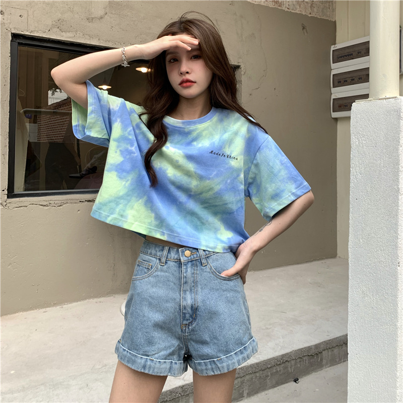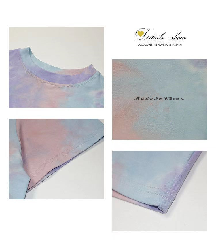 GW-K06 女韓版學生慵懶風夏季短袖T寬鬆撞色個性港味紮染 上衣