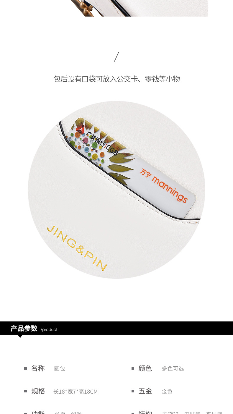 JM-058 新款潮夏季時尚圓形女包鏈條包單肩斜挎包 女包