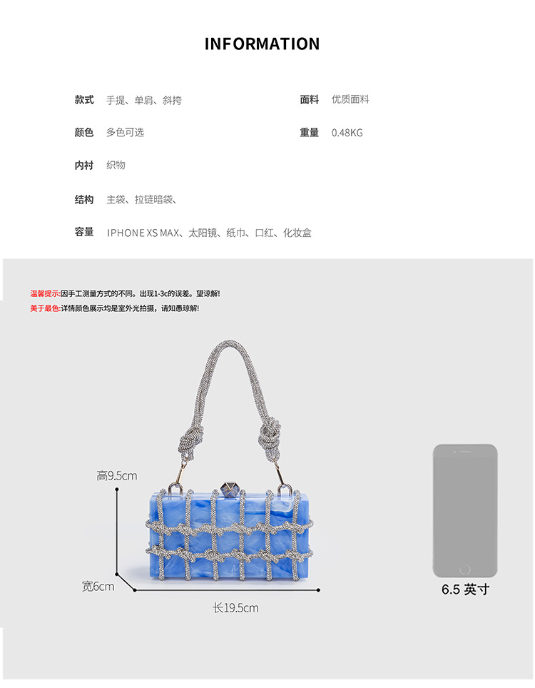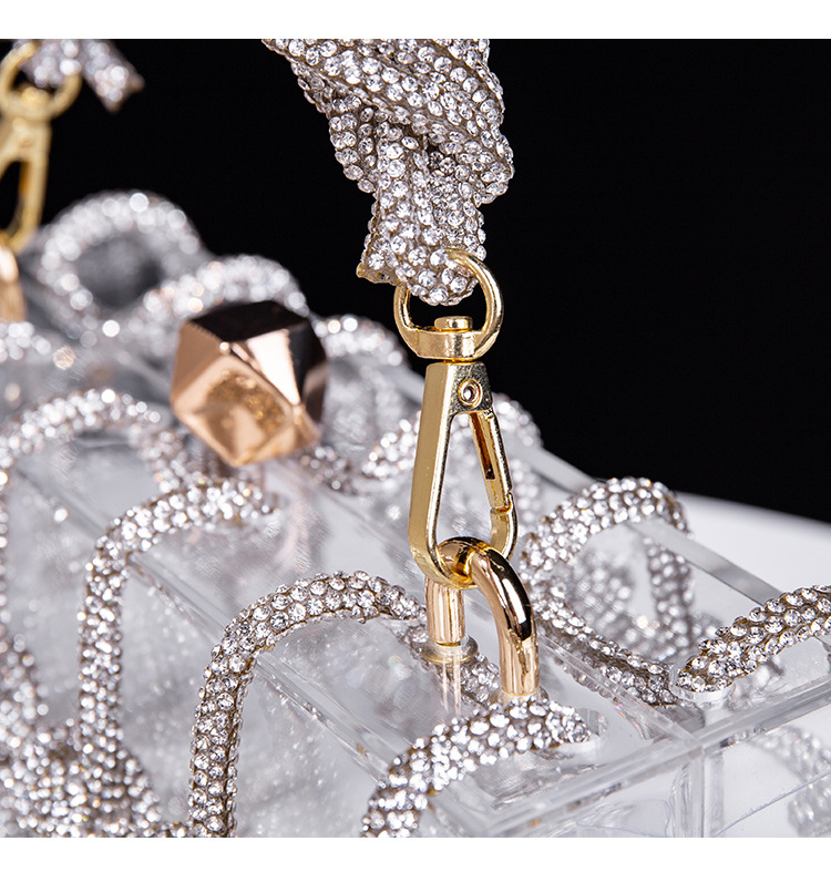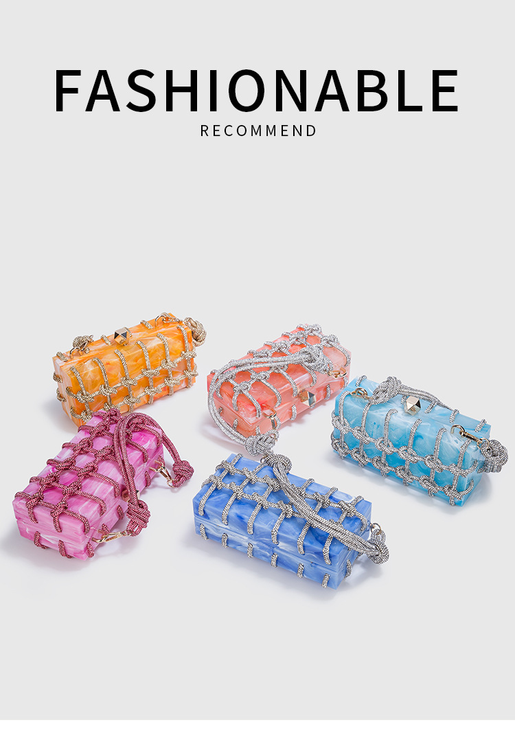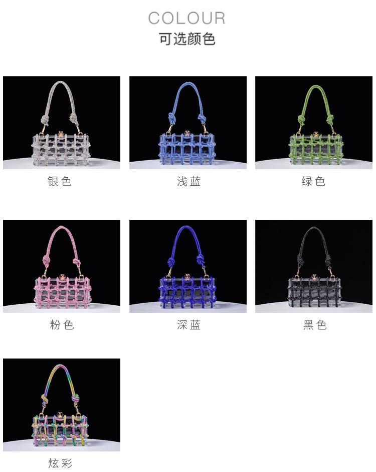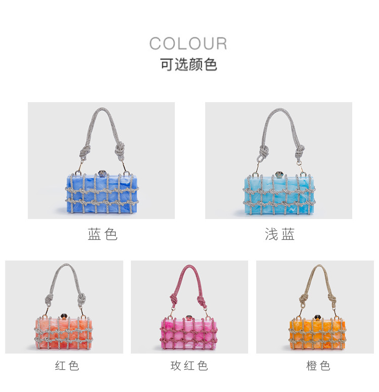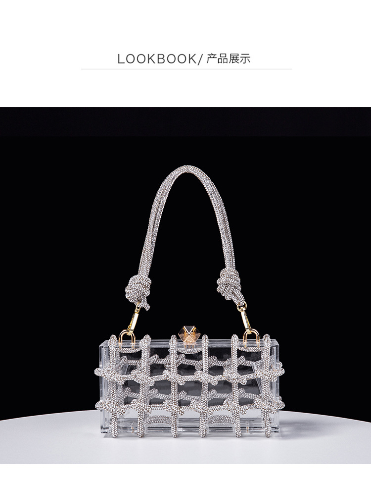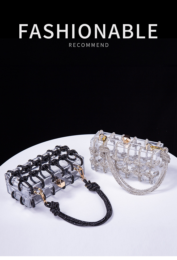 JM-1032 亚力克透明收纳盒宴会手工编织绳子小方腋下手提包包