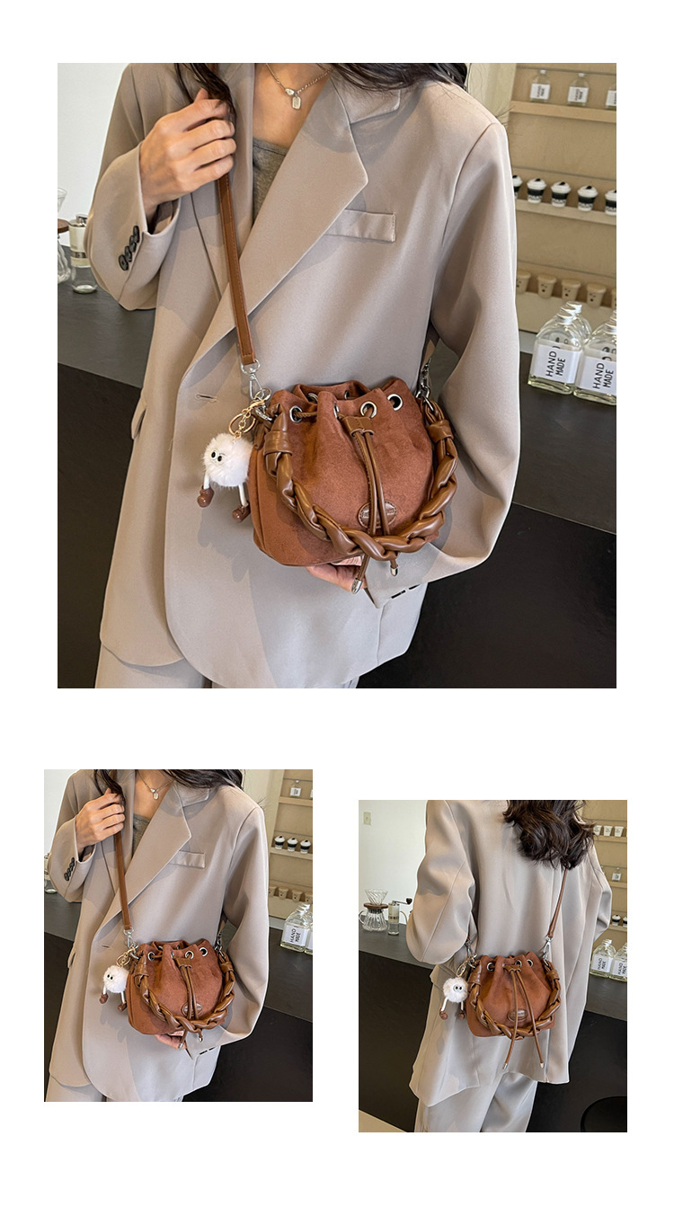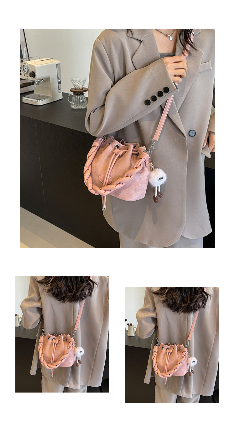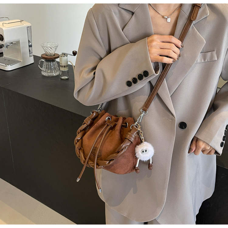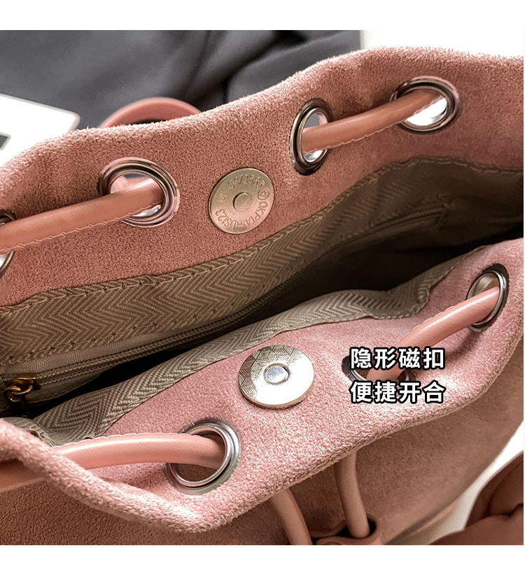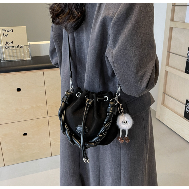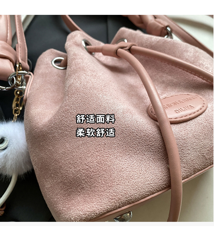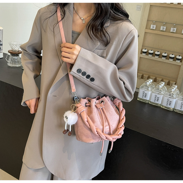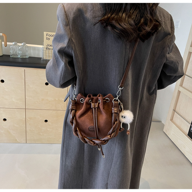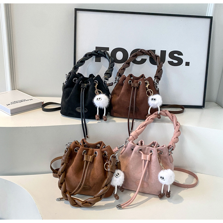 JM-1083 包包女斜挎包2024新款秋冬款磨砂复古小众设计女士单肩手提水桶包