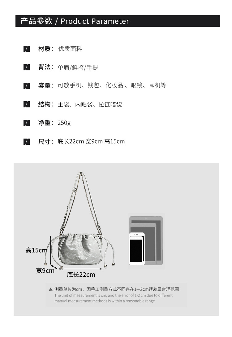 JM-1210 中式褶皱链条云朵包小众通勤腋下包夏天百搭斜挎包包女