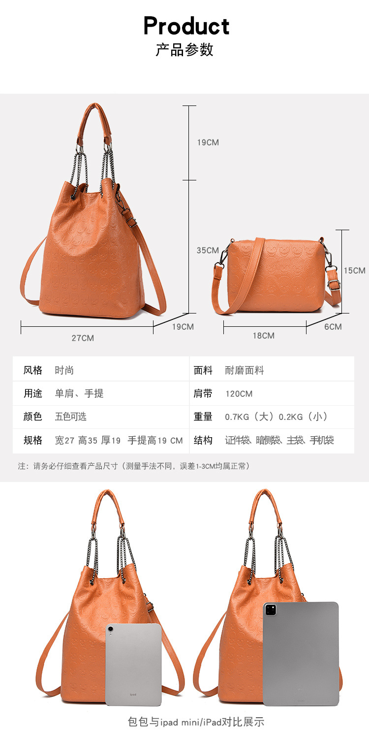 JM-1217新款托特子母包女士大包容量纯色手提单肩包手提大包