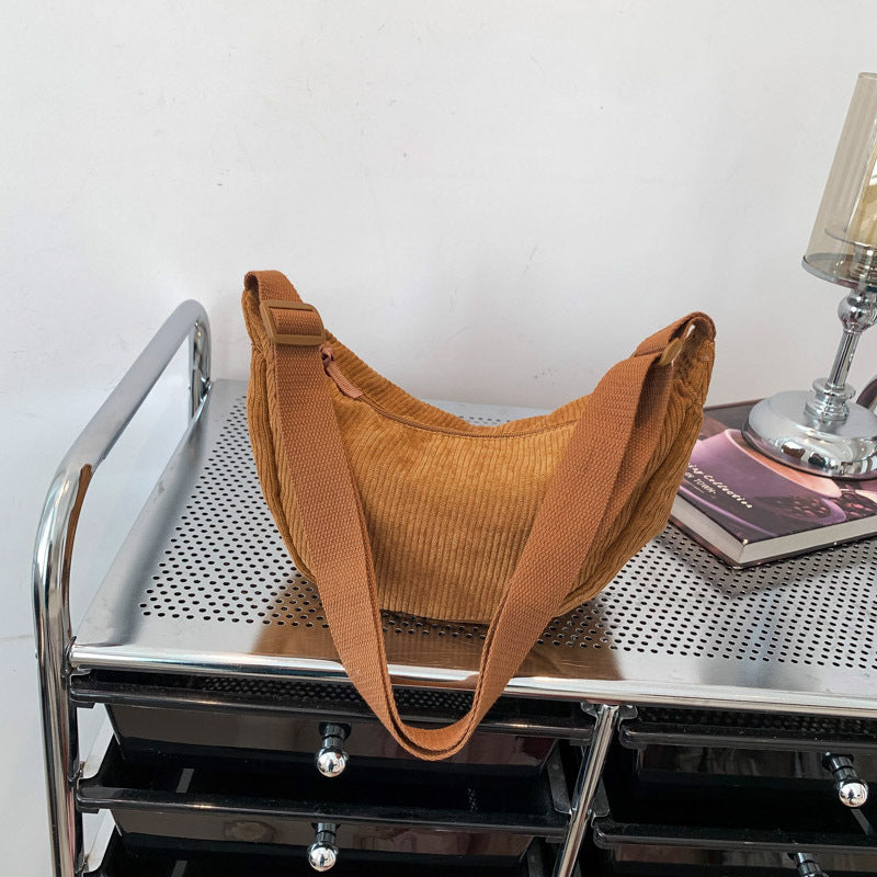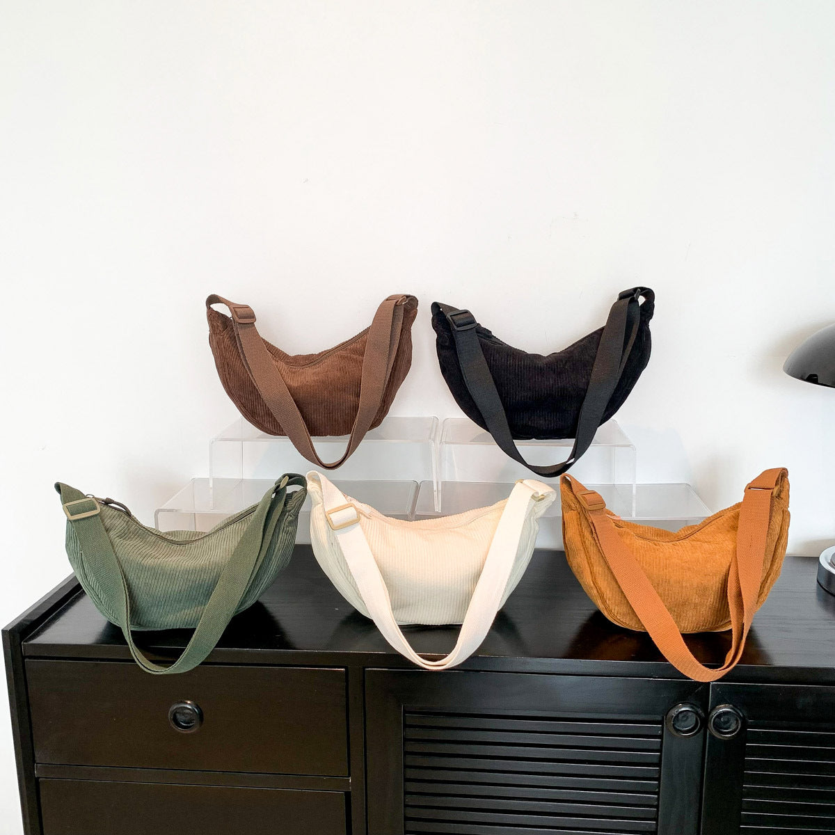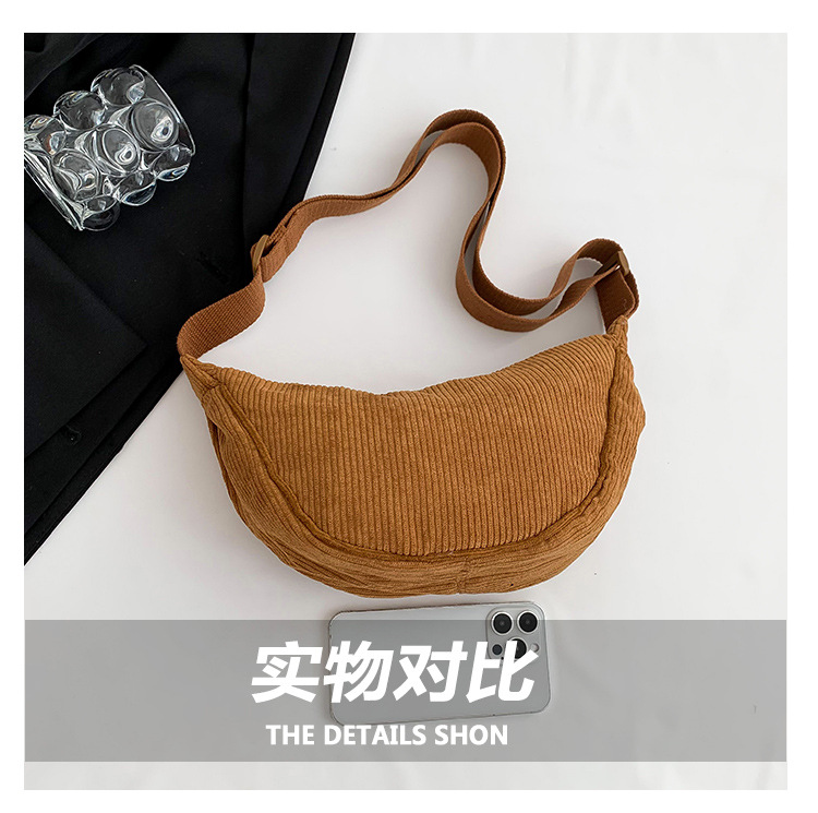 JM-1220 春秋新款U家男女装灯芯绒挎包饺子包防水单肩包时尚轻便包包