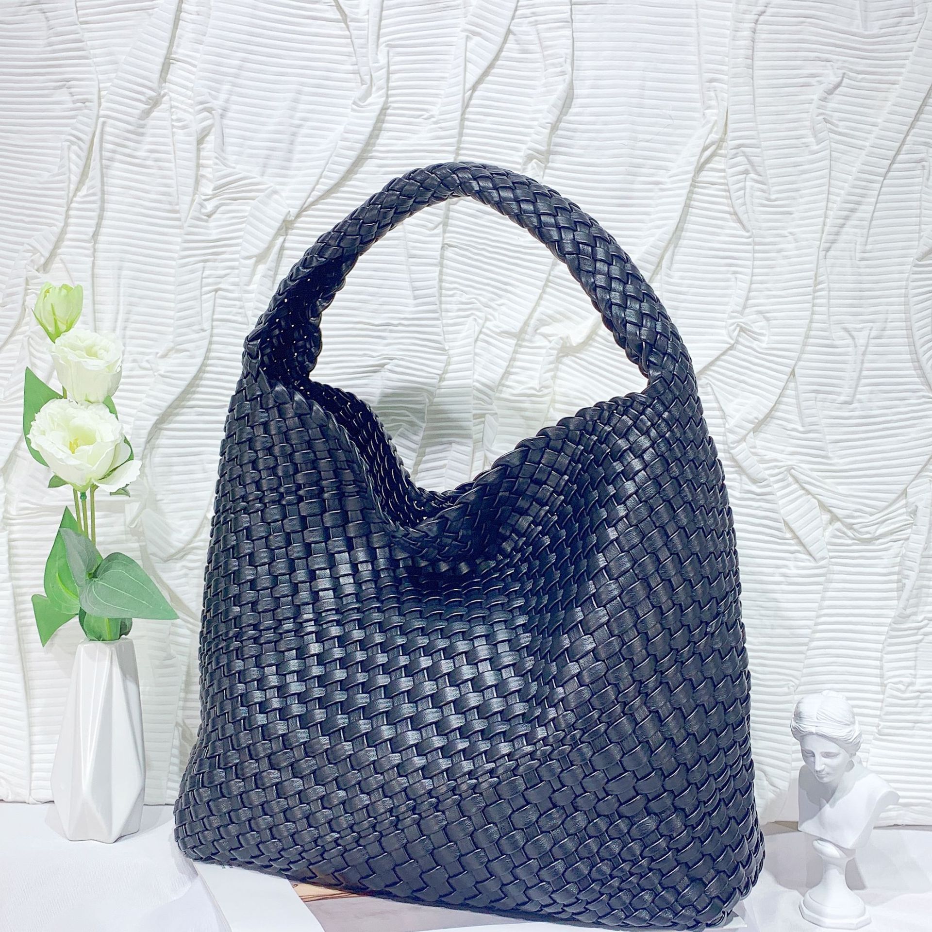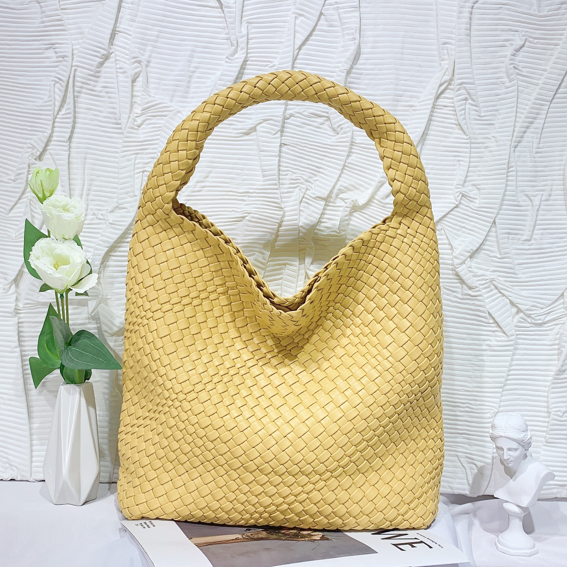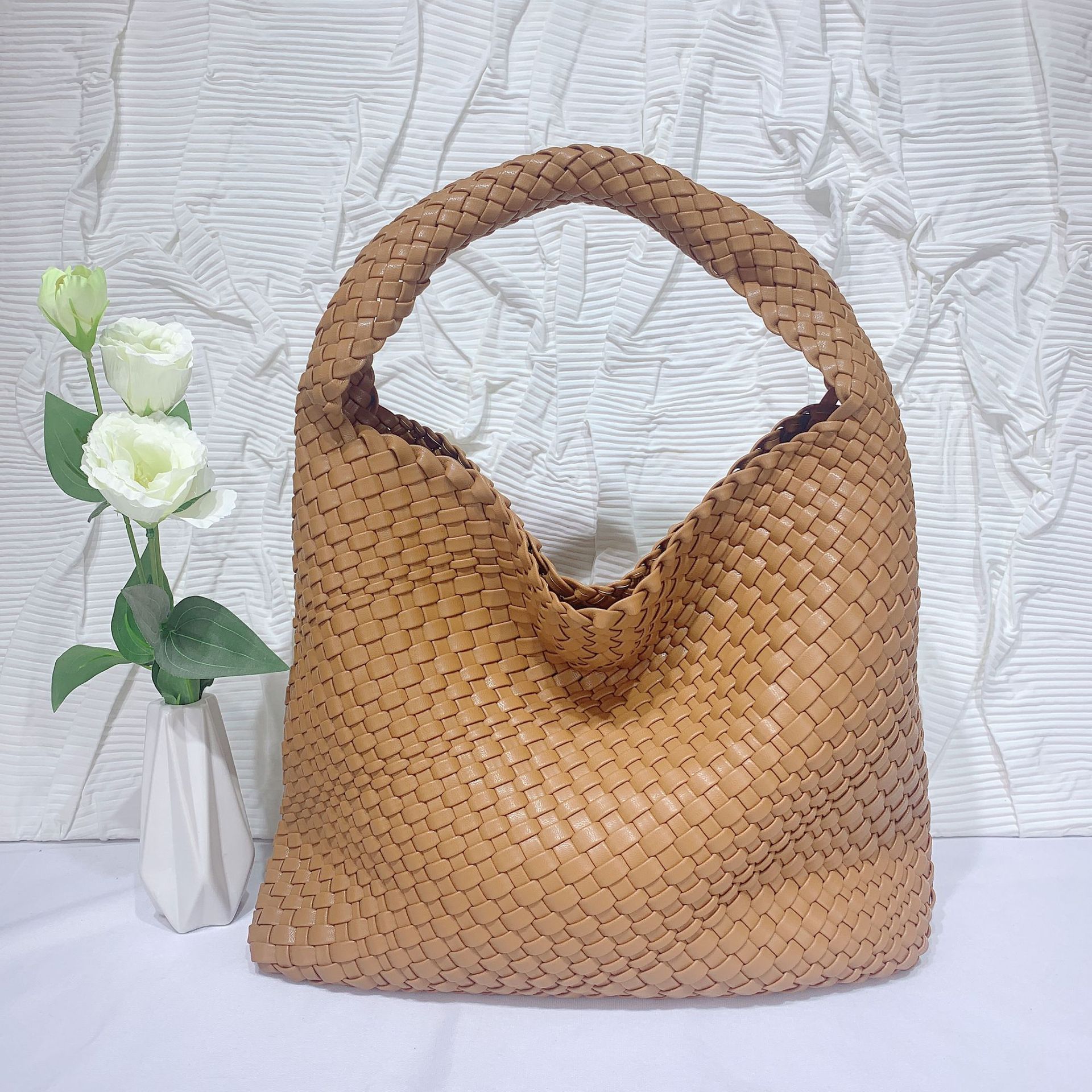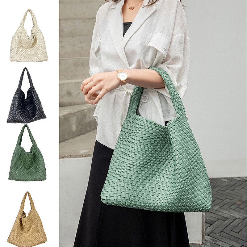 JM-1224 软皮编织单肩大包超大容量子母水桶包慵懒风托特包购物旅行手提包