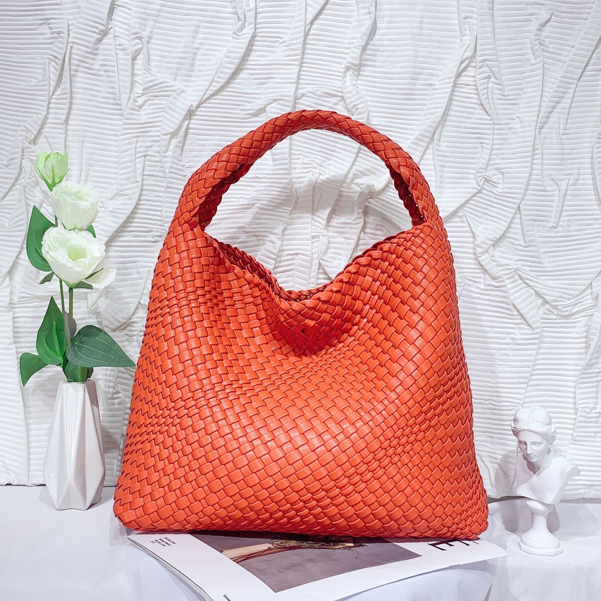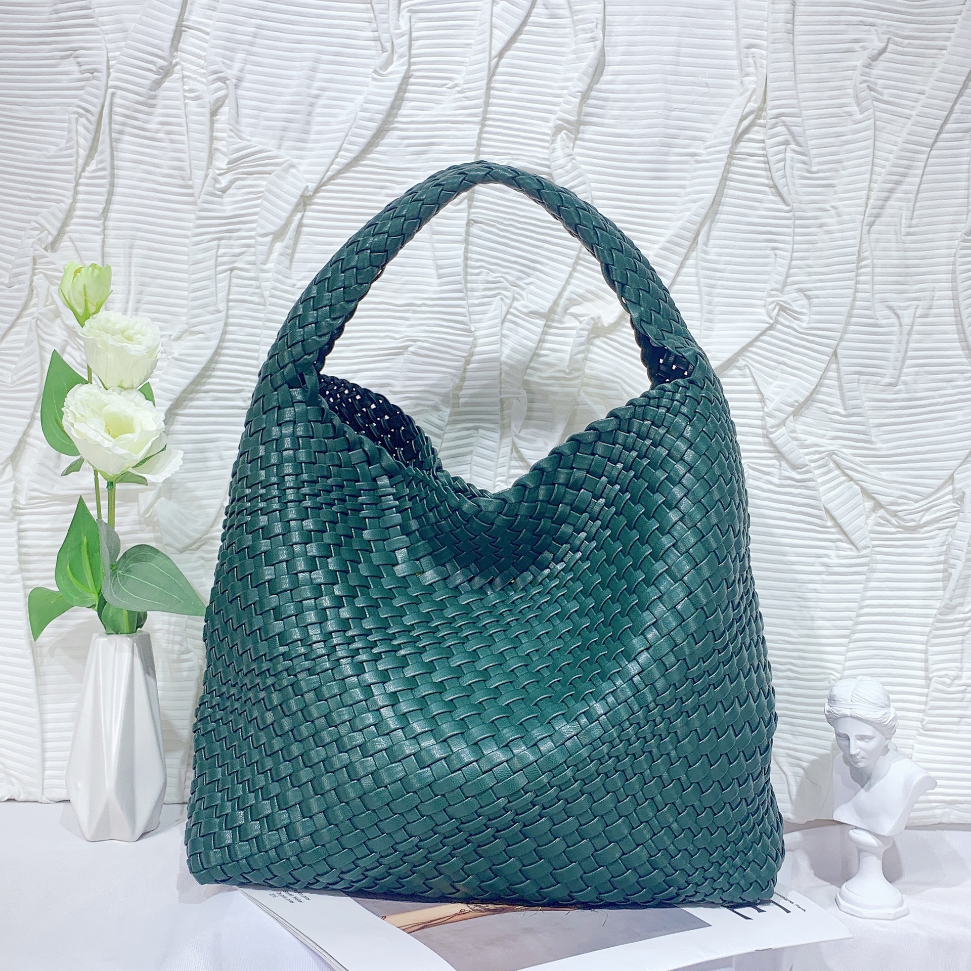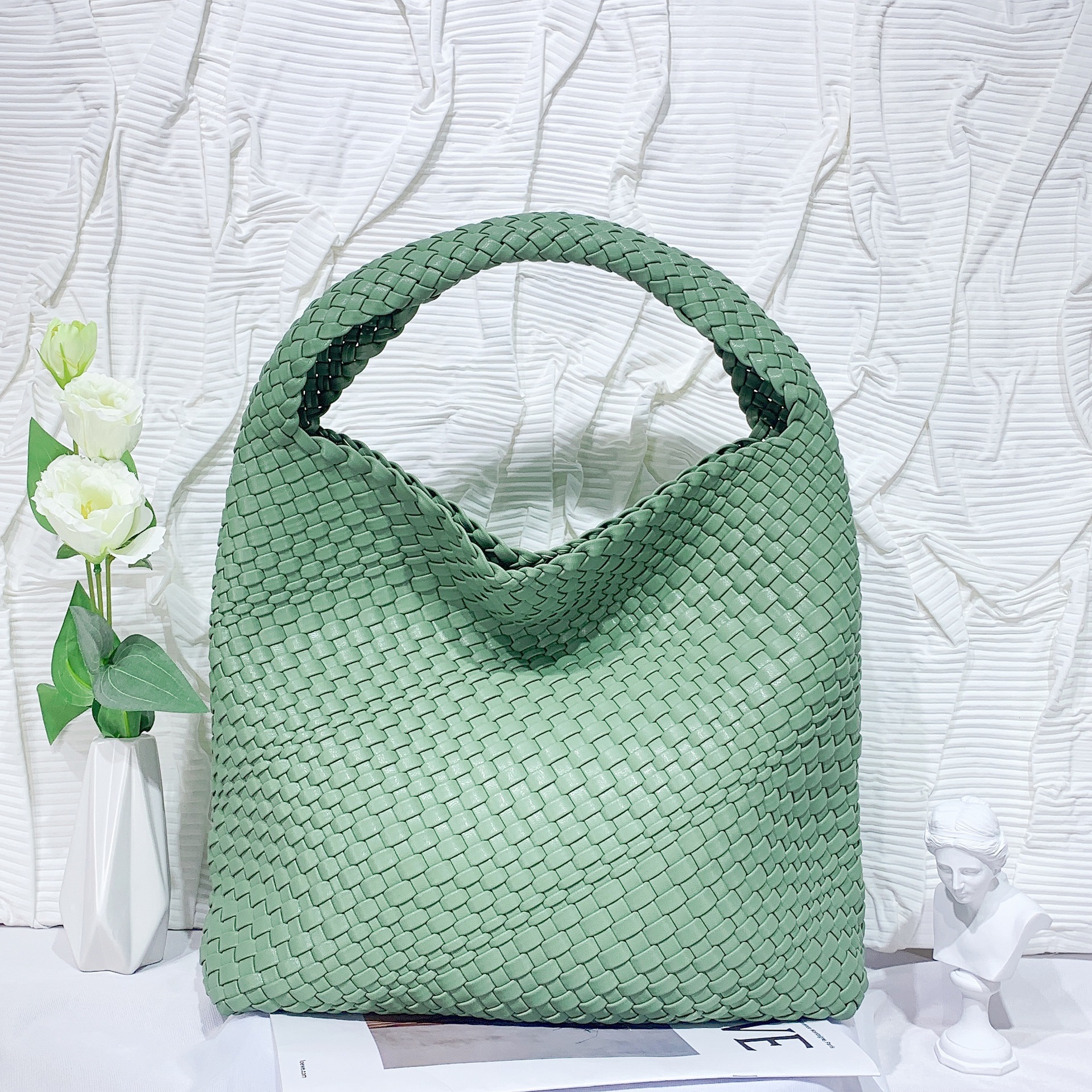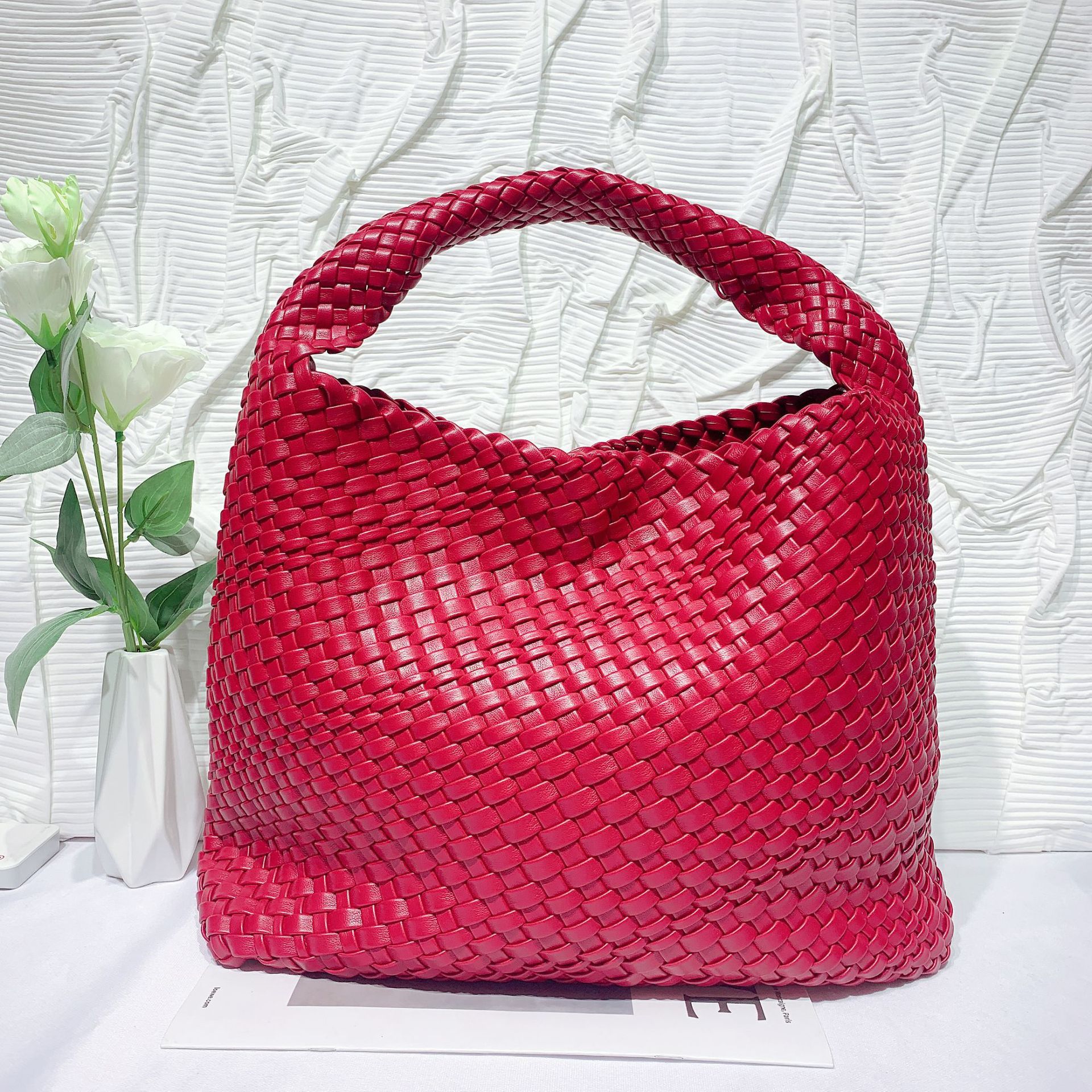 JM-1224 软皮编织单肩大包超大容量子母水桶包慵懒风托特包购物旅行手提包