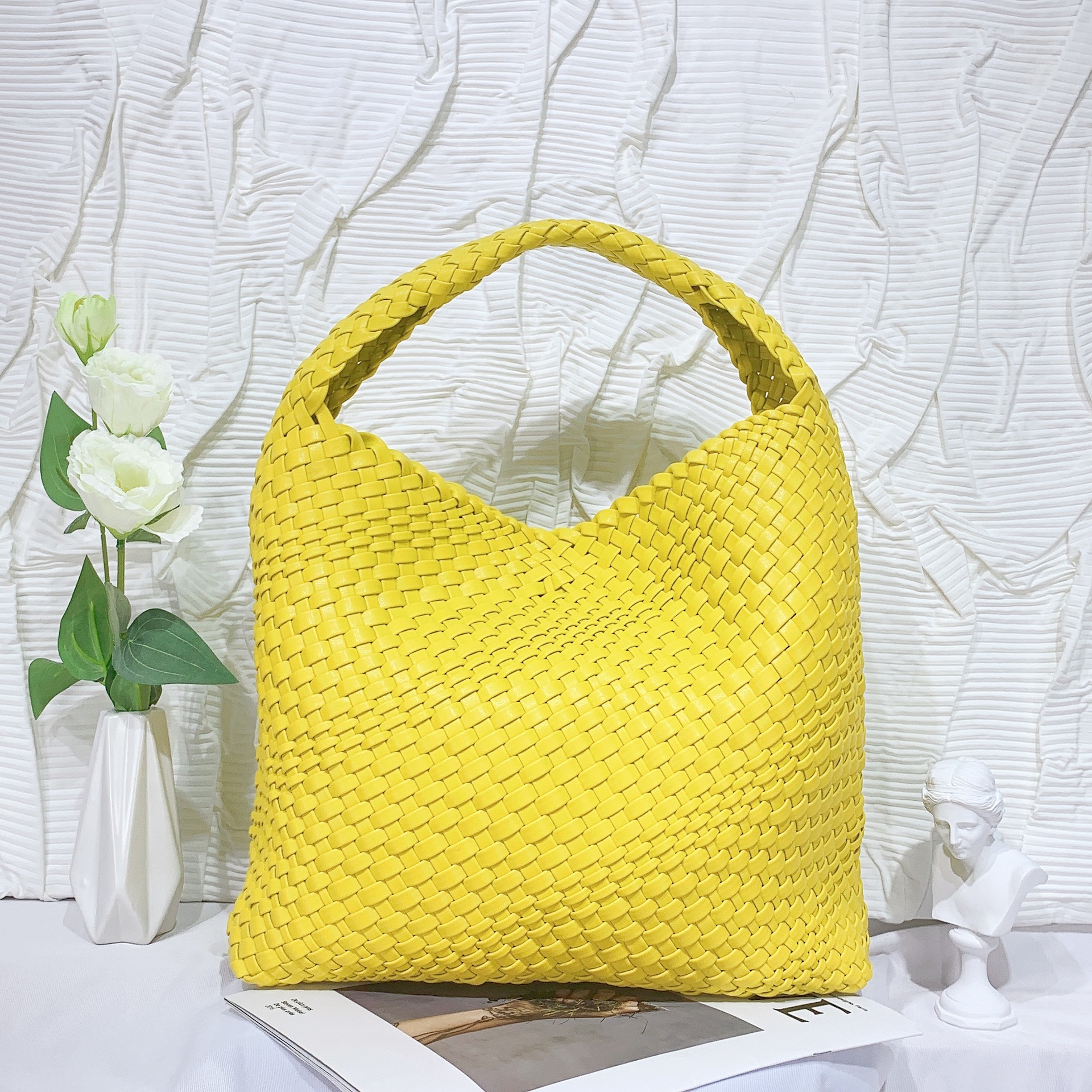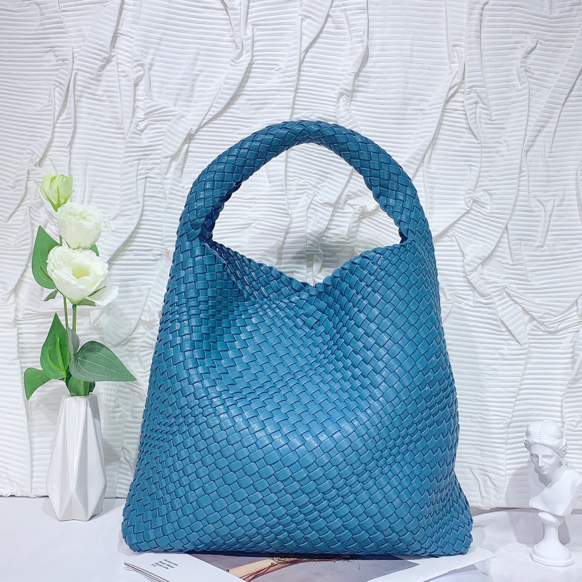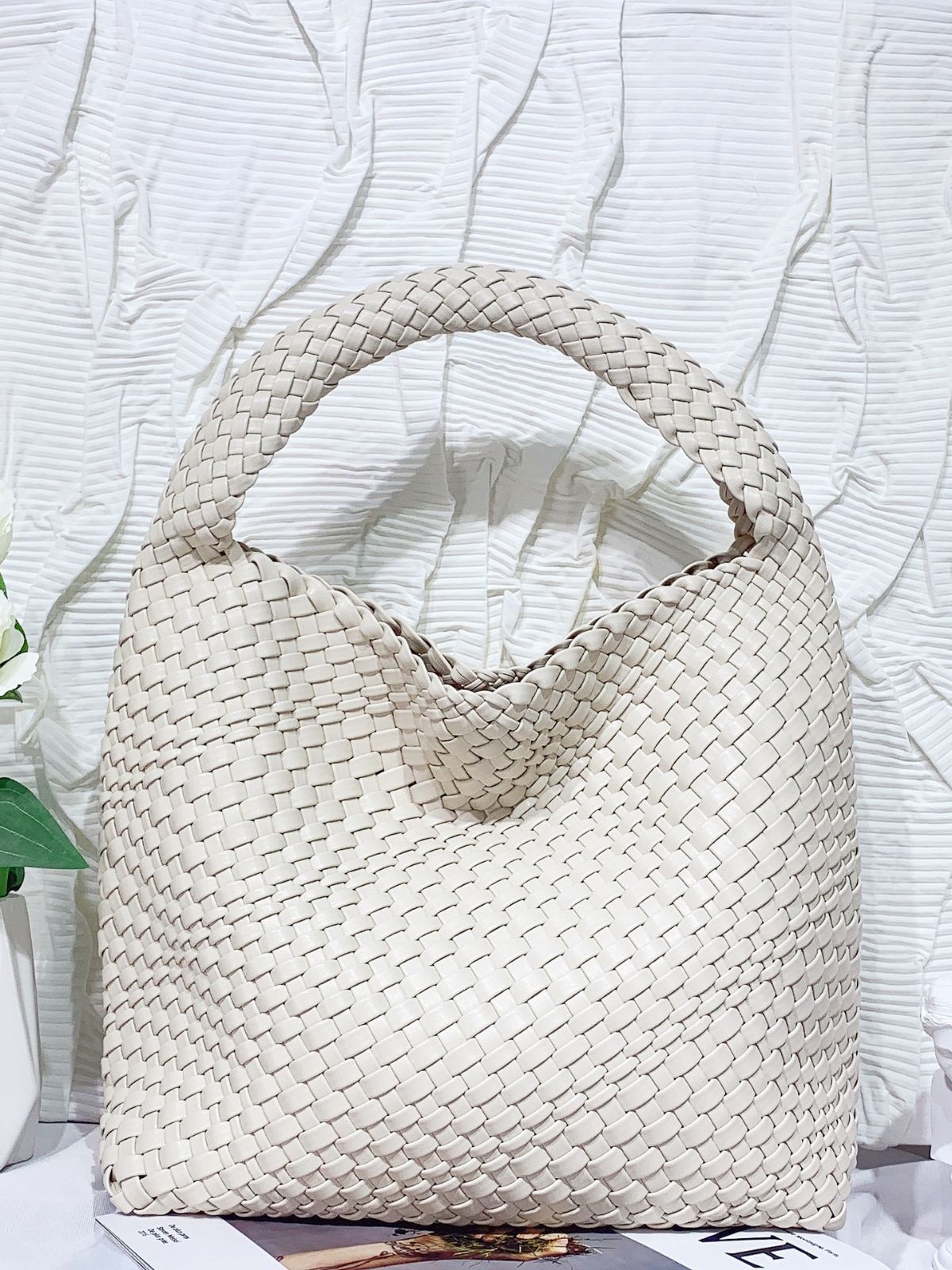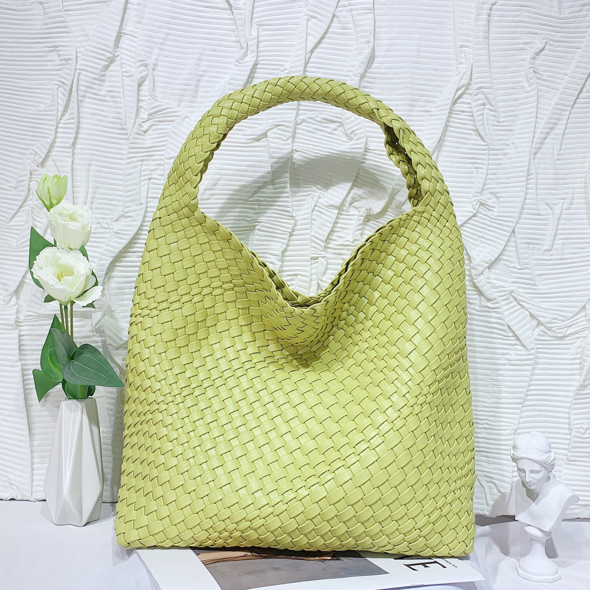JM-1224 软皮编织单肩大包超大容量子母水桶包慵懒风托特包购物旅行手提包