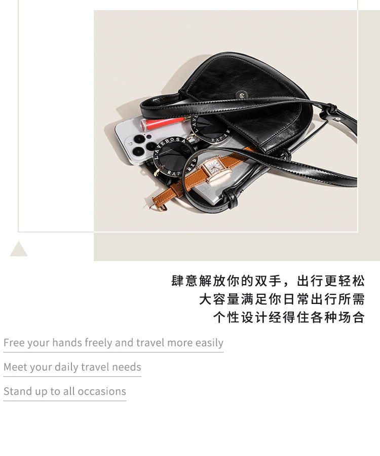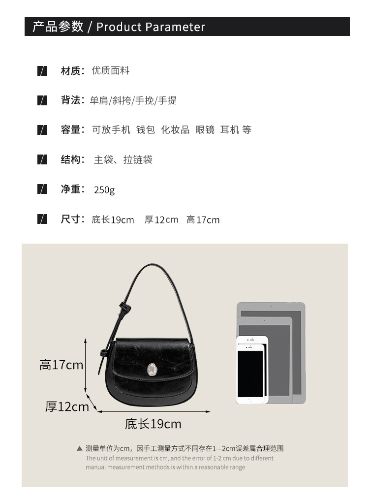 JM-1227 新款韩版爆裂纹复古女包气质百搭单肩腋下包潮流设计半圆马鞍包
