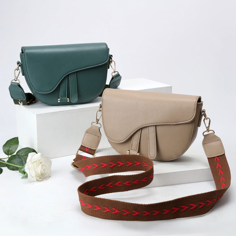 JM-172 復古斜挎包半圓馬鞍包寬帶單肩小包 女包