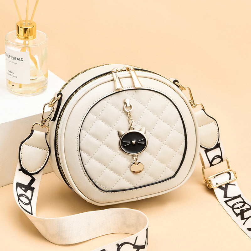 JM-220 新款ins網紅洋氣單肩寬帶菱格斜挎小圓包 女包