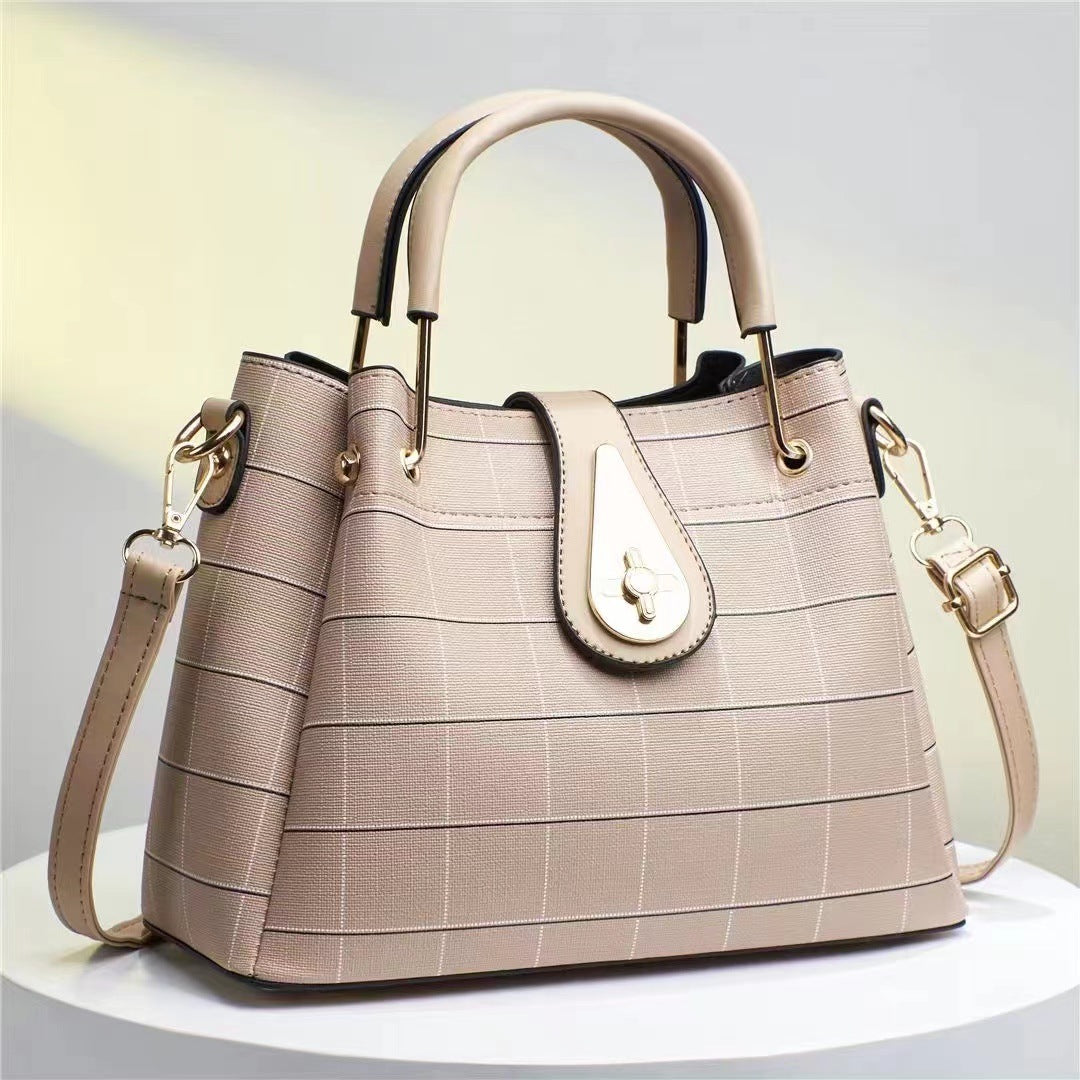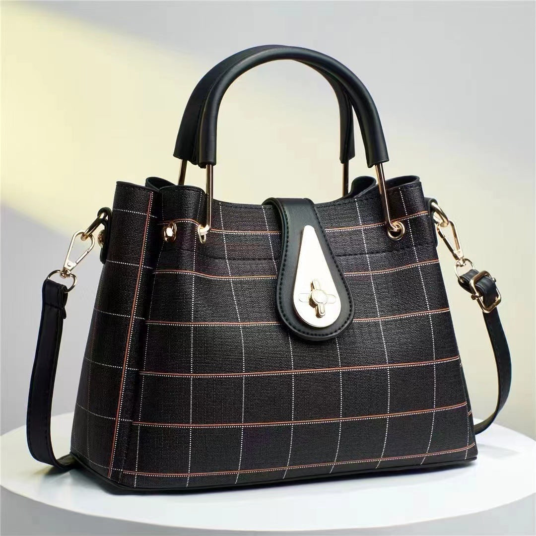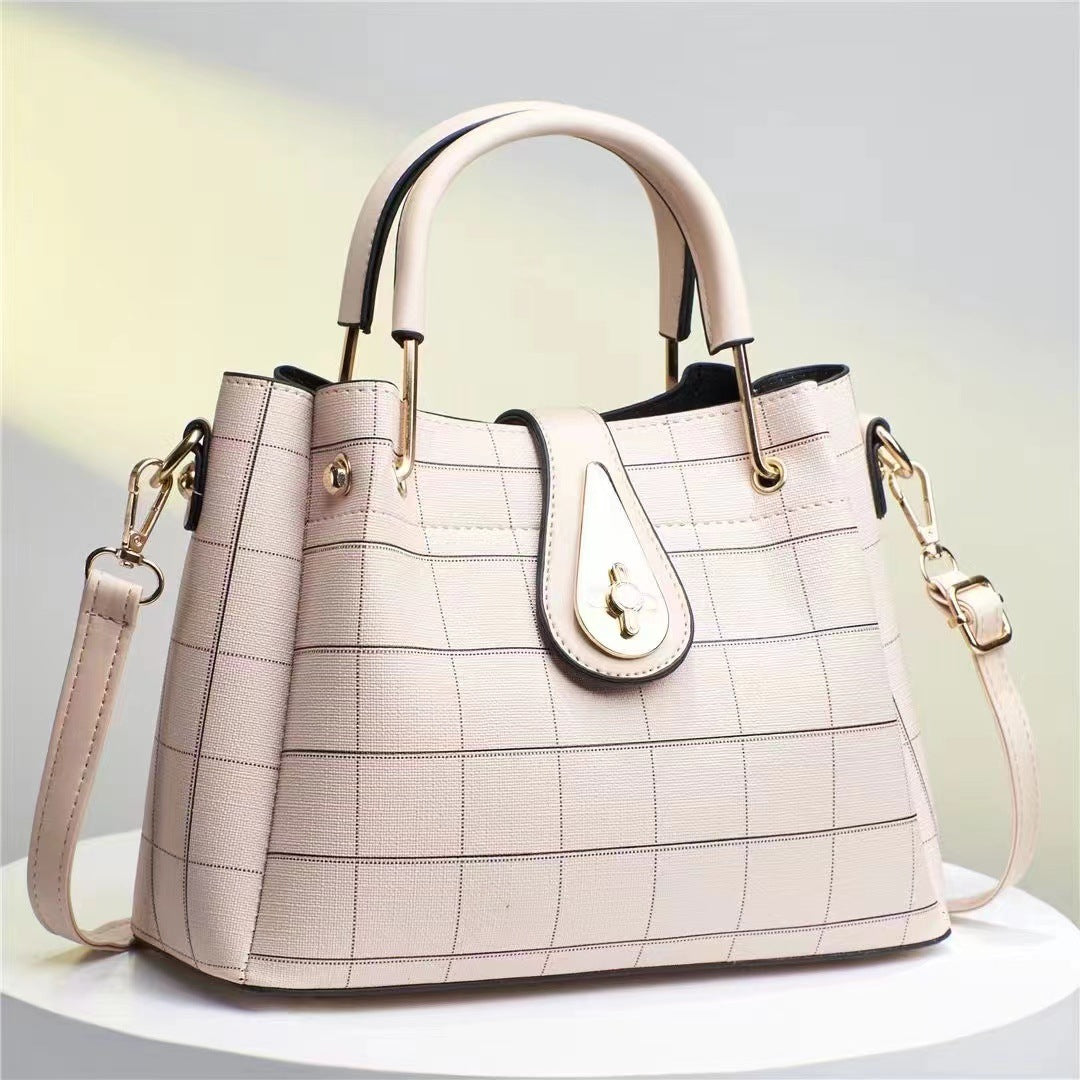 JM-255 新款高質量時尚大容量拼接定型單肩包格子手提包 女包