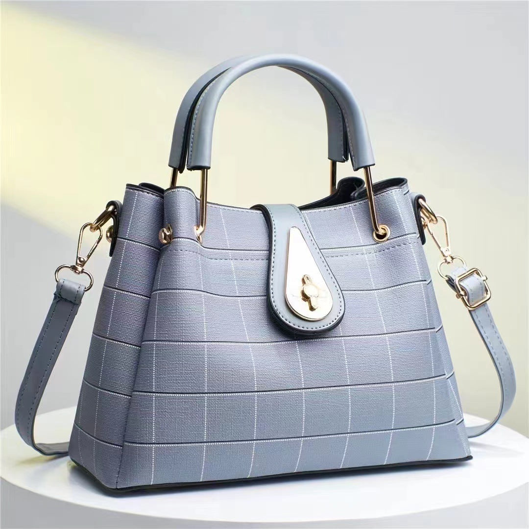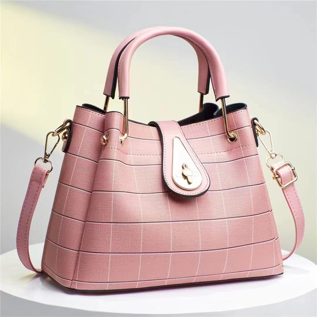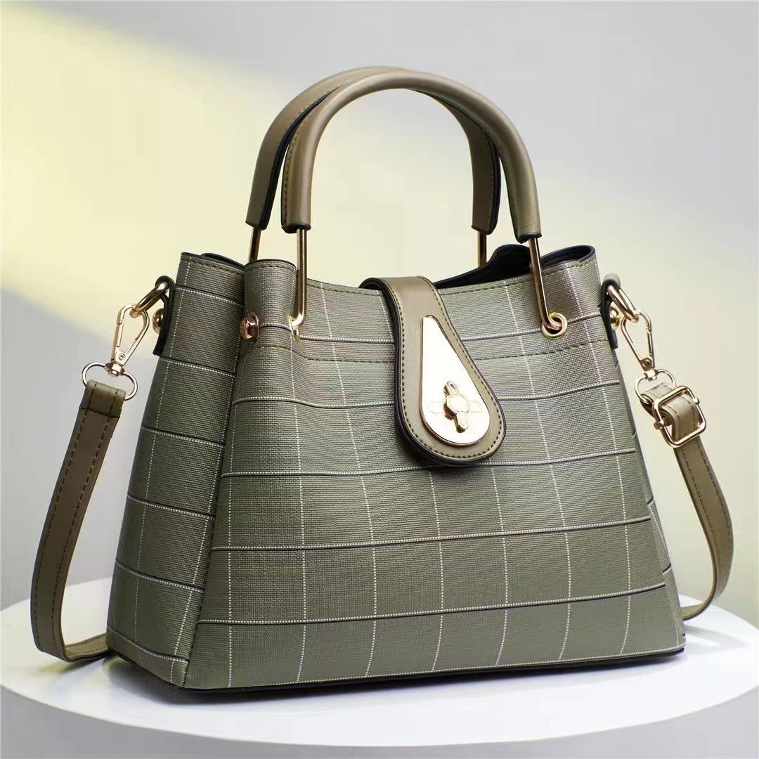 JM-255 新款高質量時尚大容量拼接定型單肩包格子手提包 女包