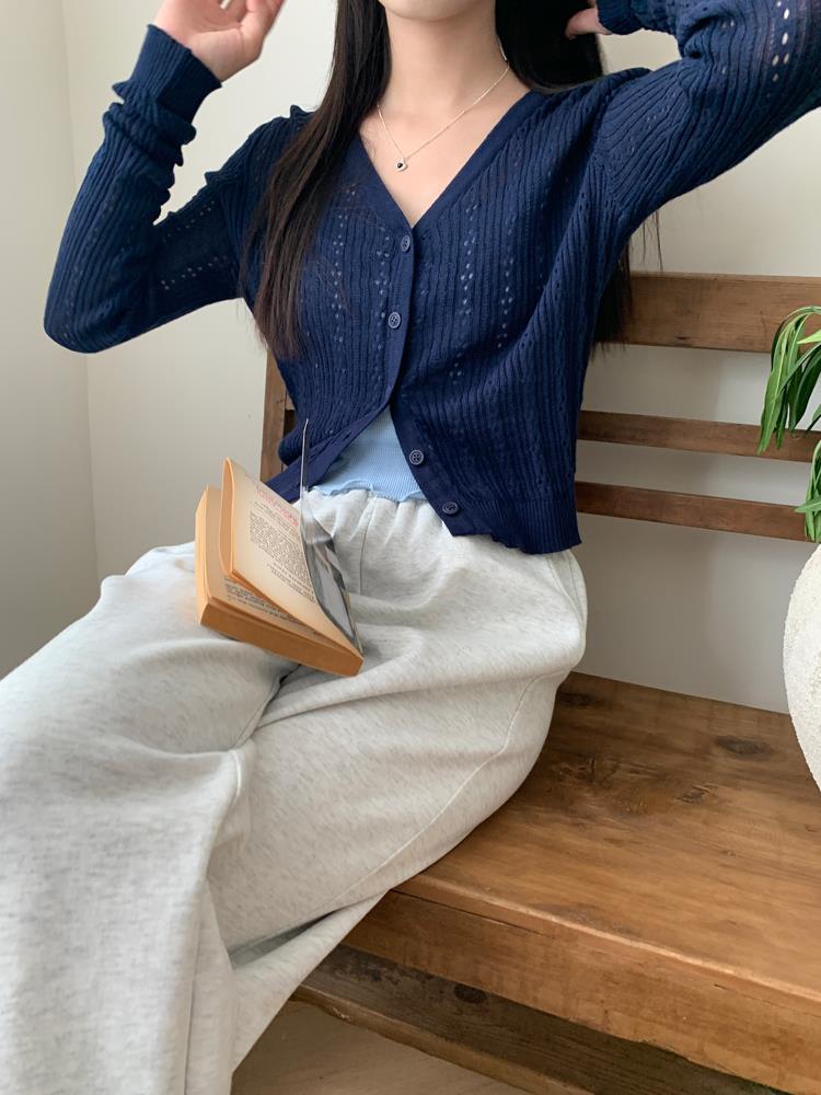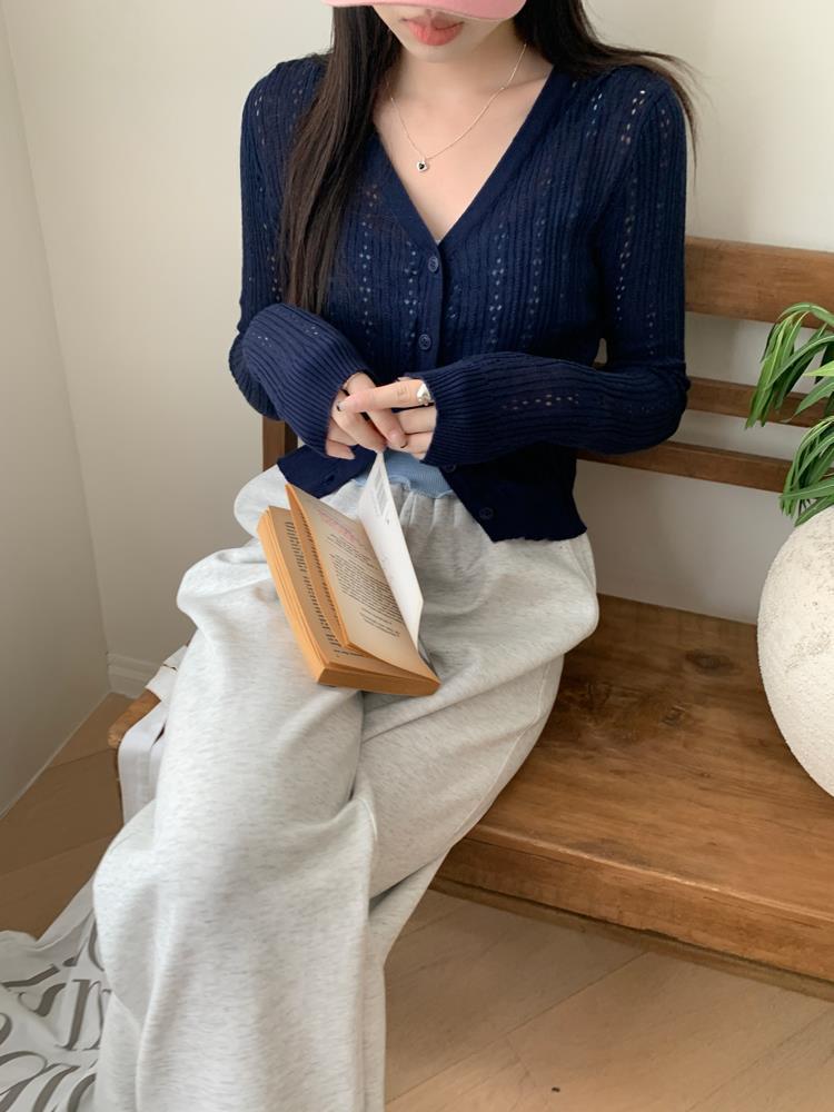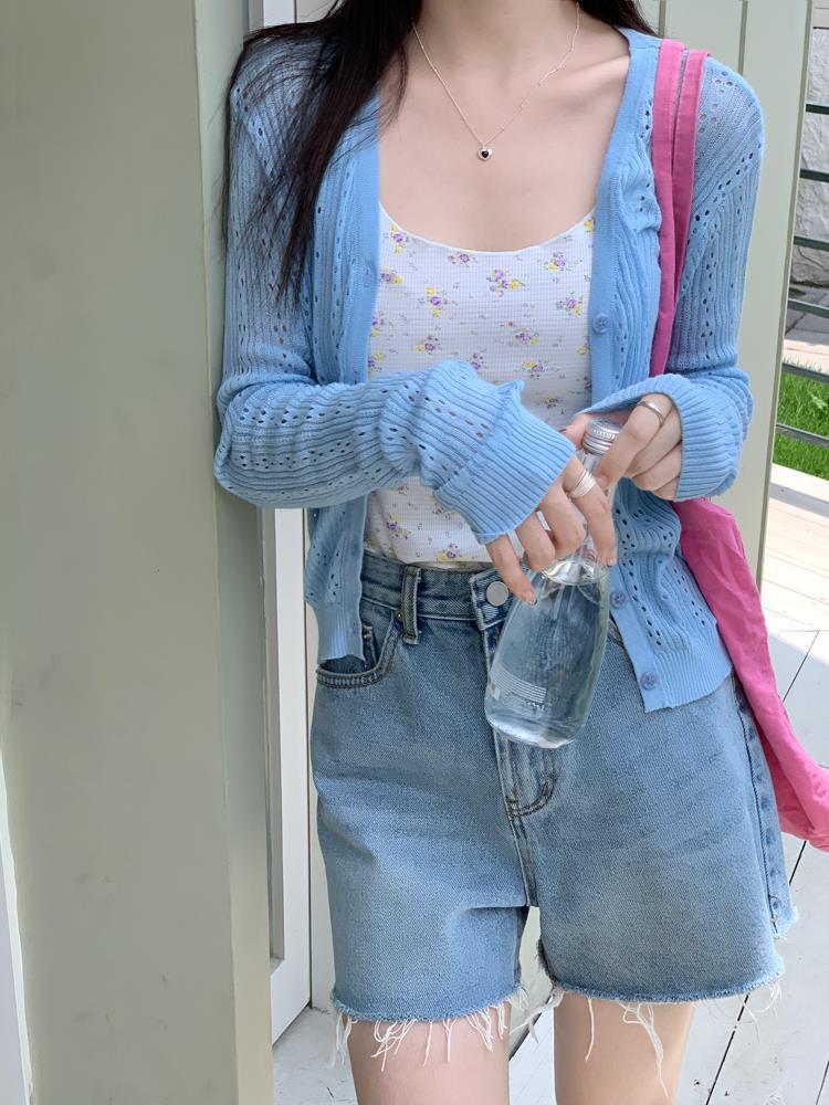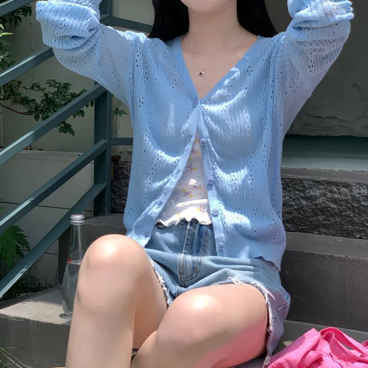 JMA-202 实拍 初秋季镂空针织开衫外套女2023夏季韩版薄款空调针织防晒衣